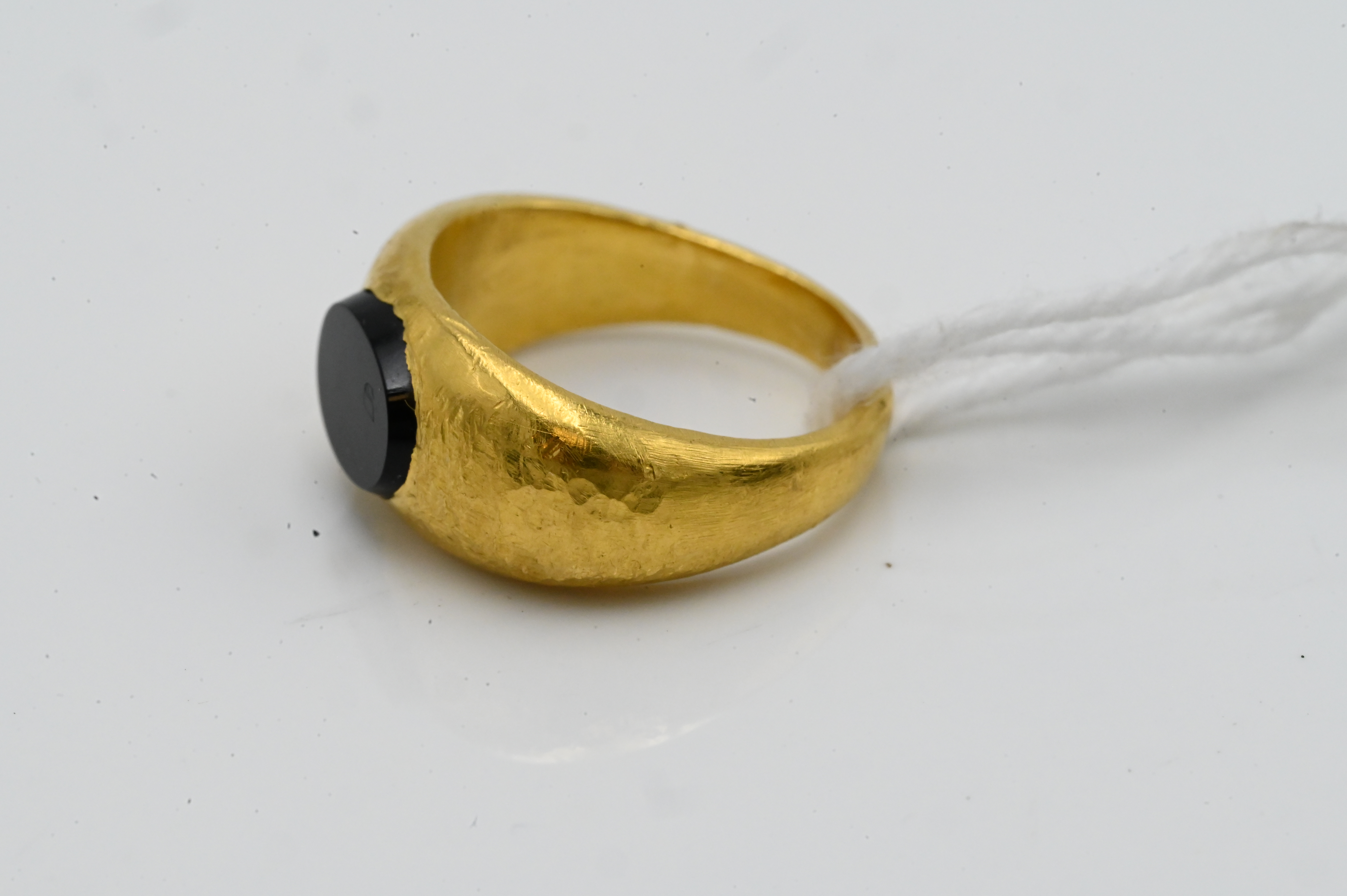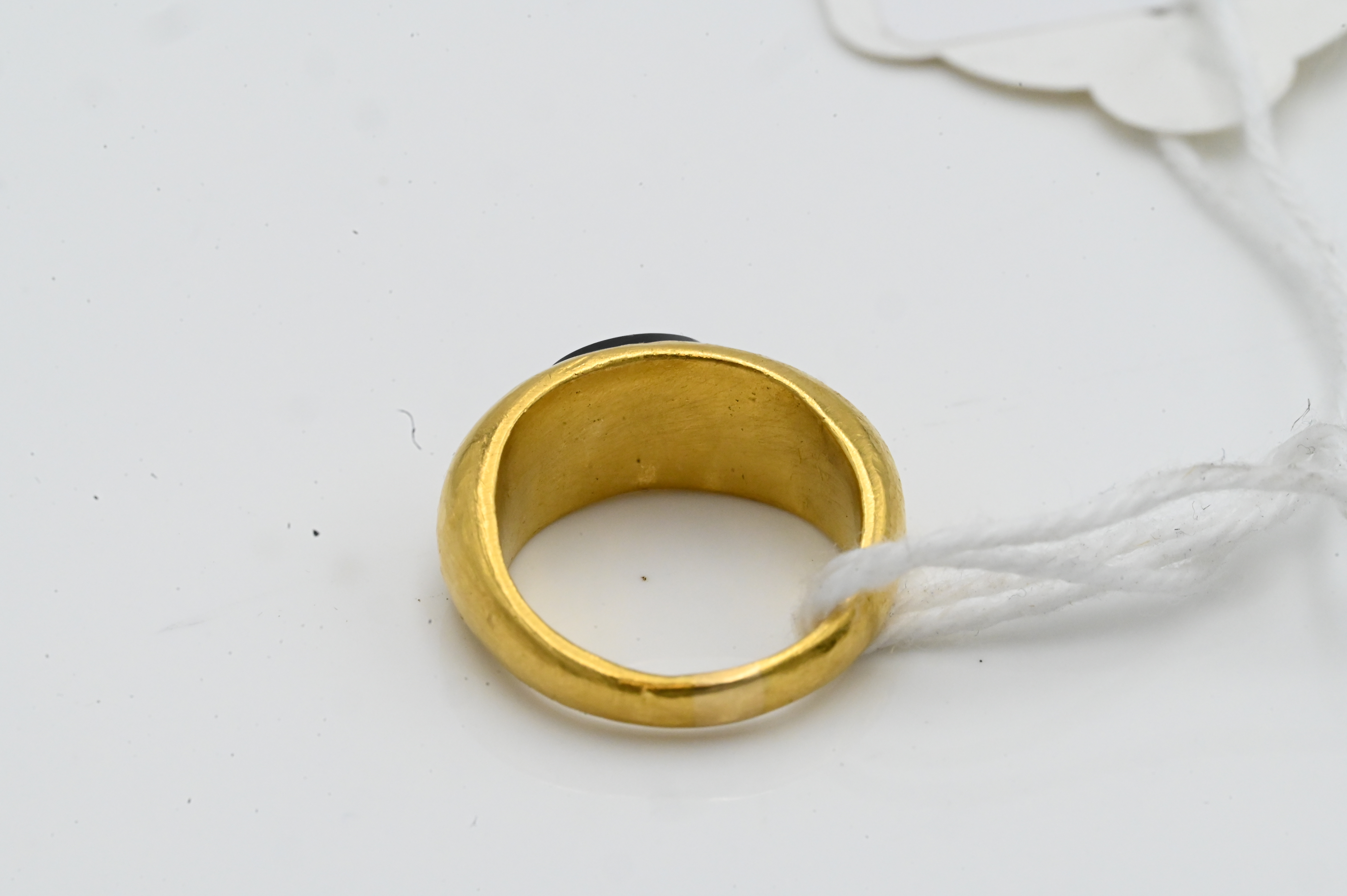 22 Karat Yellow Gold Ring Set, having oval stone, size 4 1/2, 10.6 grams.