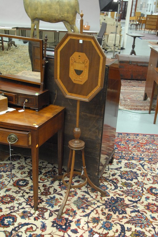 Federal mahogany pole screen with large urn inlay. total ht. 57in.