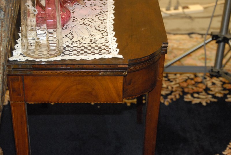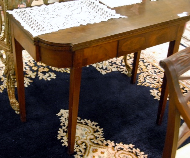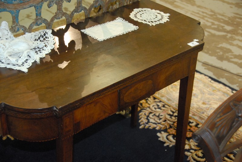 Mahogany Hepplewhite inlaid game table, lg. 36 in. ht. 28 in.