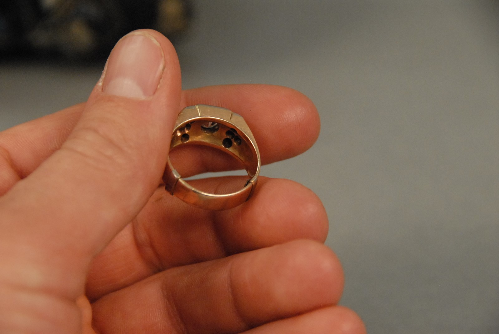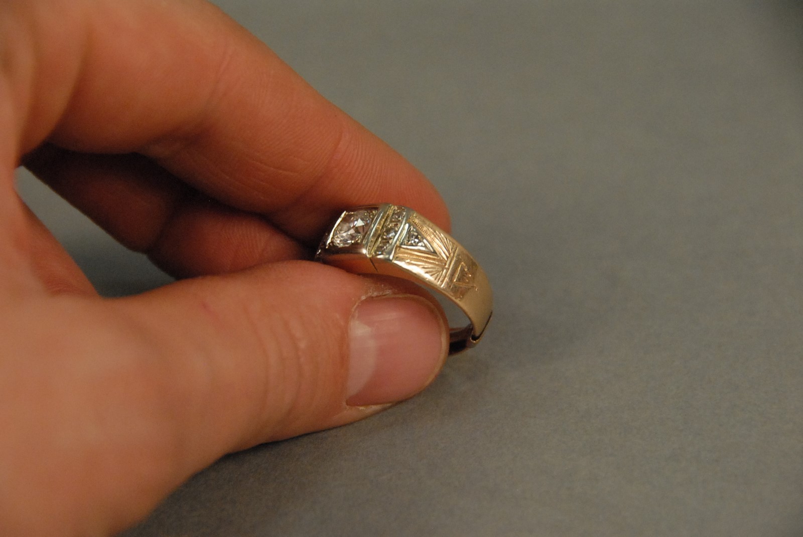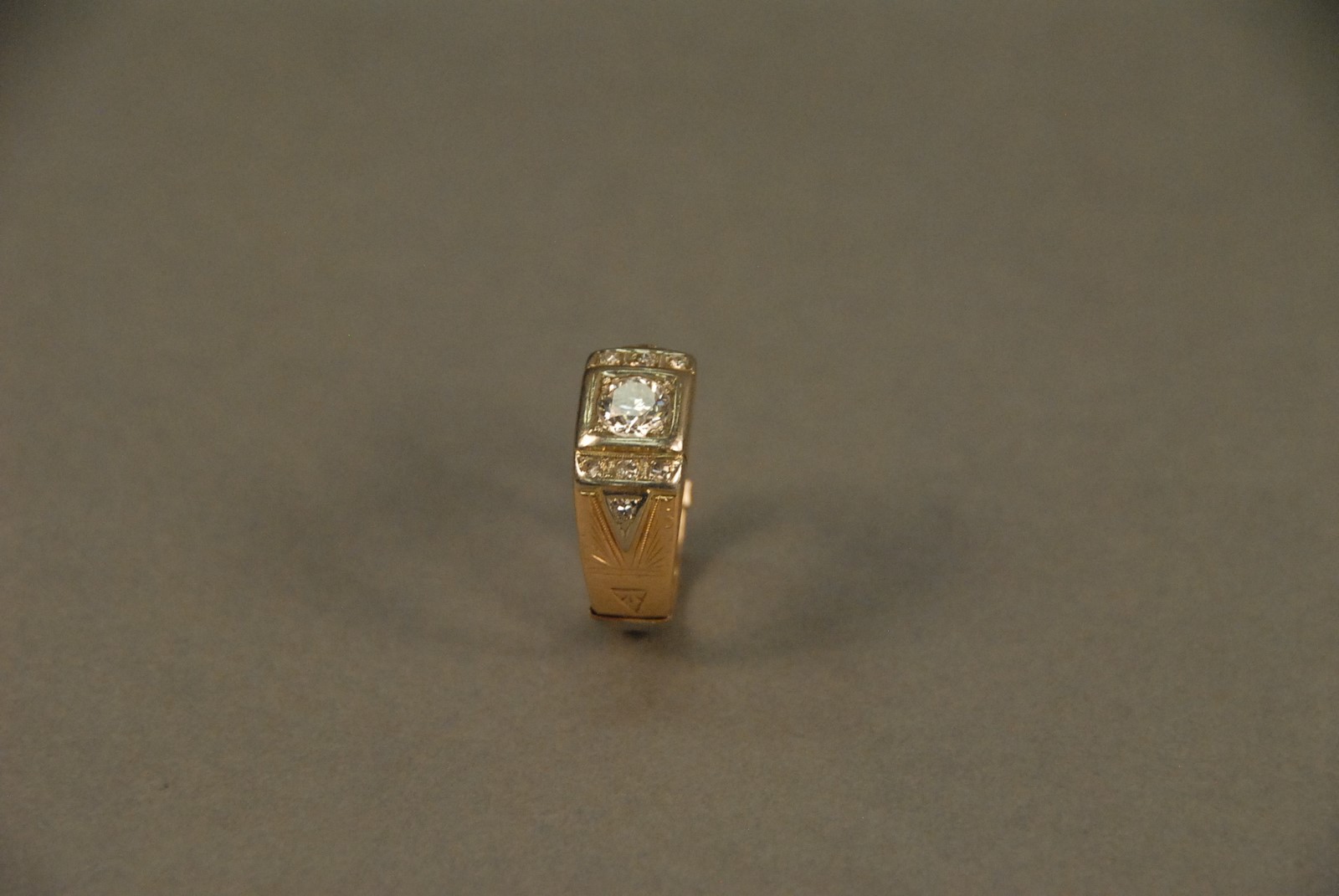 Mans ring set with center diamond approximately .75 cts., size 8 1/2.