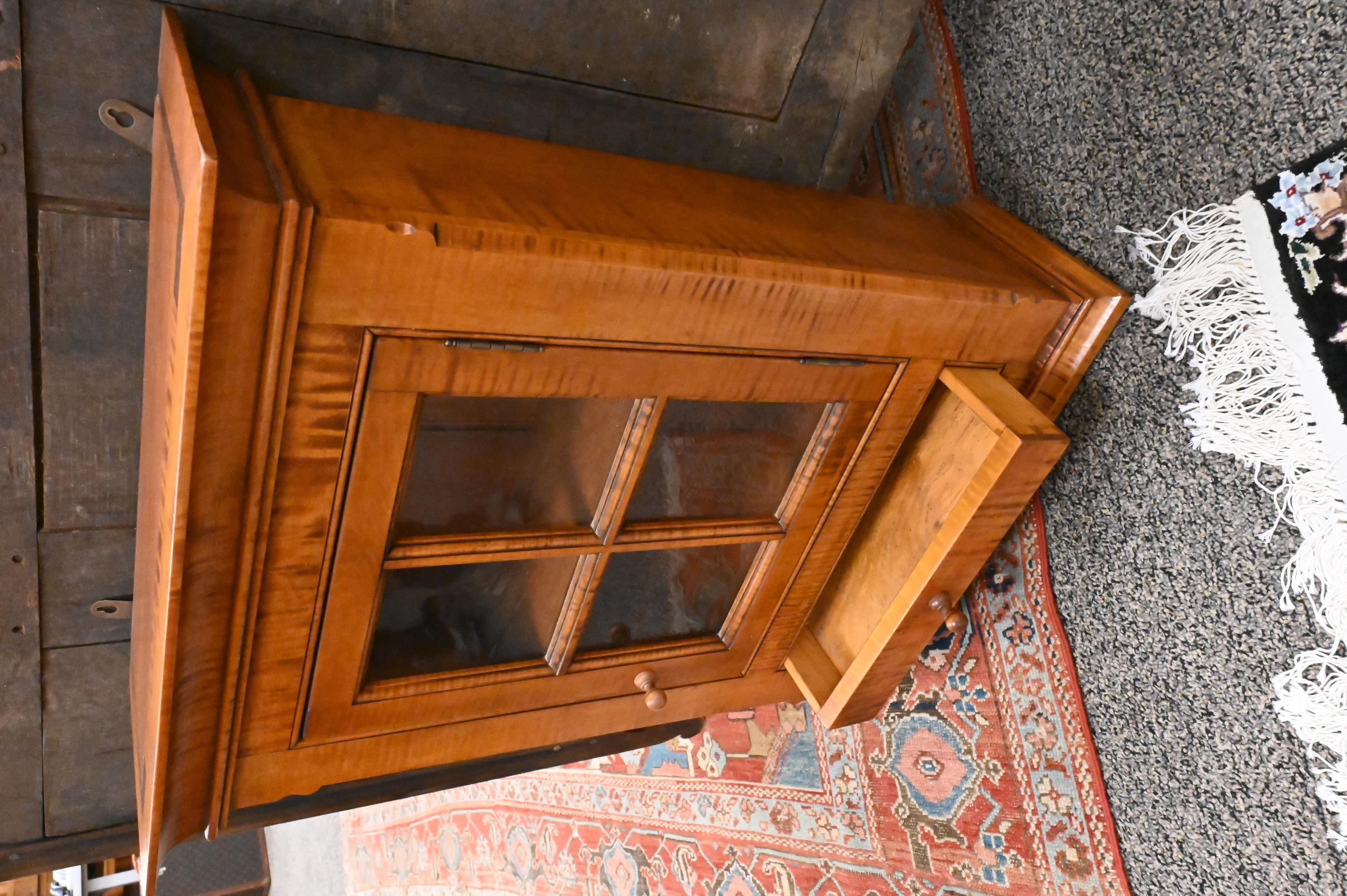 Lot 570: D.R. Dimes Tiger Maple Hanging Cabinet
