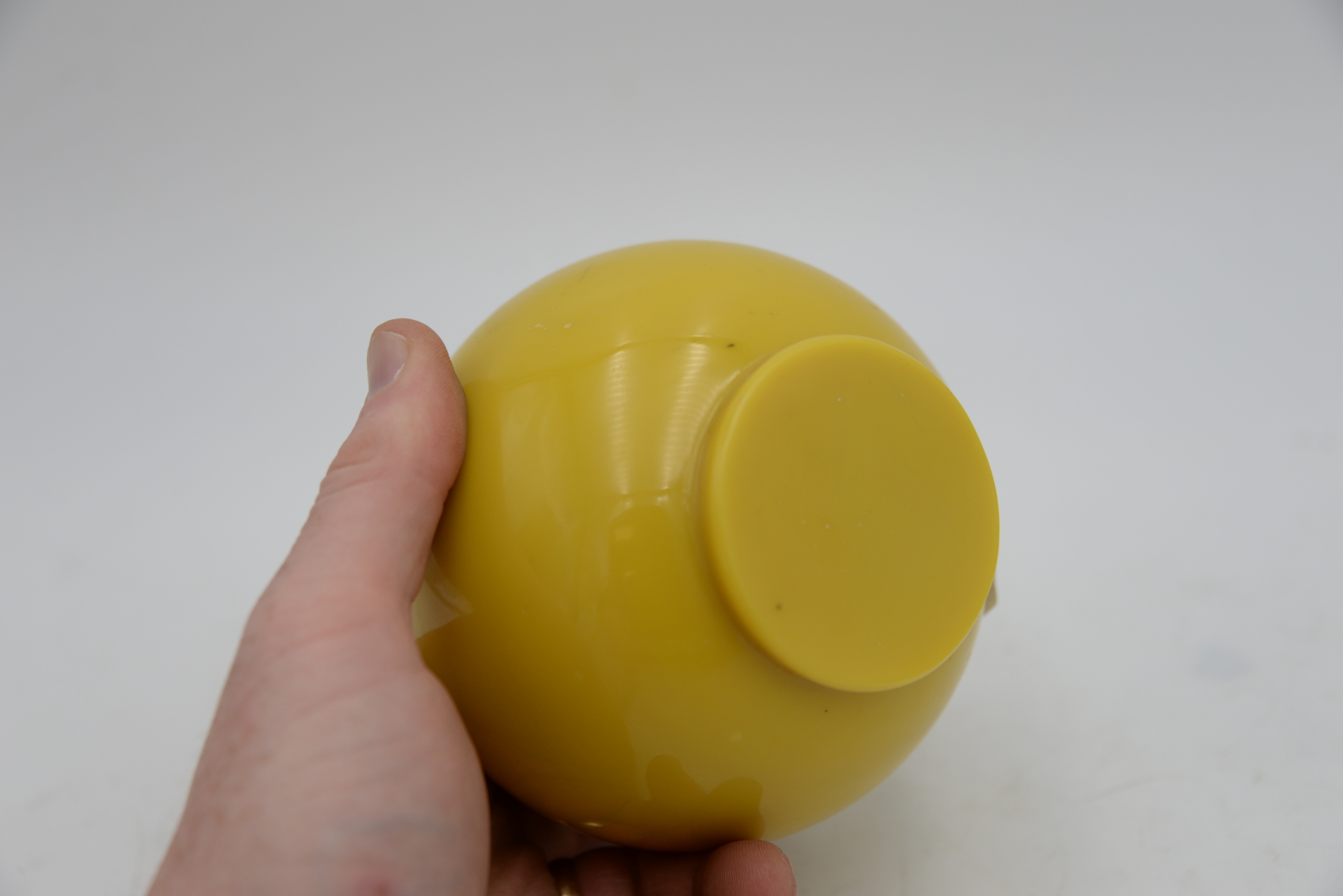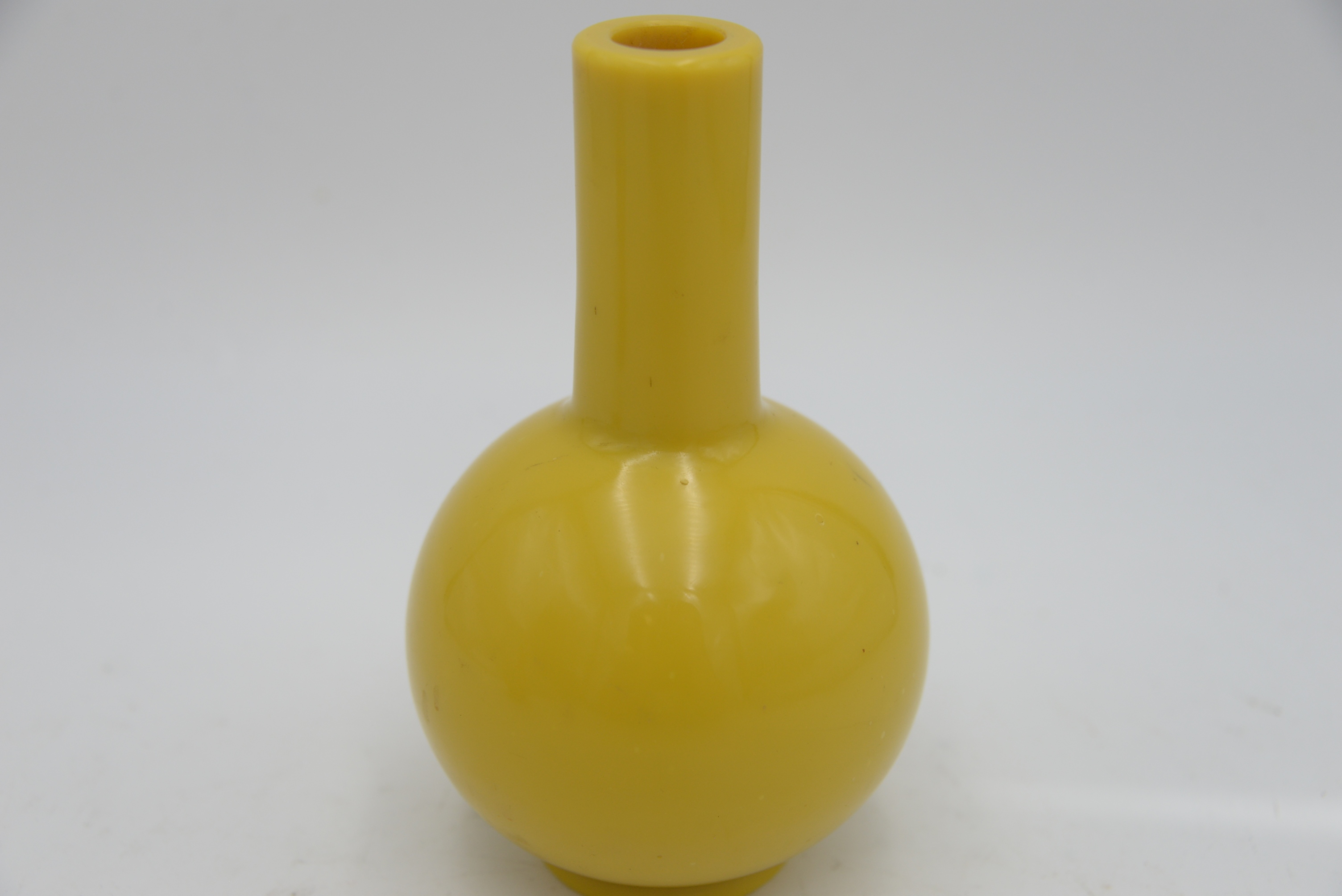 Chinese Yellow Peking Glass Vase, 18th century, egg yolk in color, globular form having cylindrical neck, height 7 1/4 inches.
