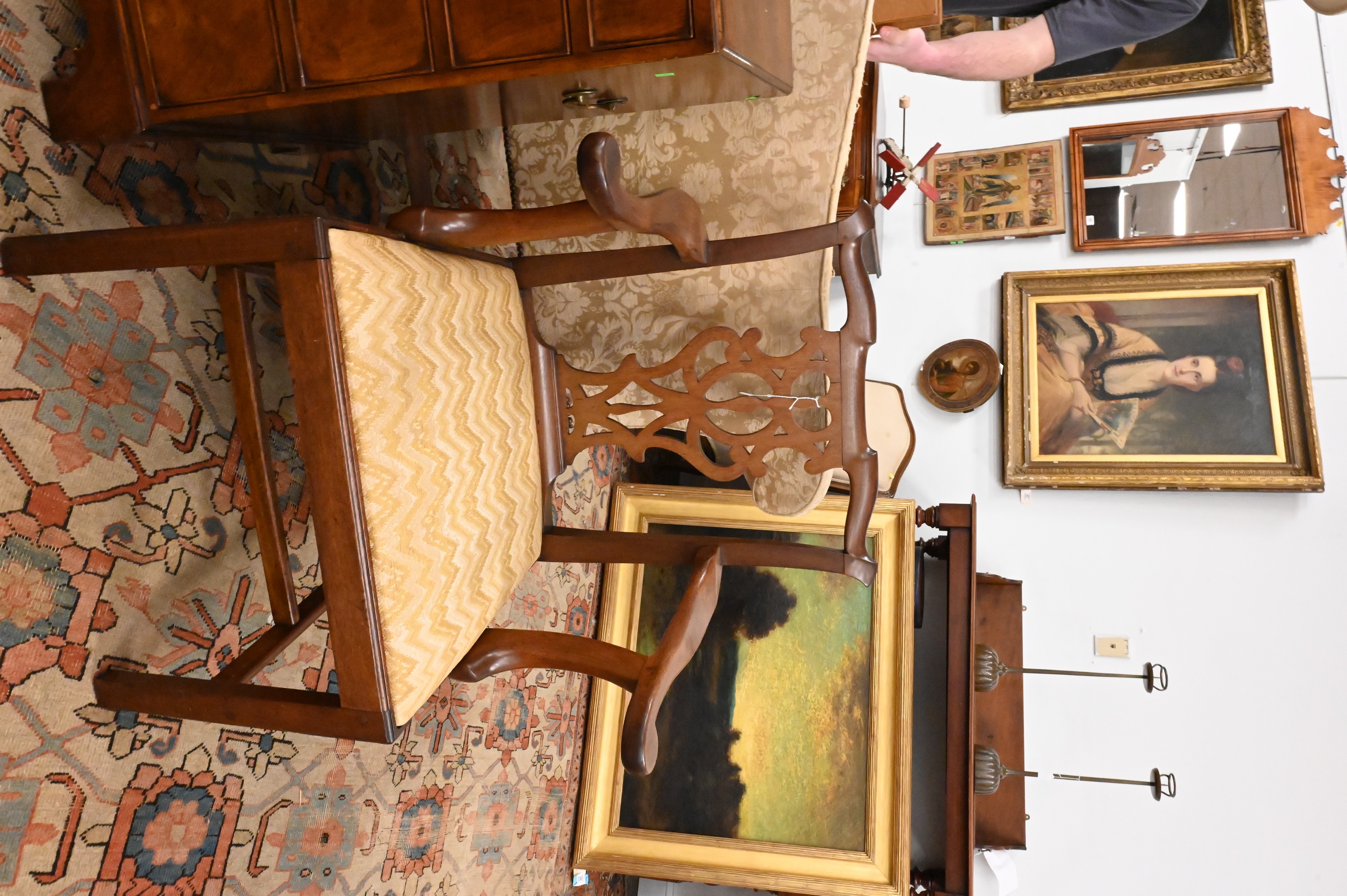 Lot 571: Pair of George III Carved Mahogany Armchairs