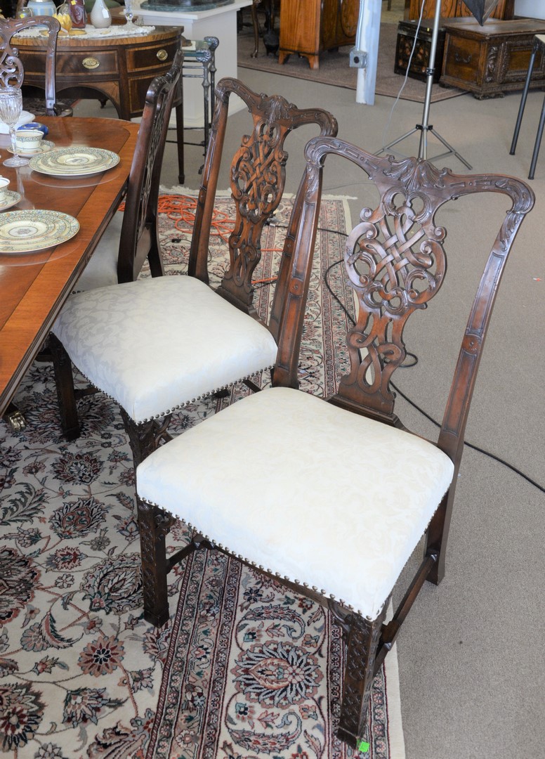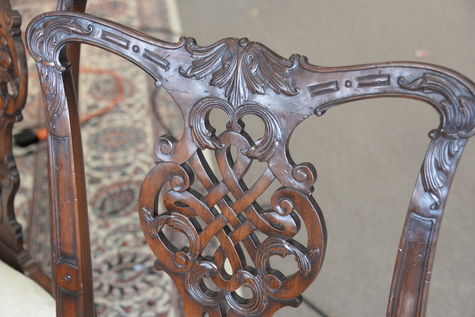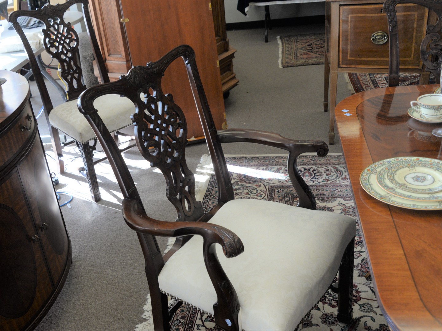 Set of Ten Mahogany Chippendale Style Dining Chairs 8 side and 2 arm