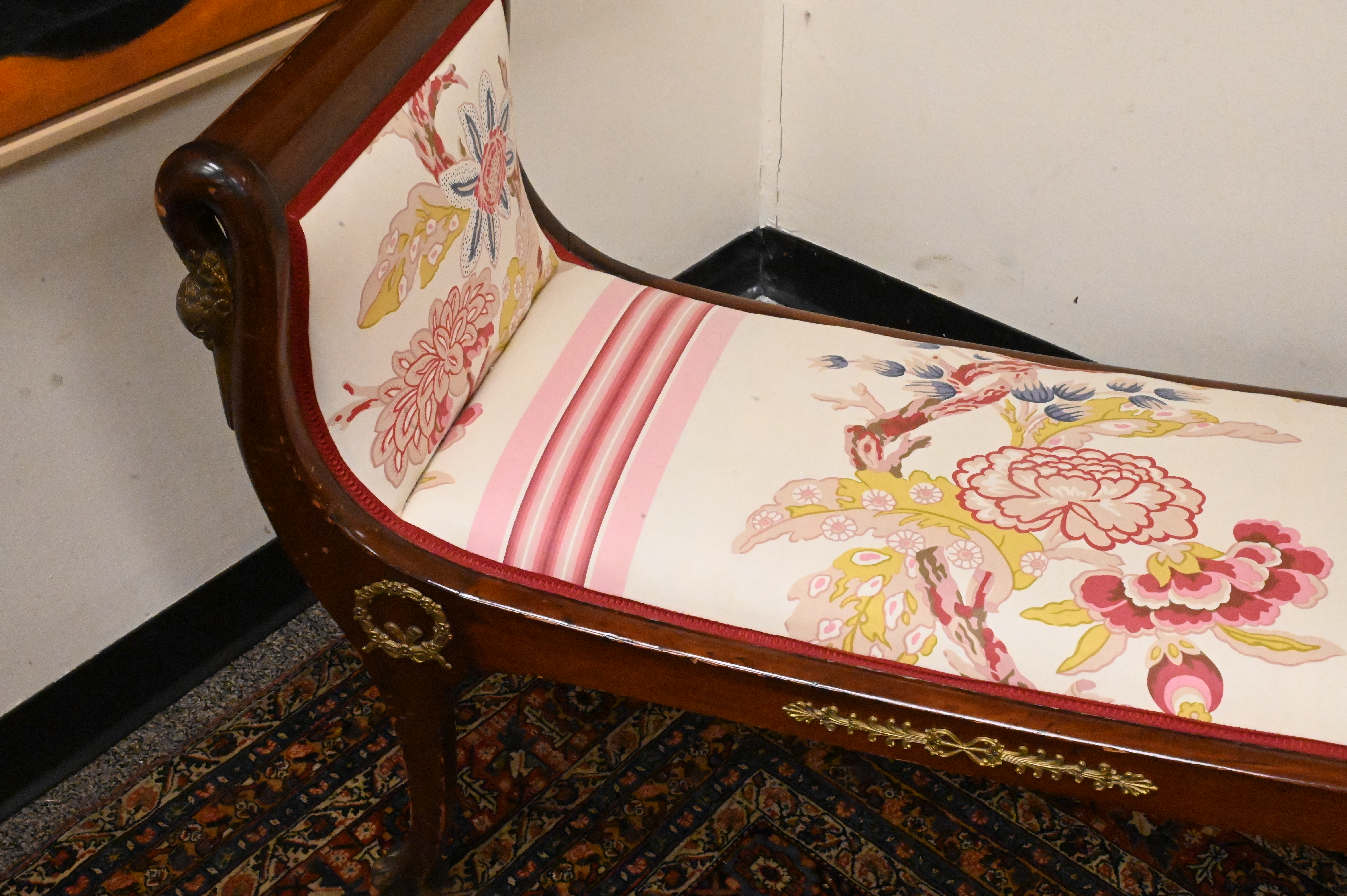 Lot 572: Empire Style Gilt-Metal Mounted and Parcel-Gilt Mahogany Window Bench