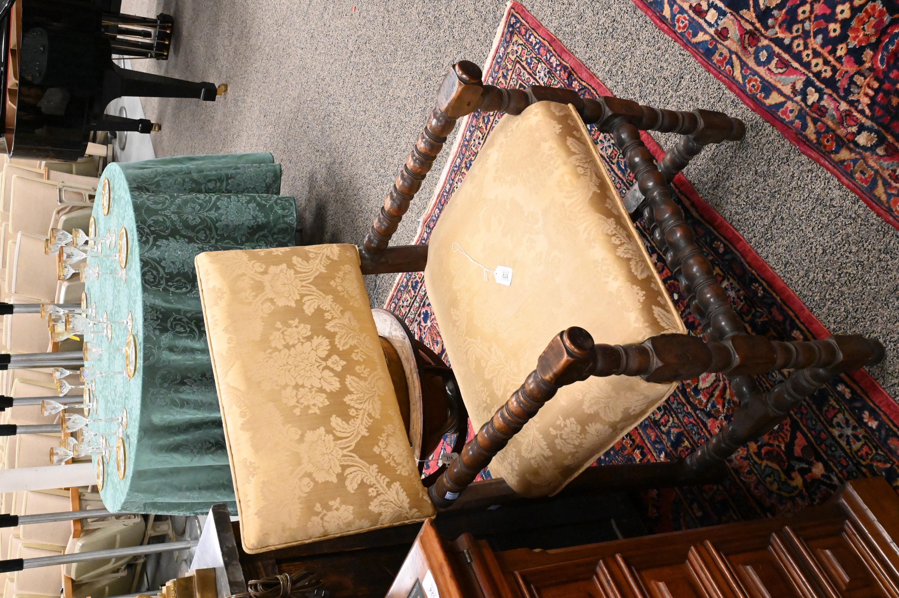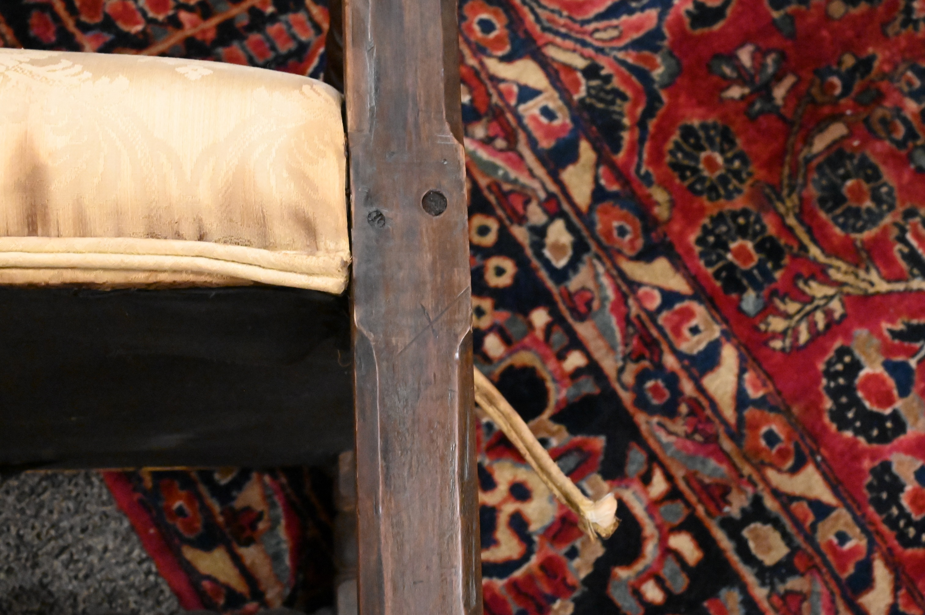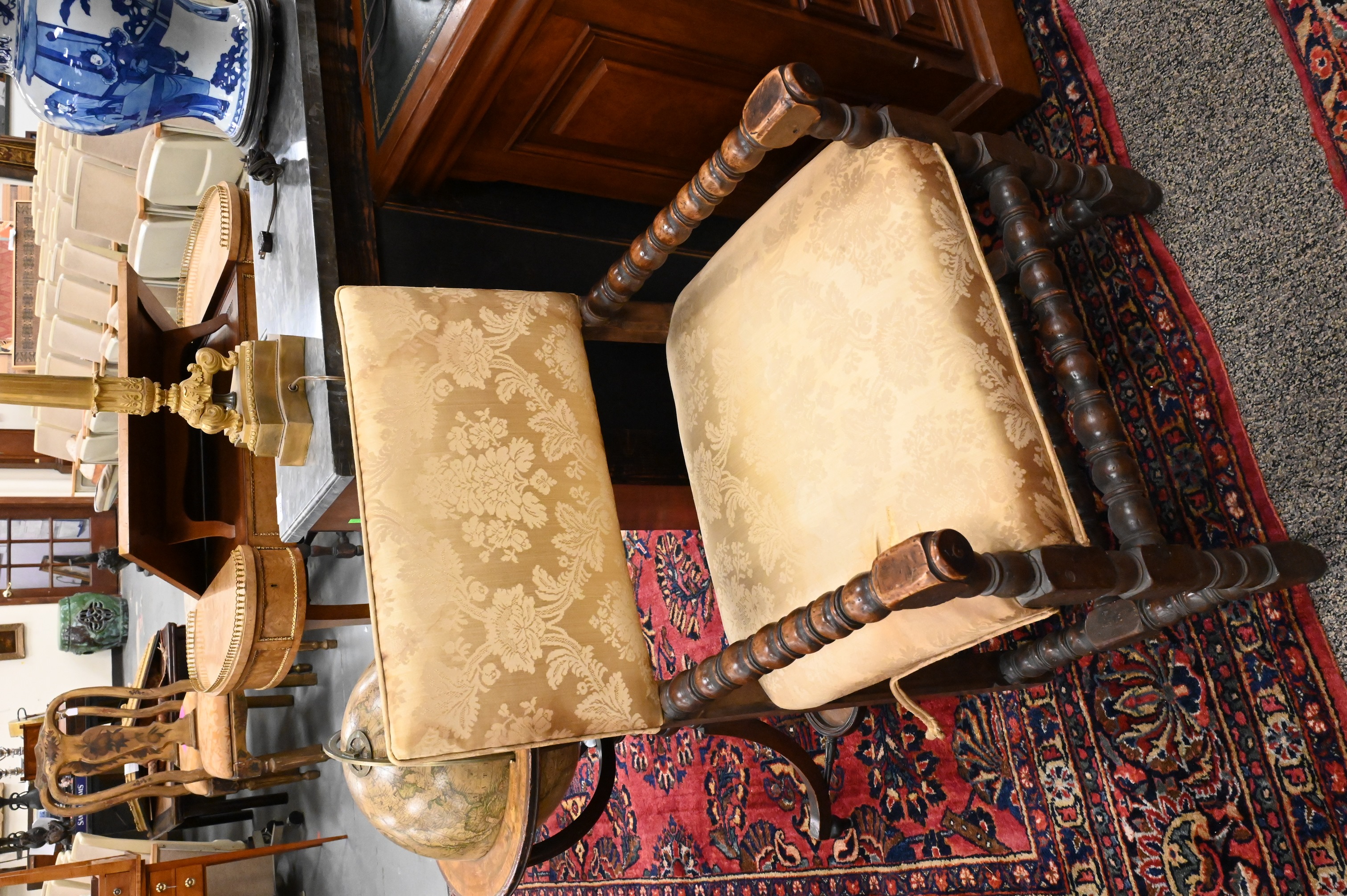 having upholstered seats and backs, having turned arms and block & turned legs, restored