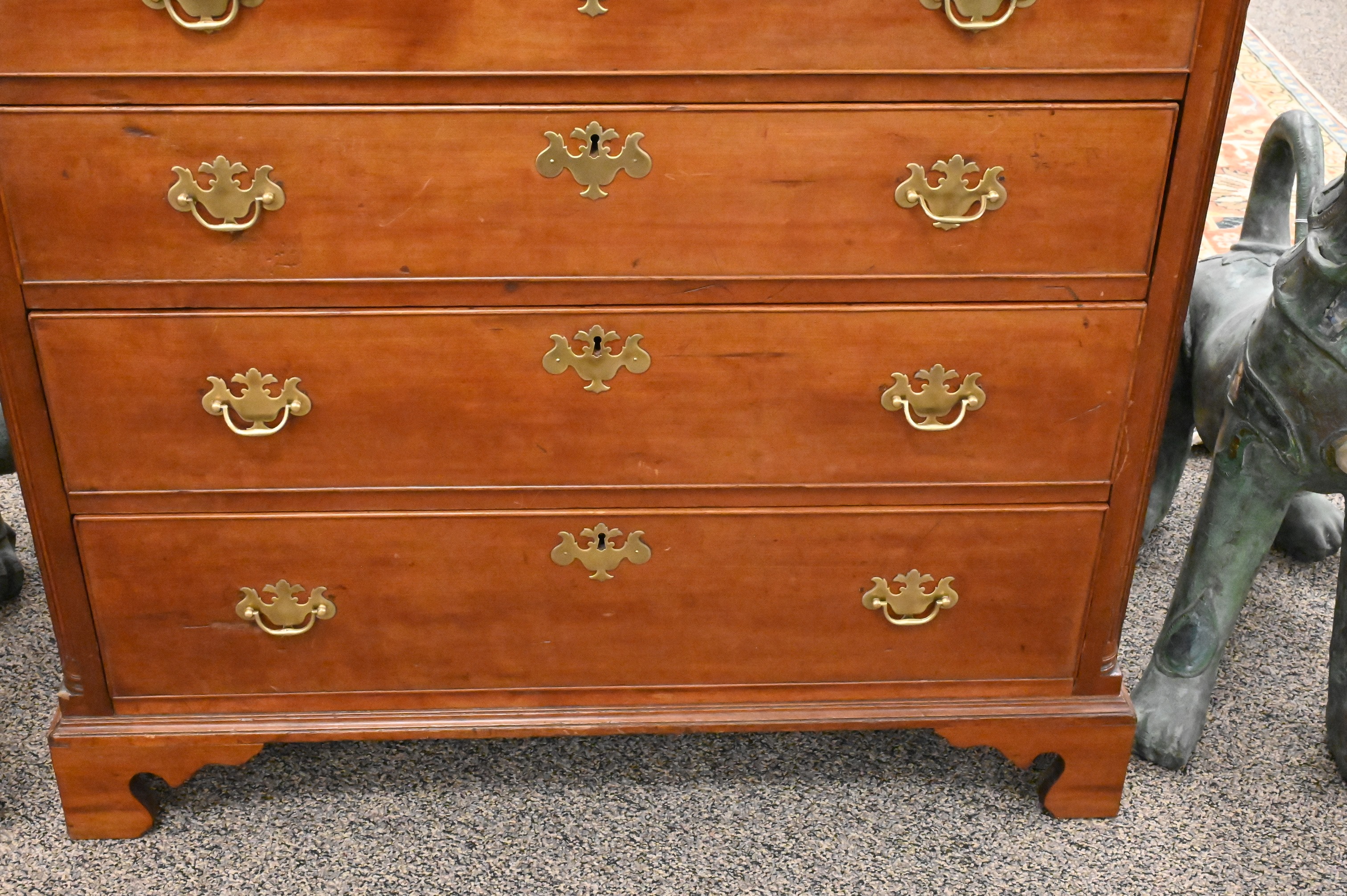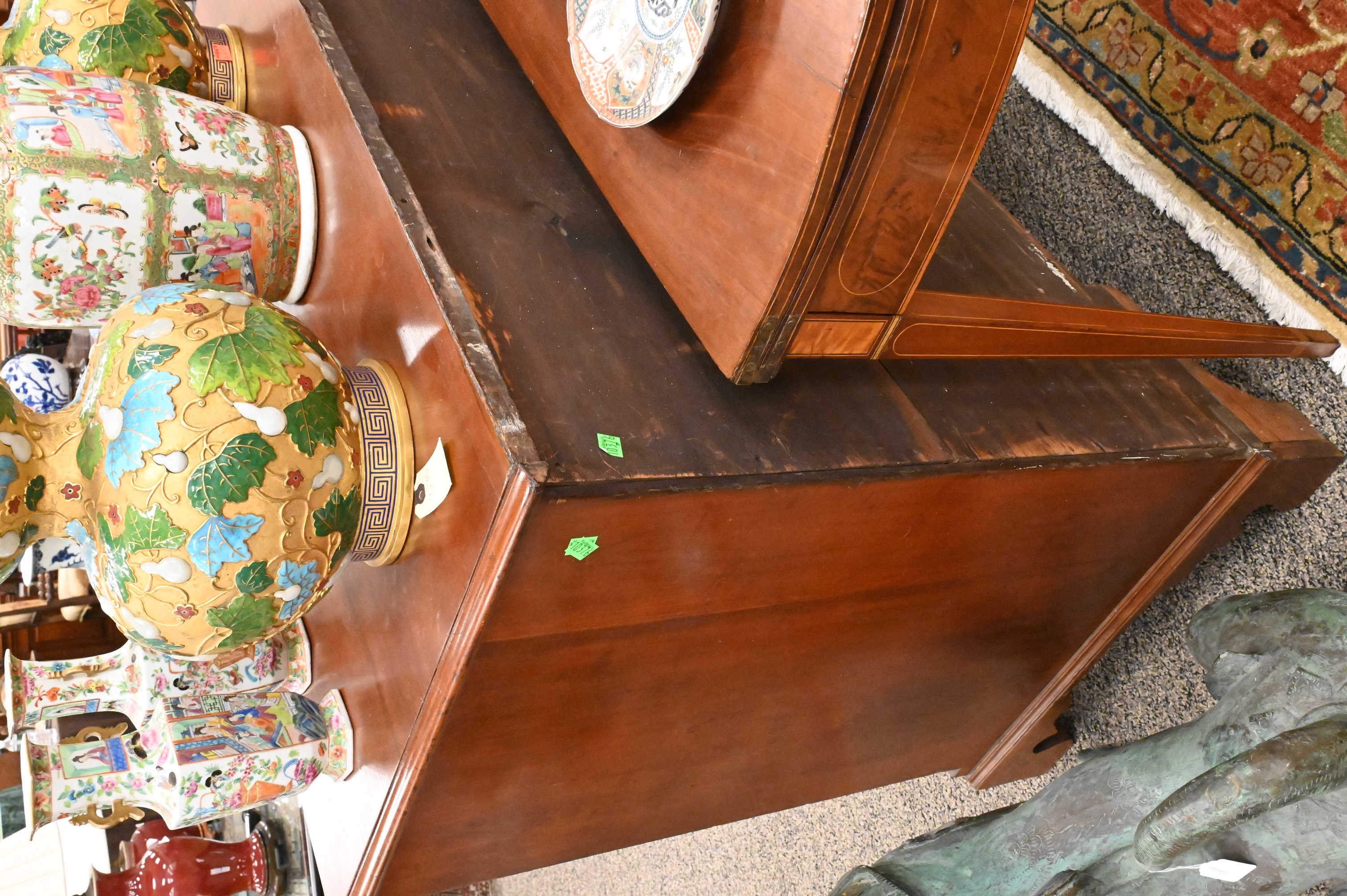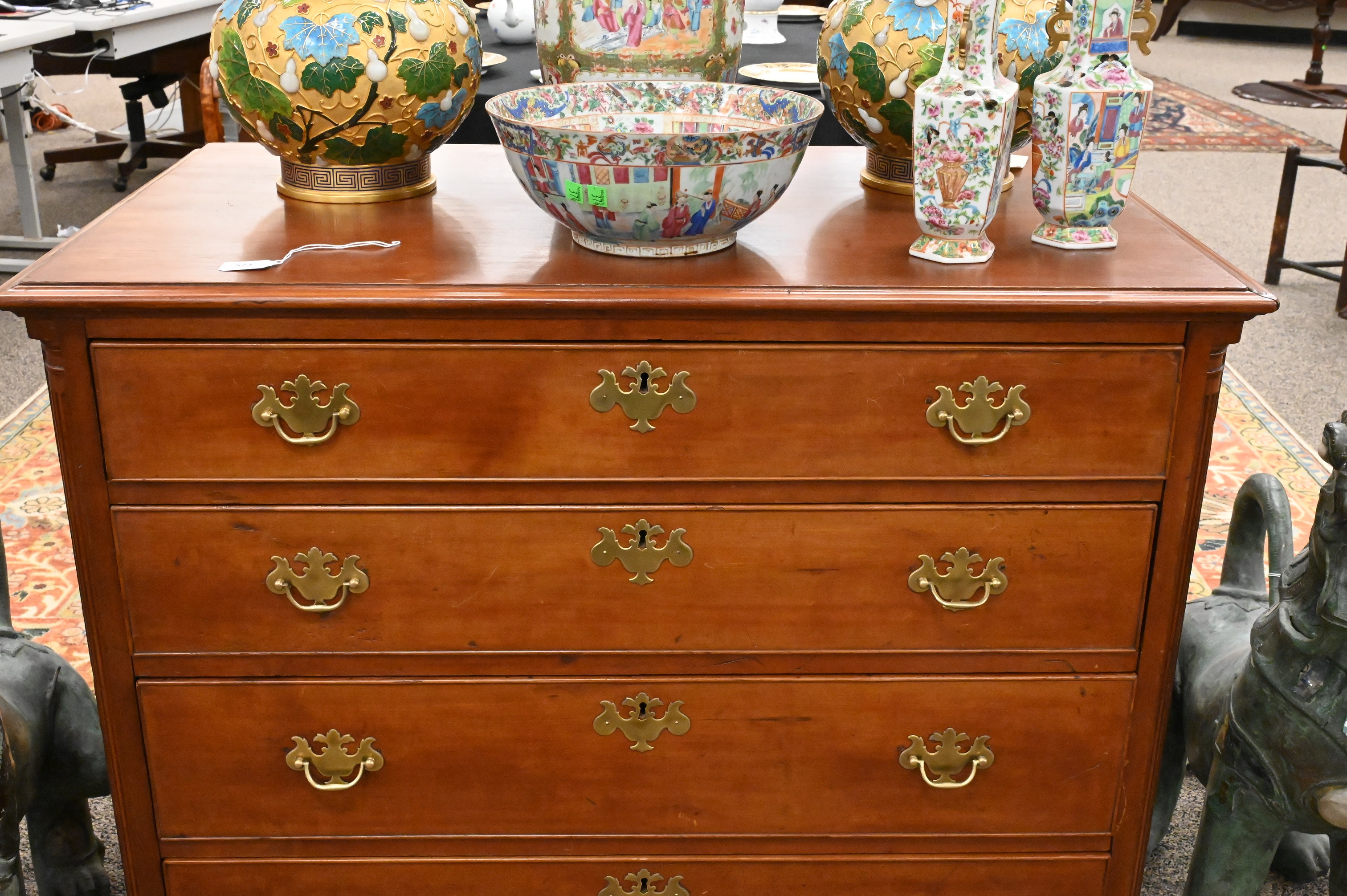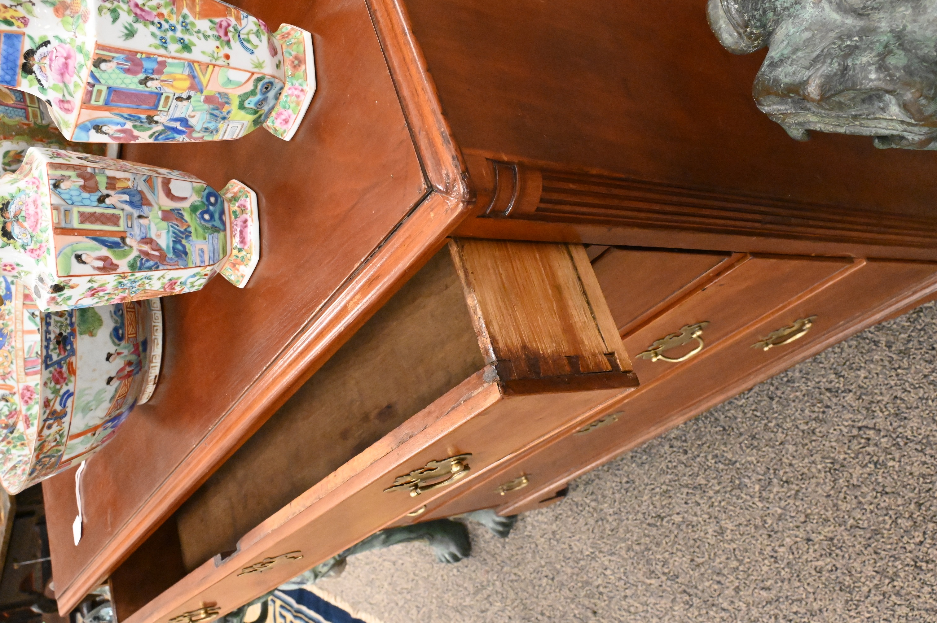 having applied molded top over four cockbeaded drawers flanked by fluted columns all raised on bracket base
