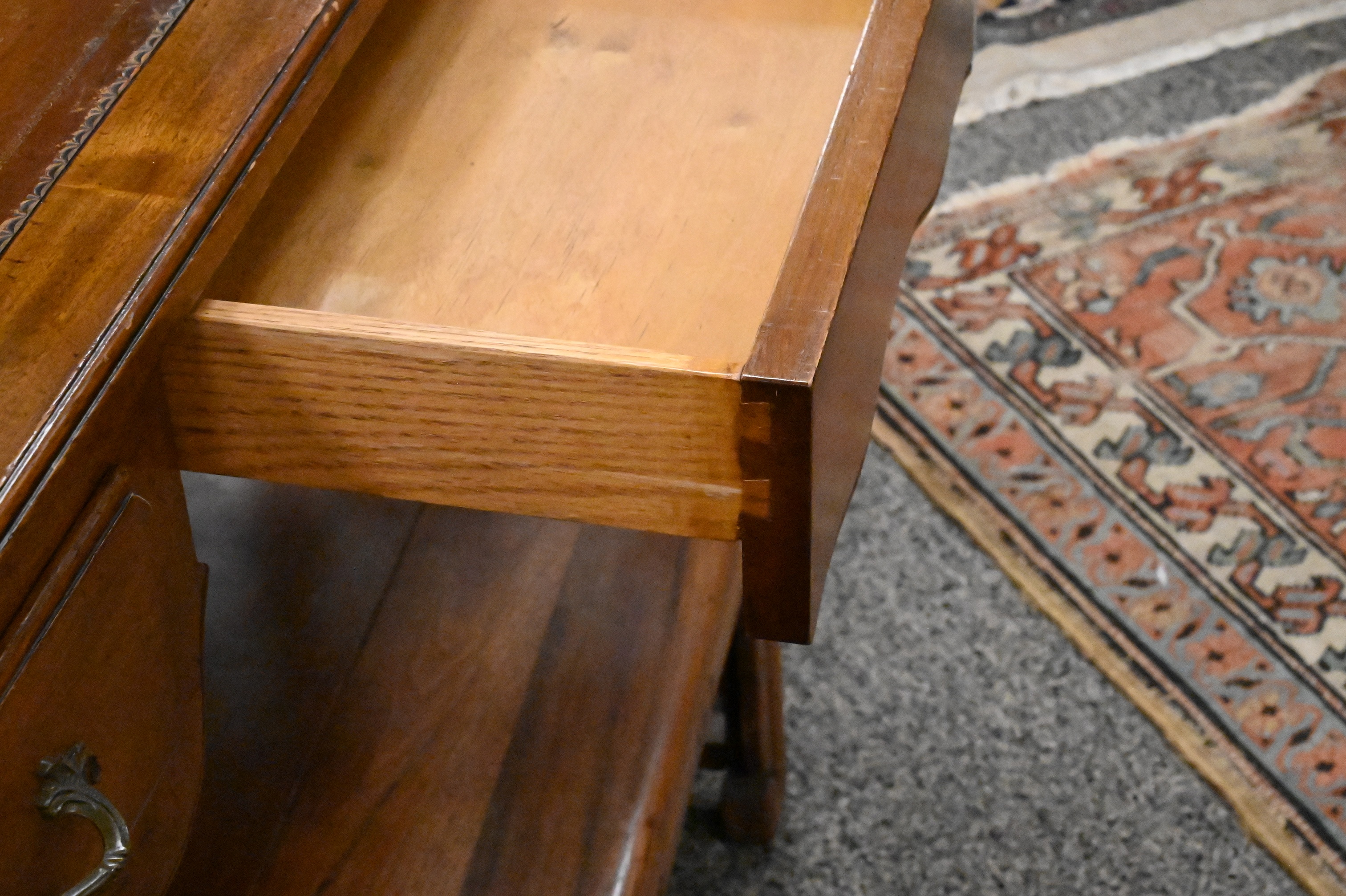having undulated gallery and three drawers set on tall cabriole legs