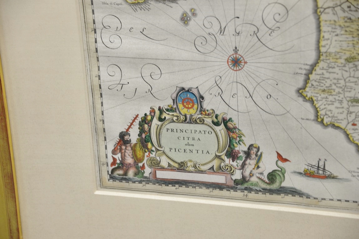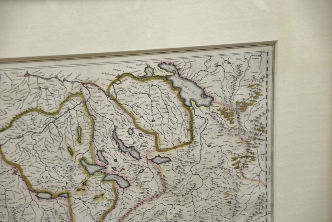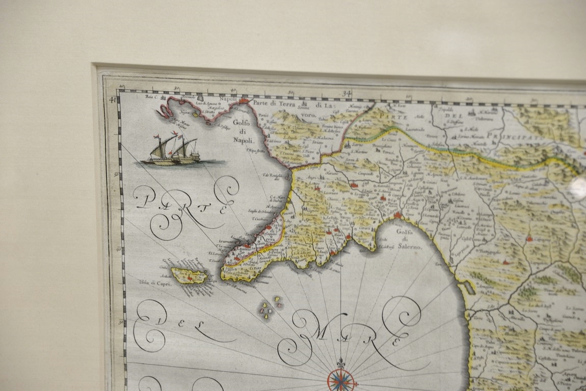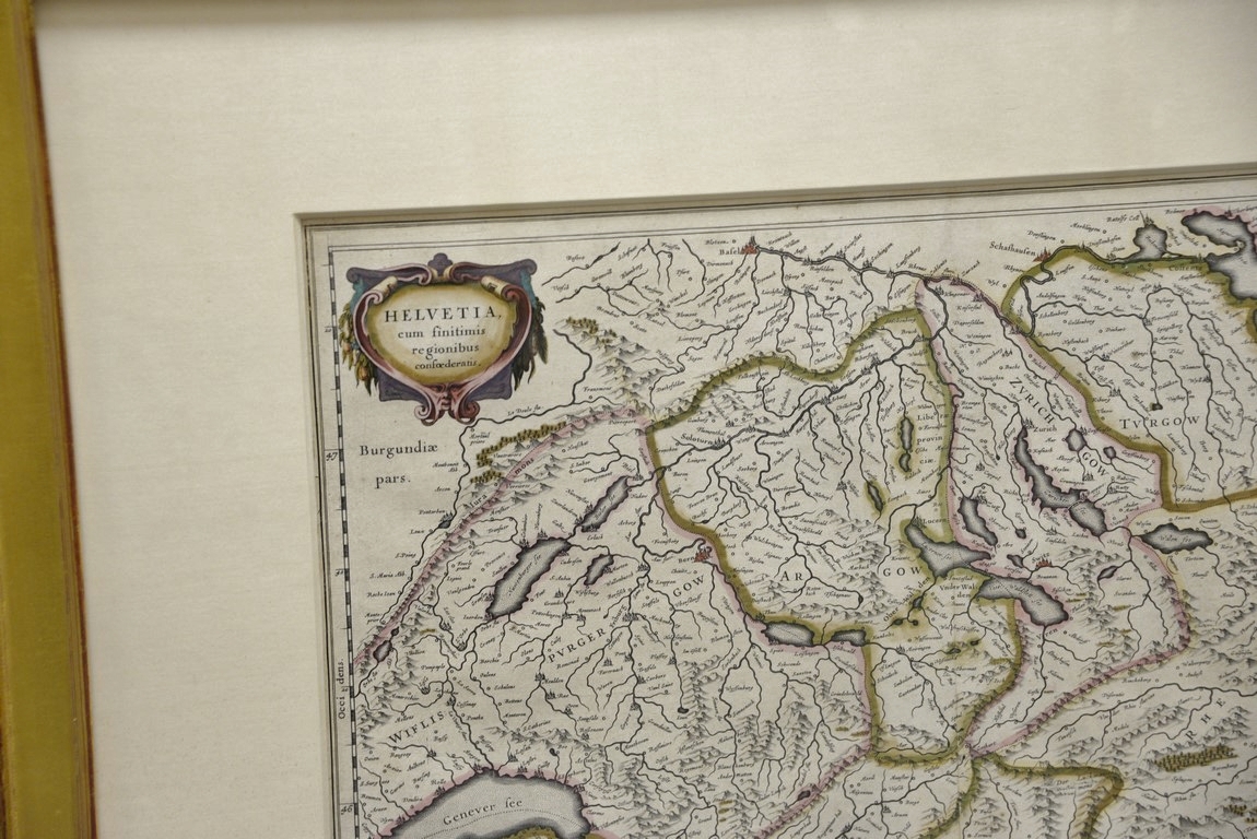 Two double page hand colored engraved maps Principato Citra olim Picentia Italy sight size: 15 1/4 x 19 3/4 and Helvetia cum Finitimis Regionibus Confoederatis Guilielmus Blaeu sight size: 15 1/2 x 19 1/2 Provenance: Property from Credit Suisse’s Americana Collection