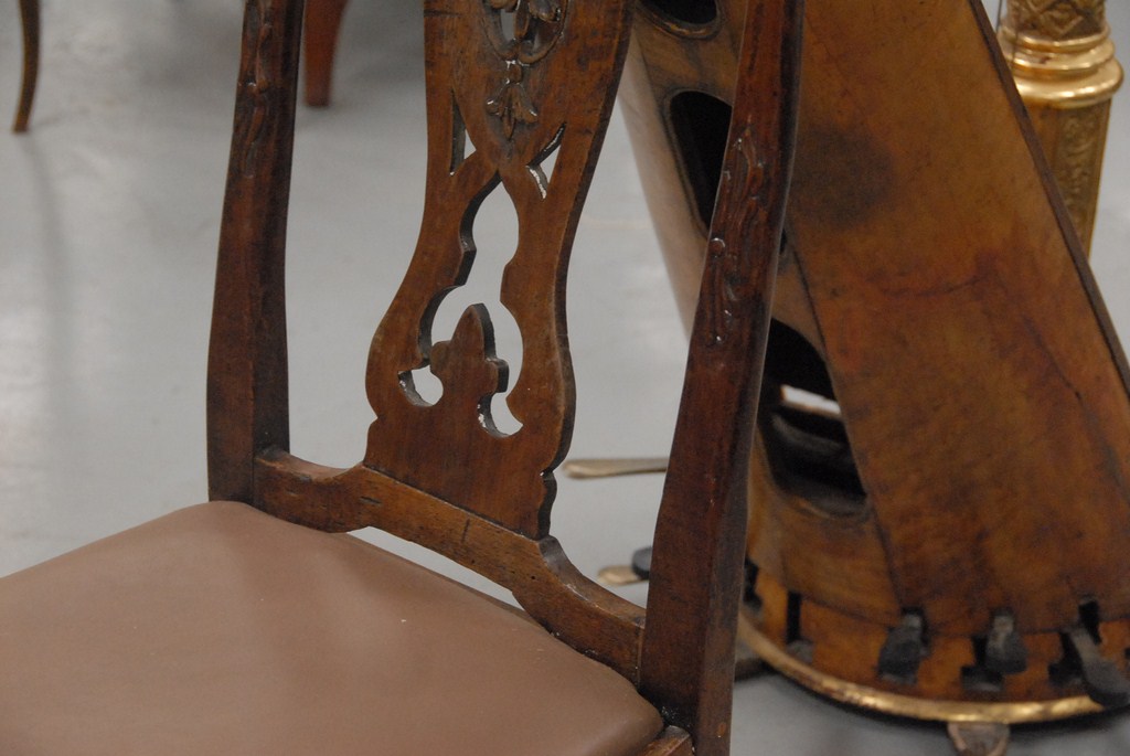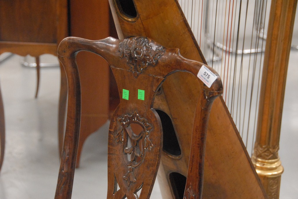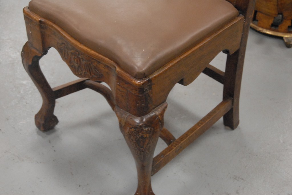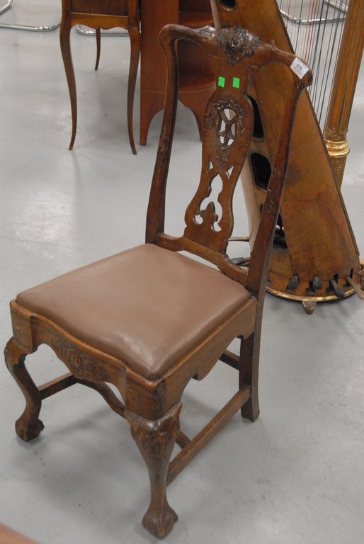 Lot 575: Portuguese walnut side chair with pierce carved back, slip seat, cabriole legs, and claw and ball feet, 18th century.