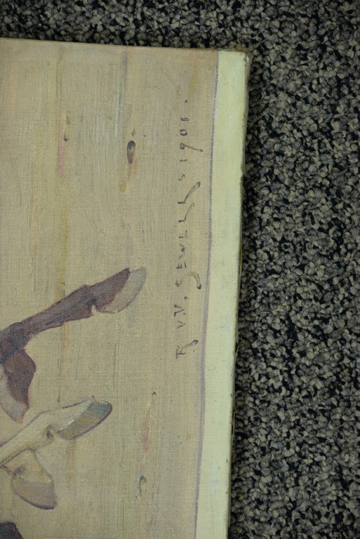 Lot 575A: Robert Van Vorst Sewell 1860-1924 oil on canvas Triptych oil on canvas Men on Horses signed lower right RVV Sewell 19…