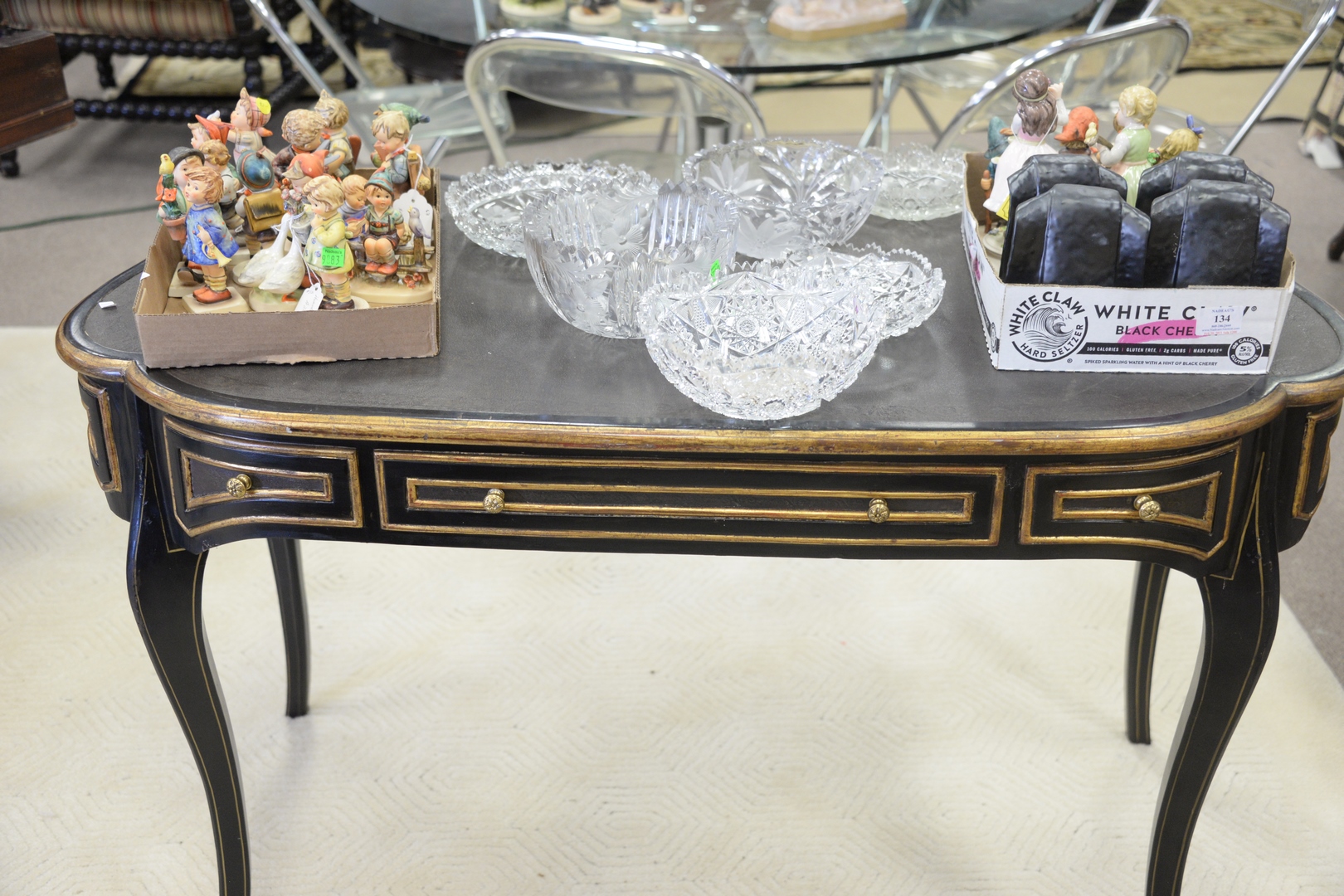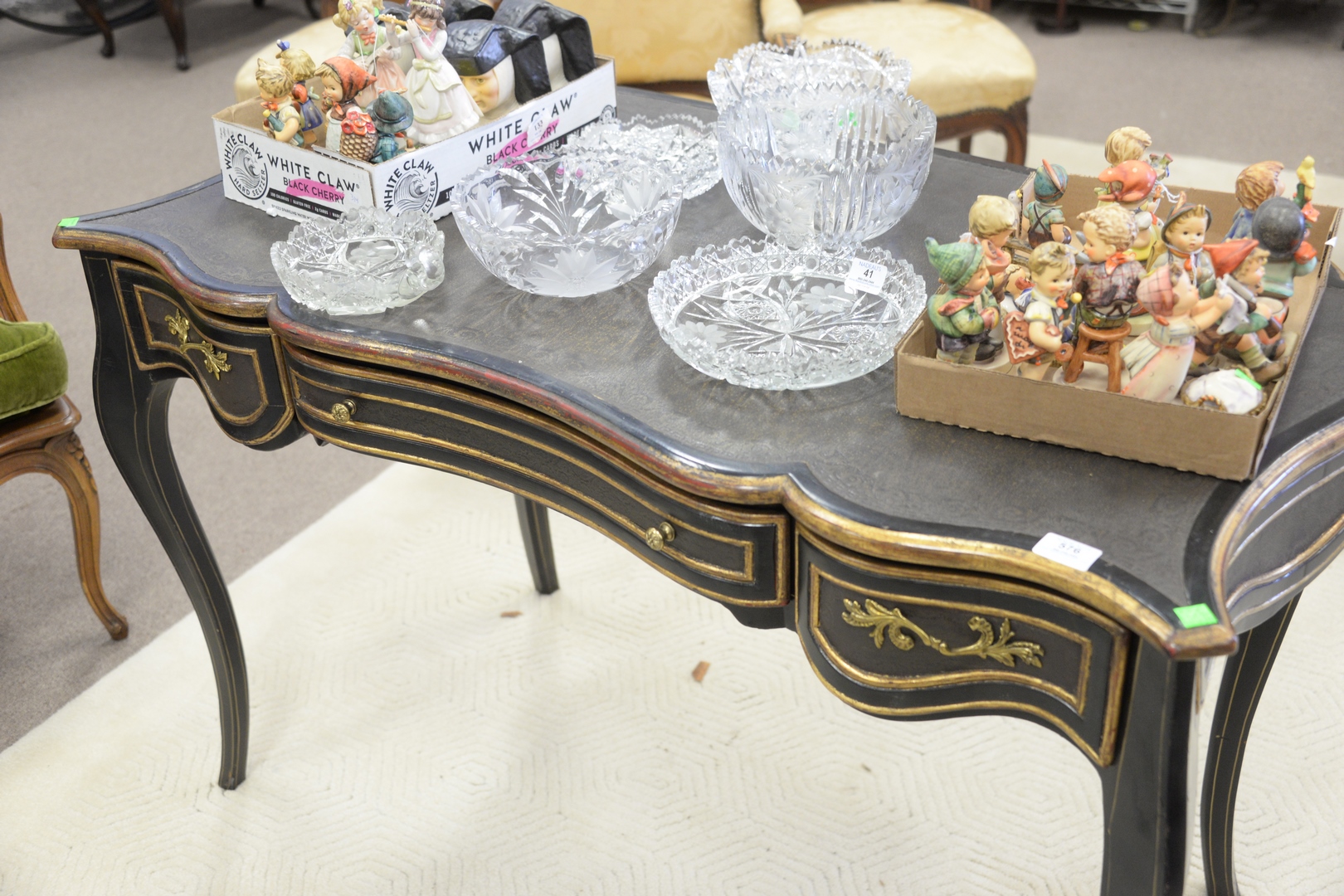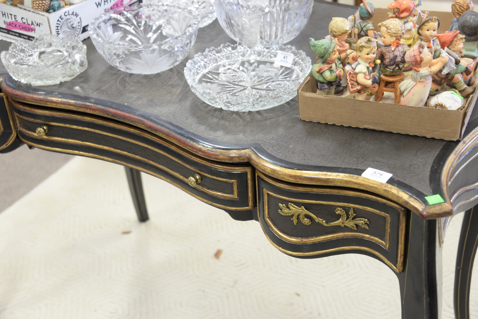 French Style Three Drawer Desk, with leather top.