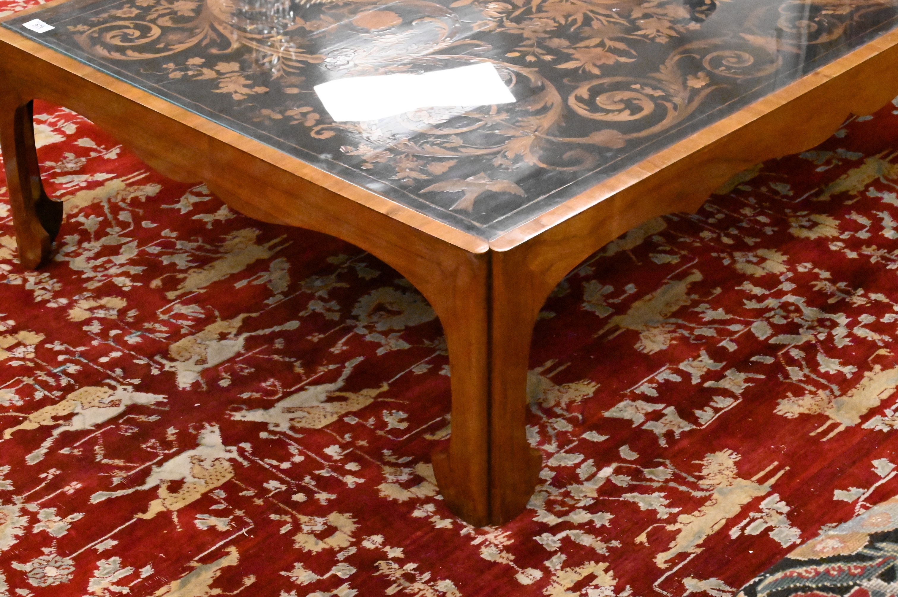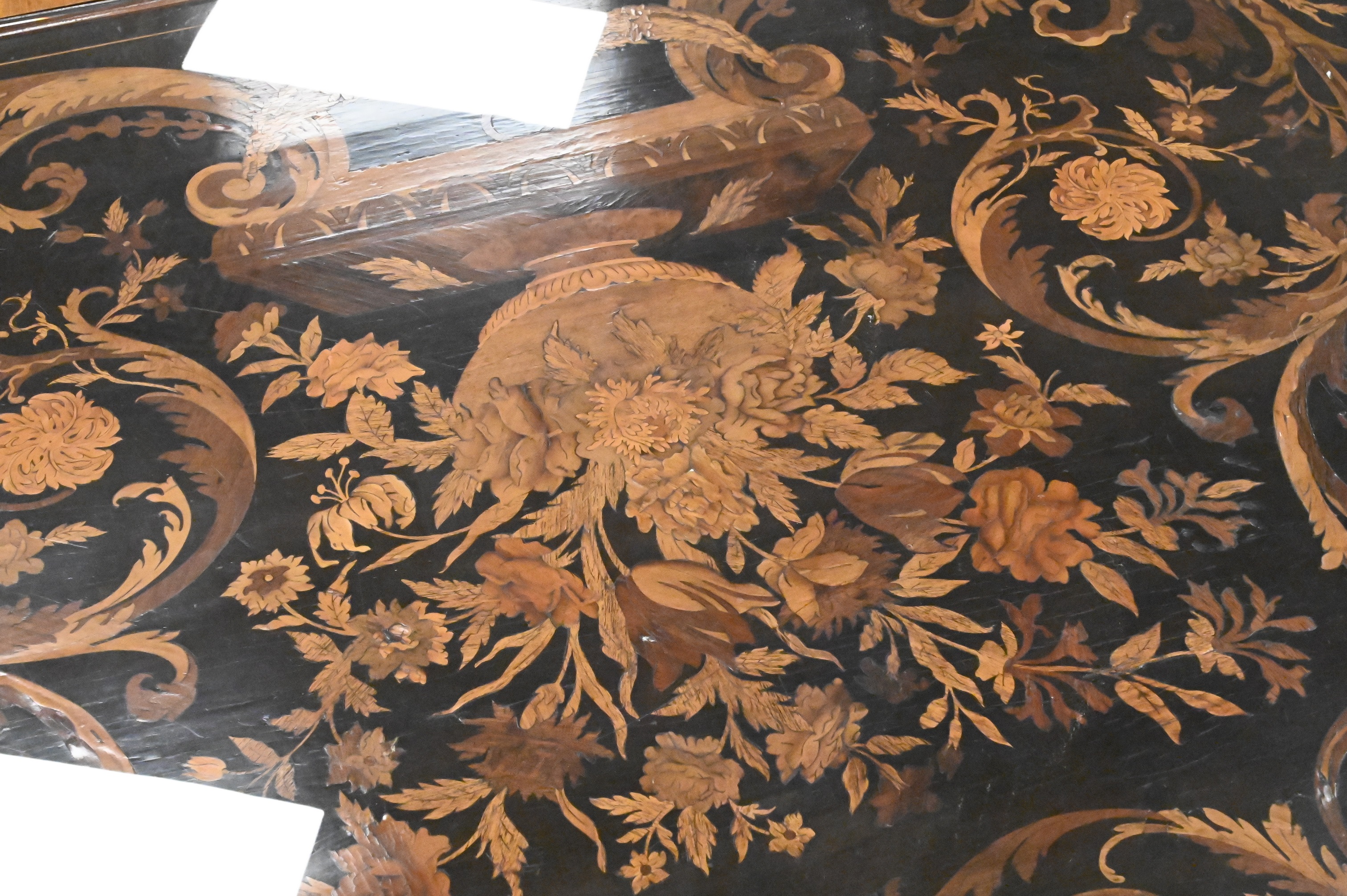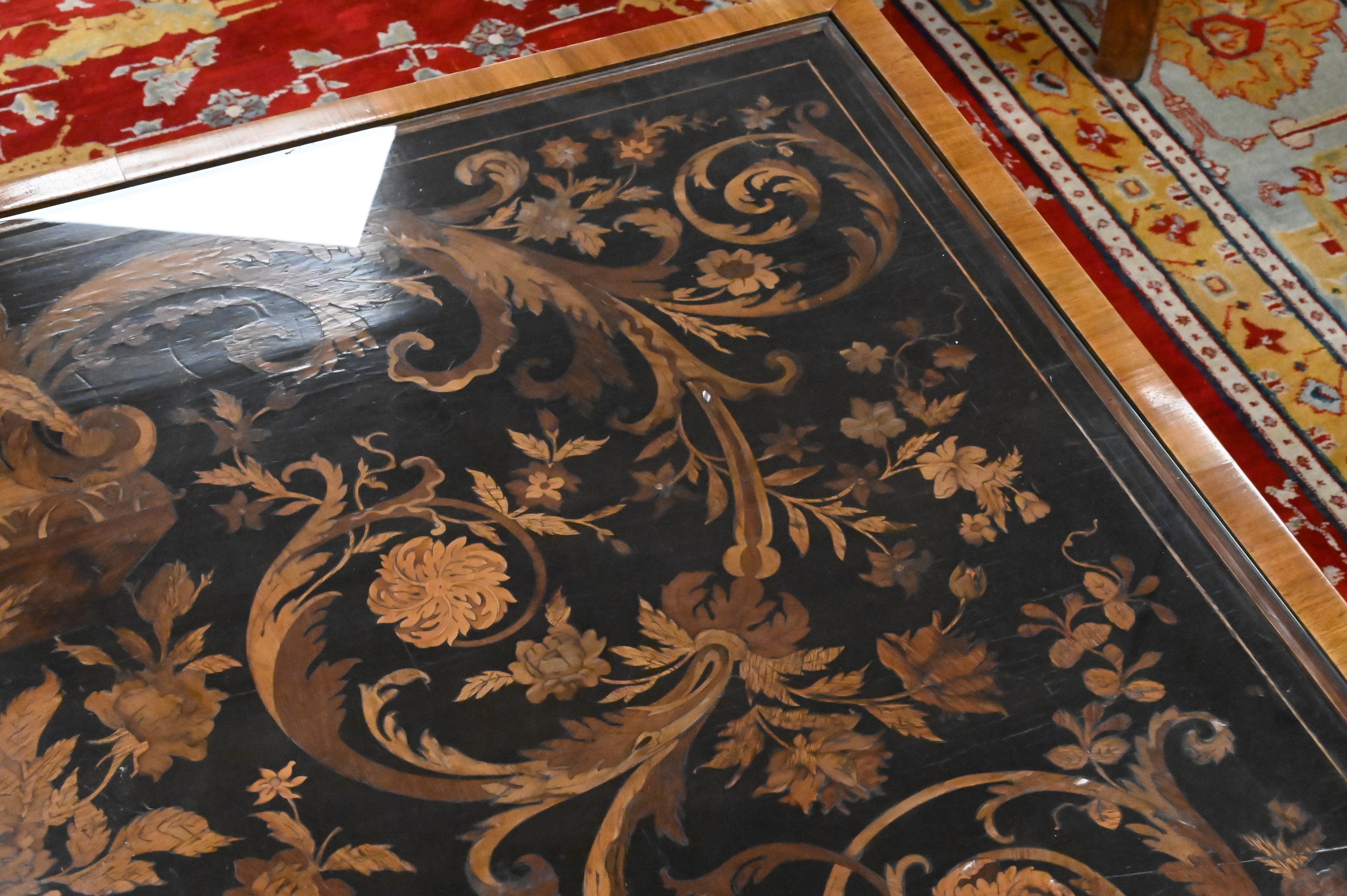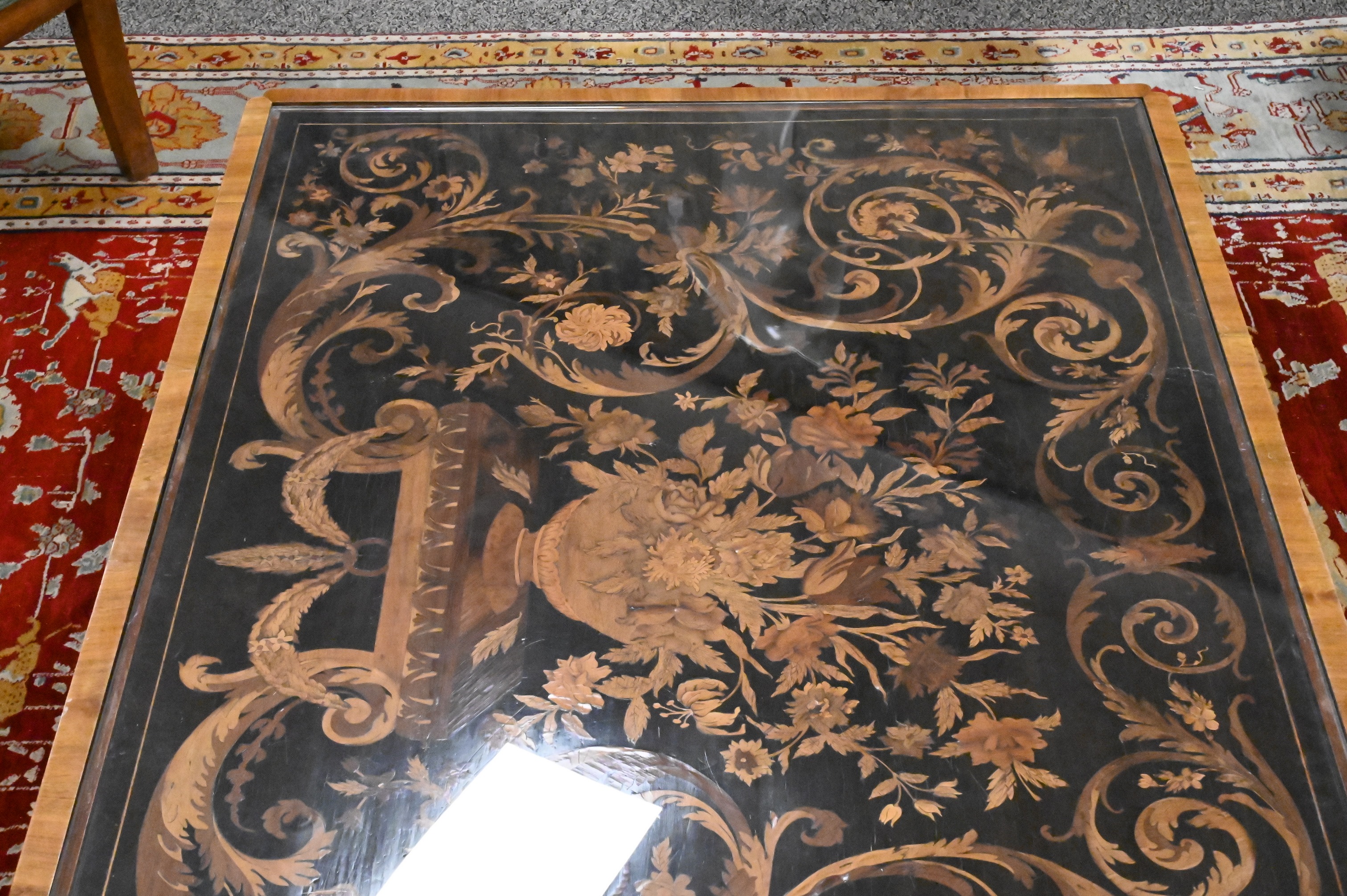 the panel in the manner of A.C. Boulle, Dutch or French, table base is 20th century