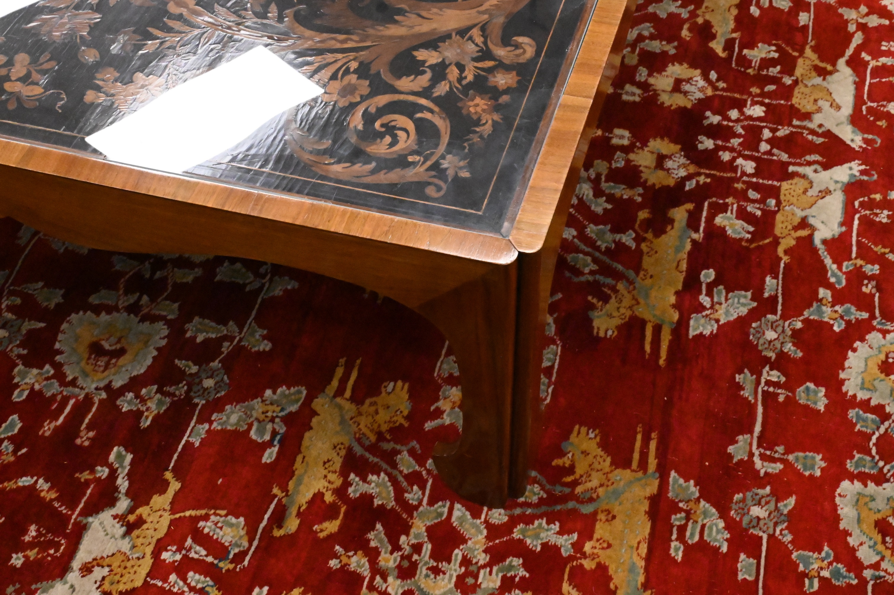 Condition: presents well, inlaid surface with very slight veneer lifting, craquelure striations throughout veneer, but right corner having slight damage to wood frame around inset panel, exterior frame in good condition having slight wear