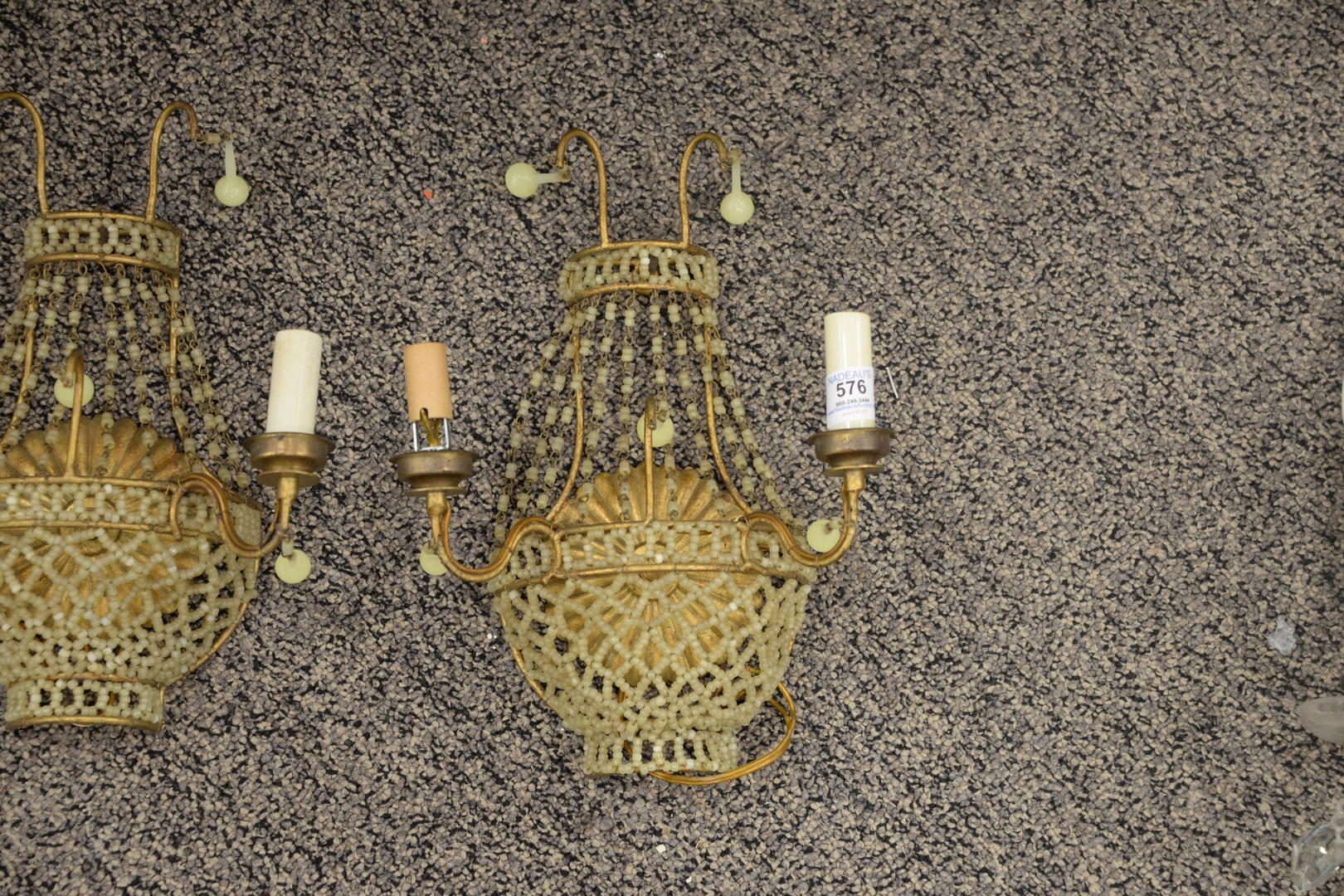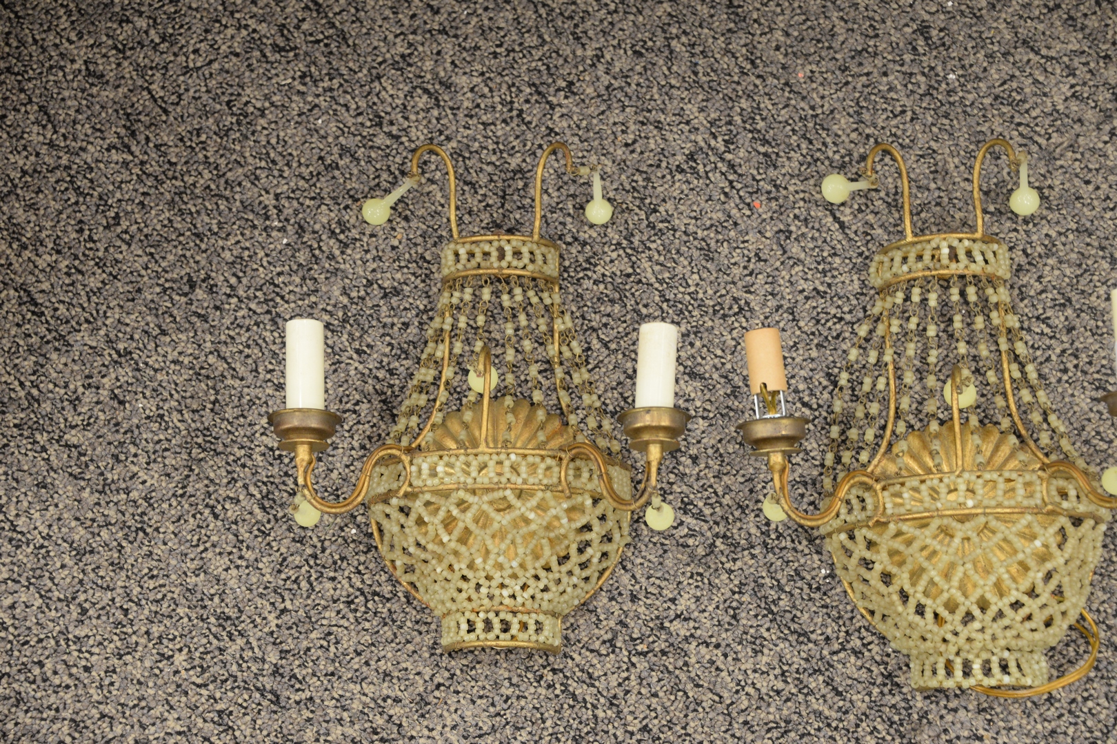 Pair of Beaded Glass Two Light Wall Sconces, height 12 inches.