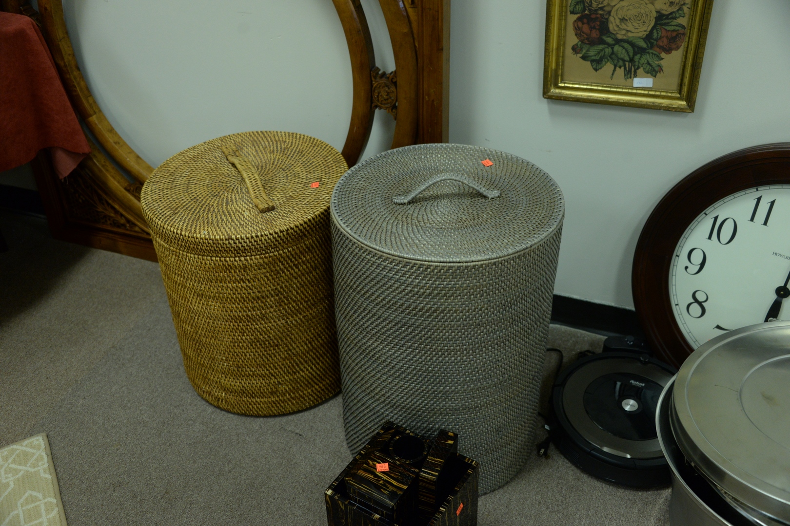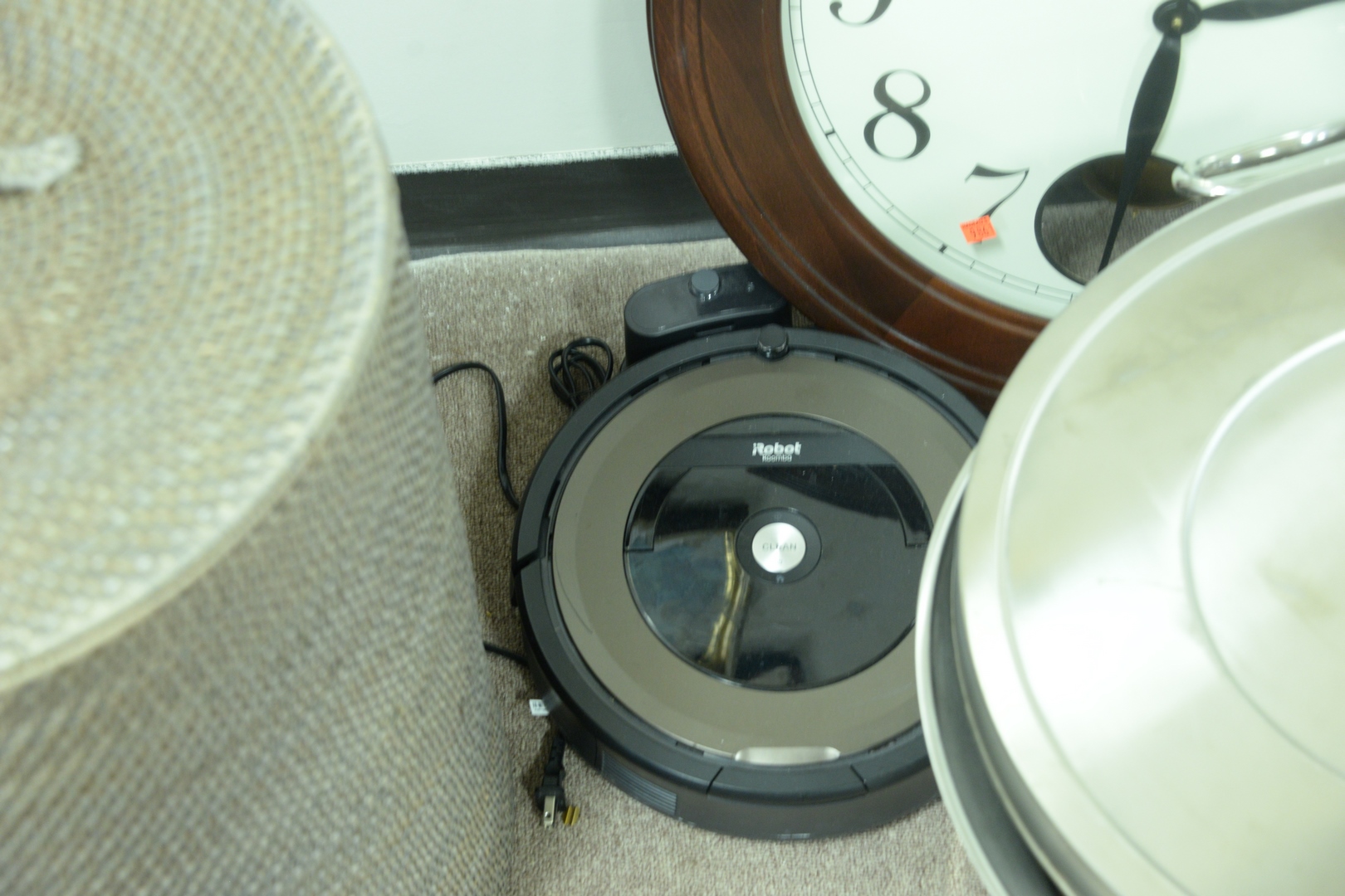 Assorted Group to Include Rowenta Steamer, Howard Miller Clock, iRobot vacuum, two hampers, etc. Provenance: David and Cynthia Kim, 22 Stoney Wylde Lane, Greenwich, Connecticut. View home by visiting: https://www.zillow.com/homedetails/22-Stoney-Wylde-Ln-Greenwich-CT-06830/177238281_zpid/