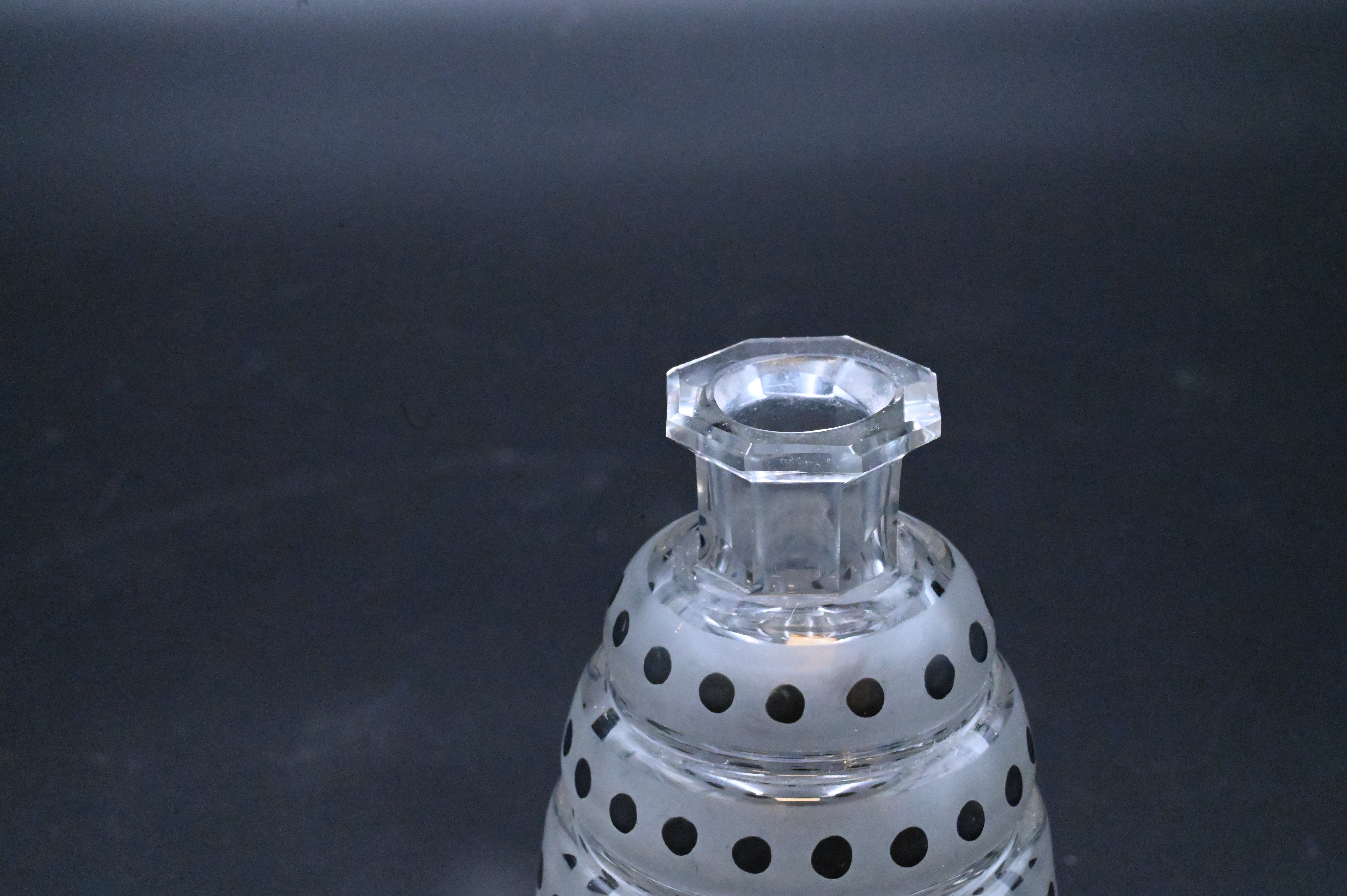 having frosted rings with black dots, octagon stopper and base