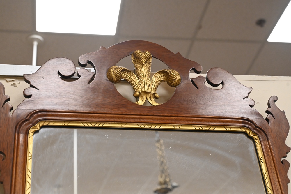 Margolis Custom Mahogany Chippendale Style Mirror, having gilt plume top, height 44 inches, width 23 inches.