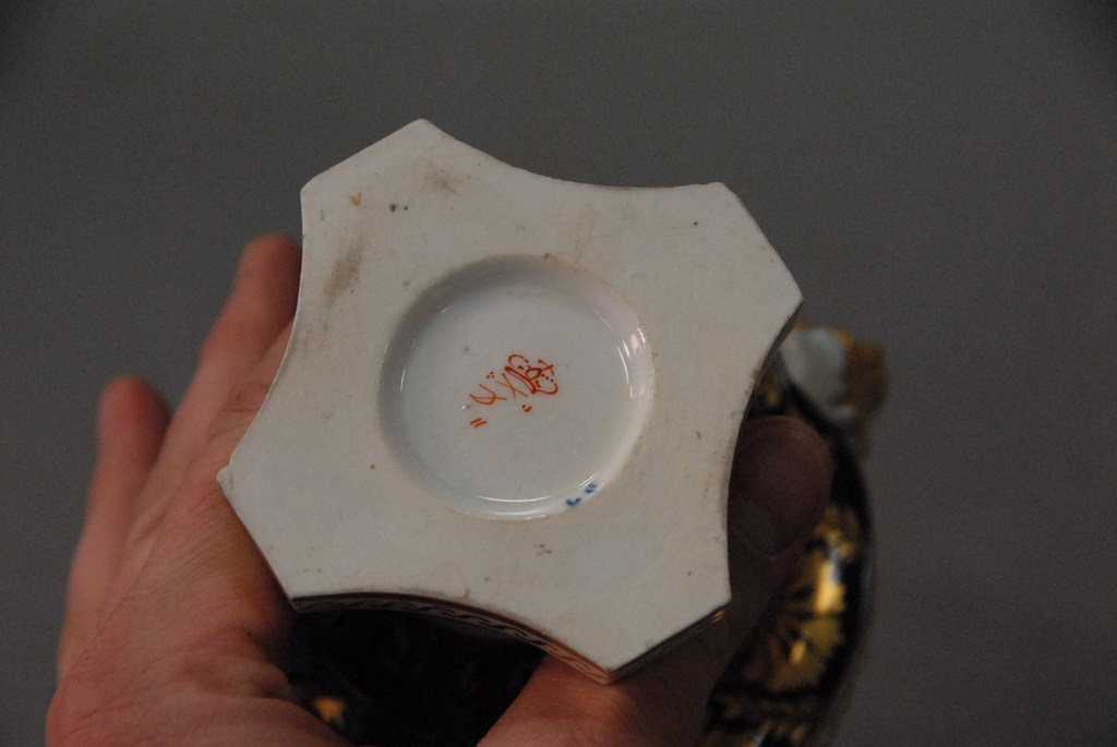 Lot 577: Two pairs of porcelain vases one with round tops and gilt lion masks on shaped bases with gilt decoration signed Royal Crown Derby …