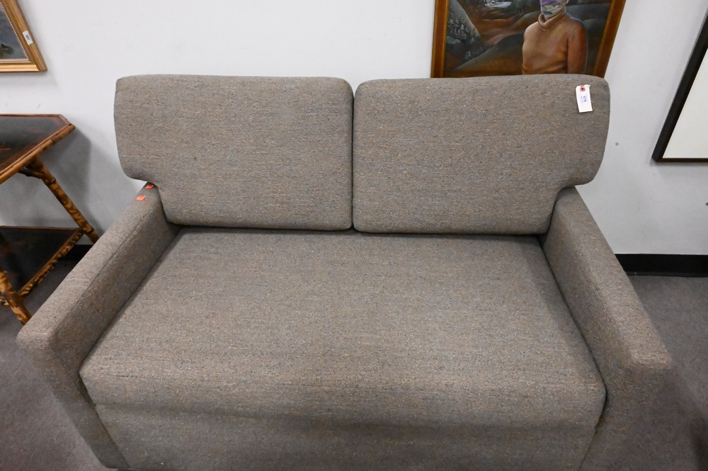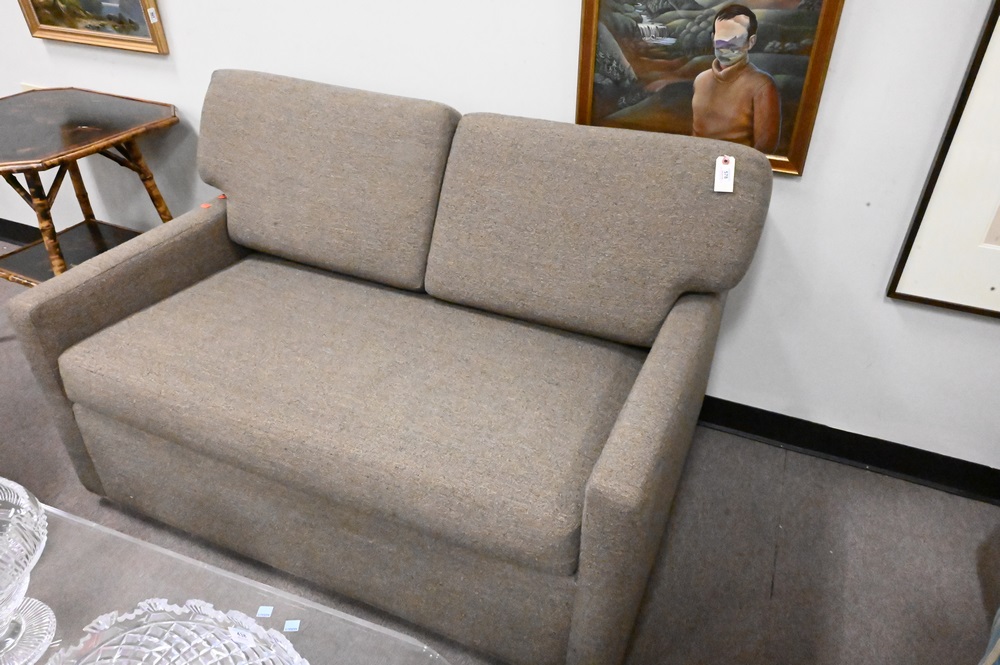 Avery Boardman Loveseat, having pull out twin size bed, height 25 inches, width 52 inches.