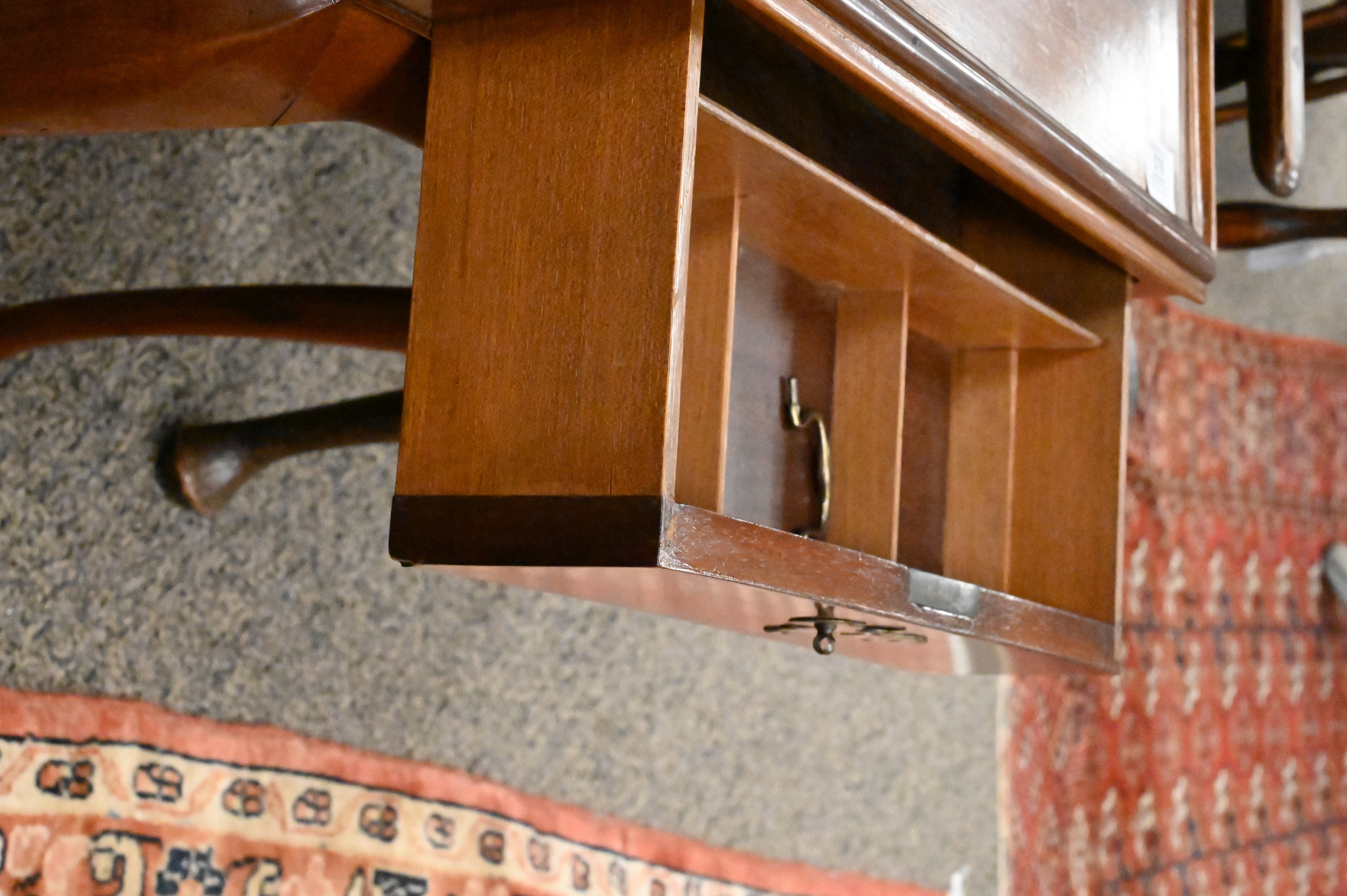 having a galleried rectangular top over a single frieze drawer and cabriole legs ending in shod pad feet