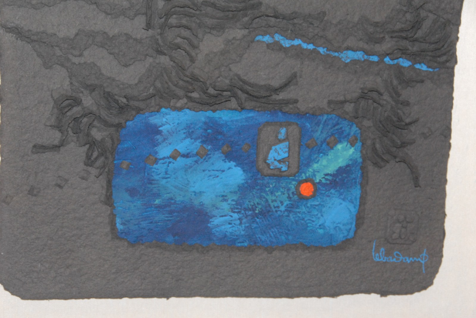Lebadang Vietnamese UNTITLED in shadow box frame mixed media three dimensional collage signed lower right Lebadang.