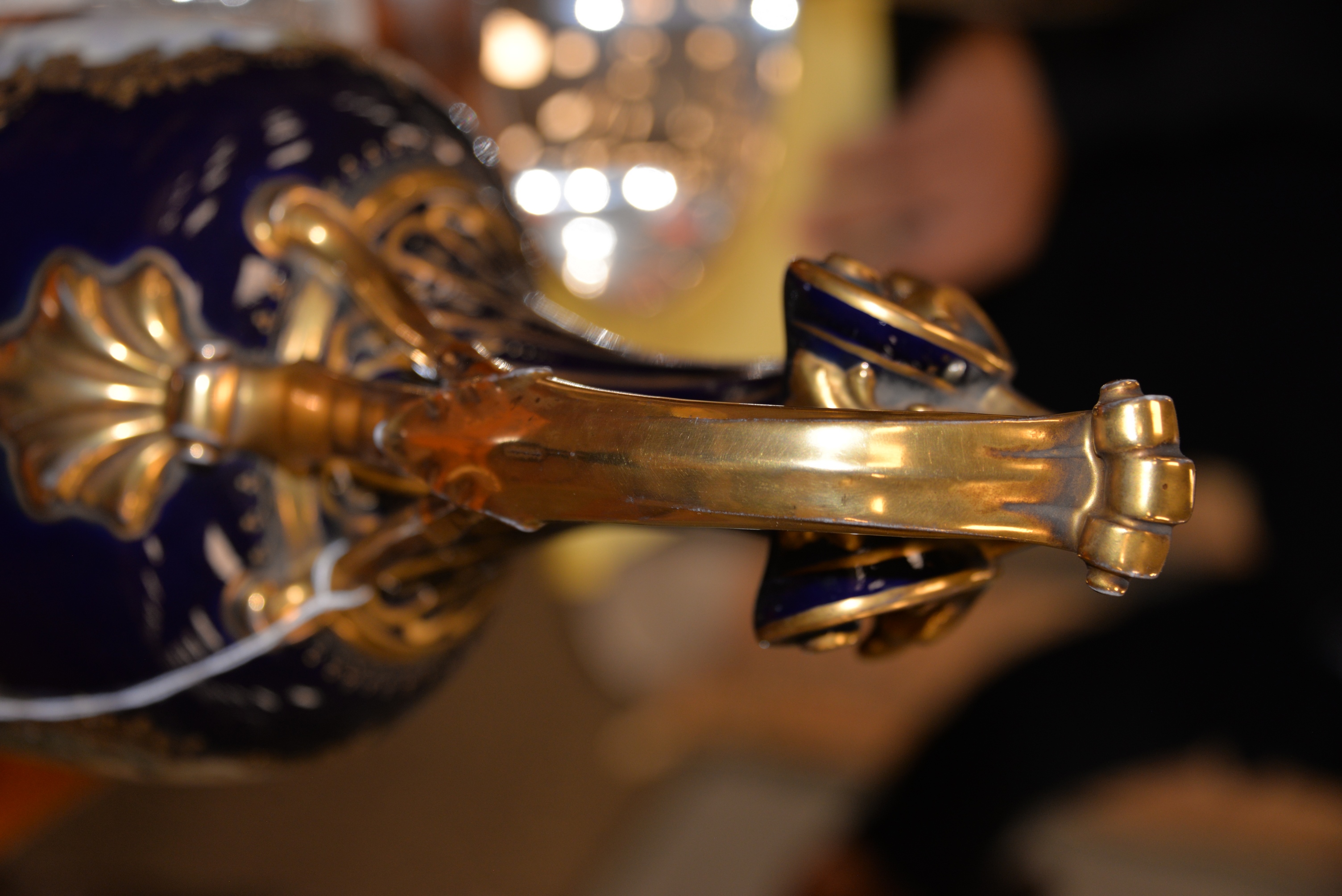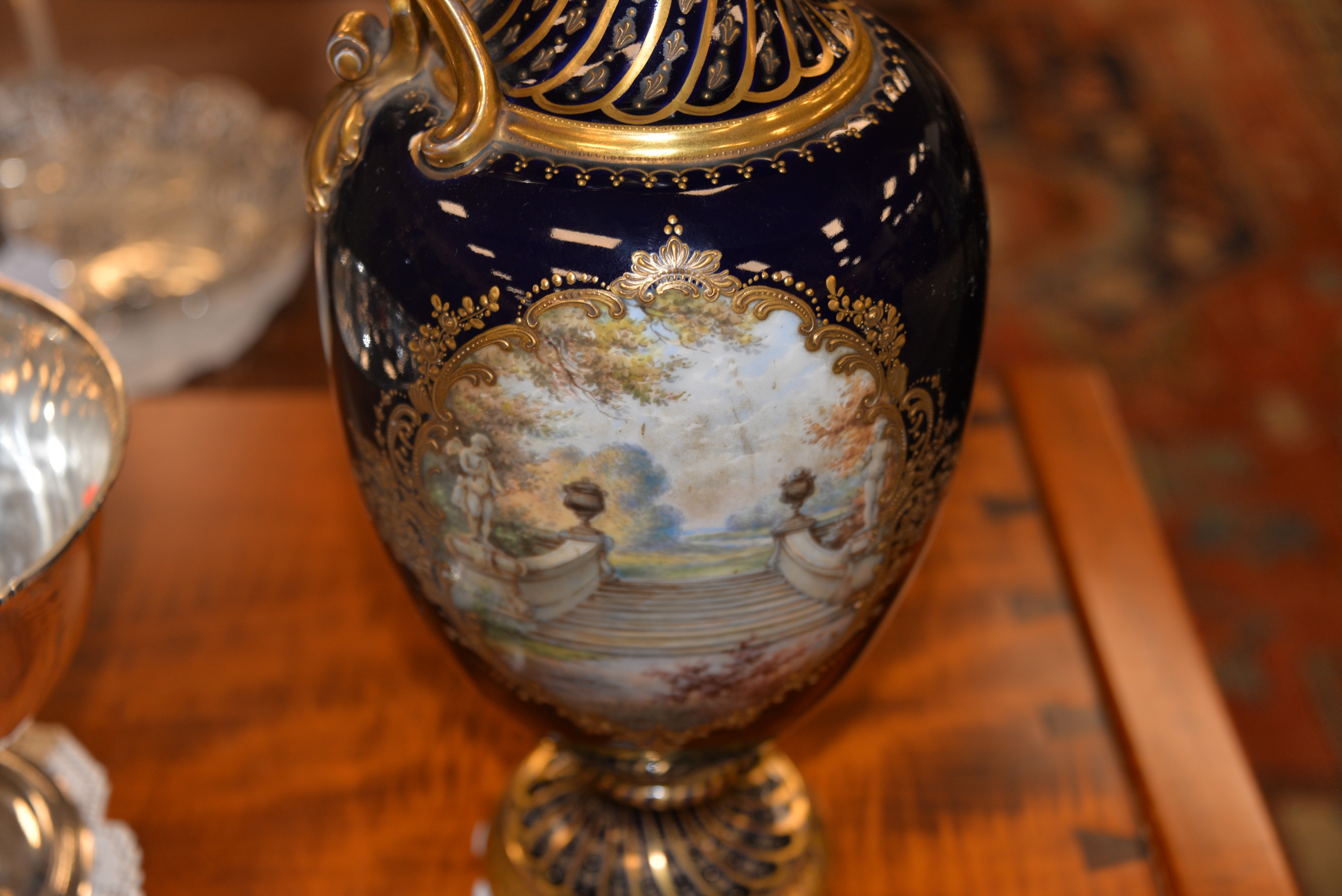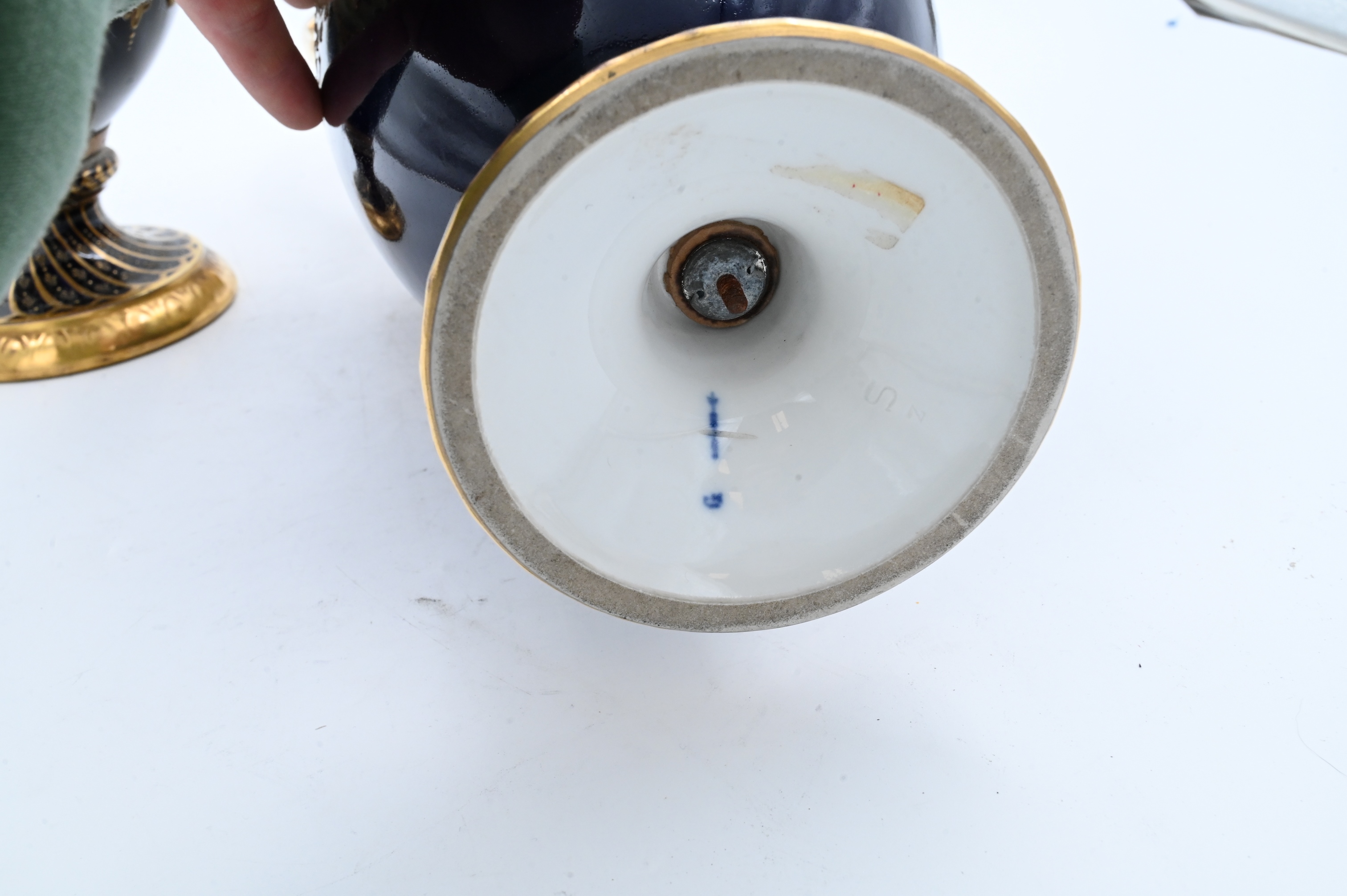Lot 578: Pair of Berlin Porcelain Cobalt Blue Urns