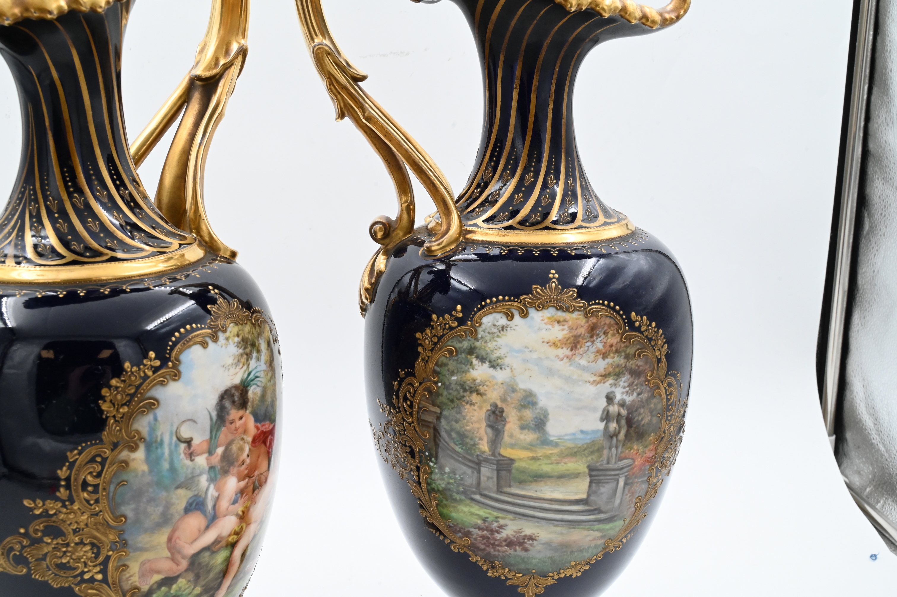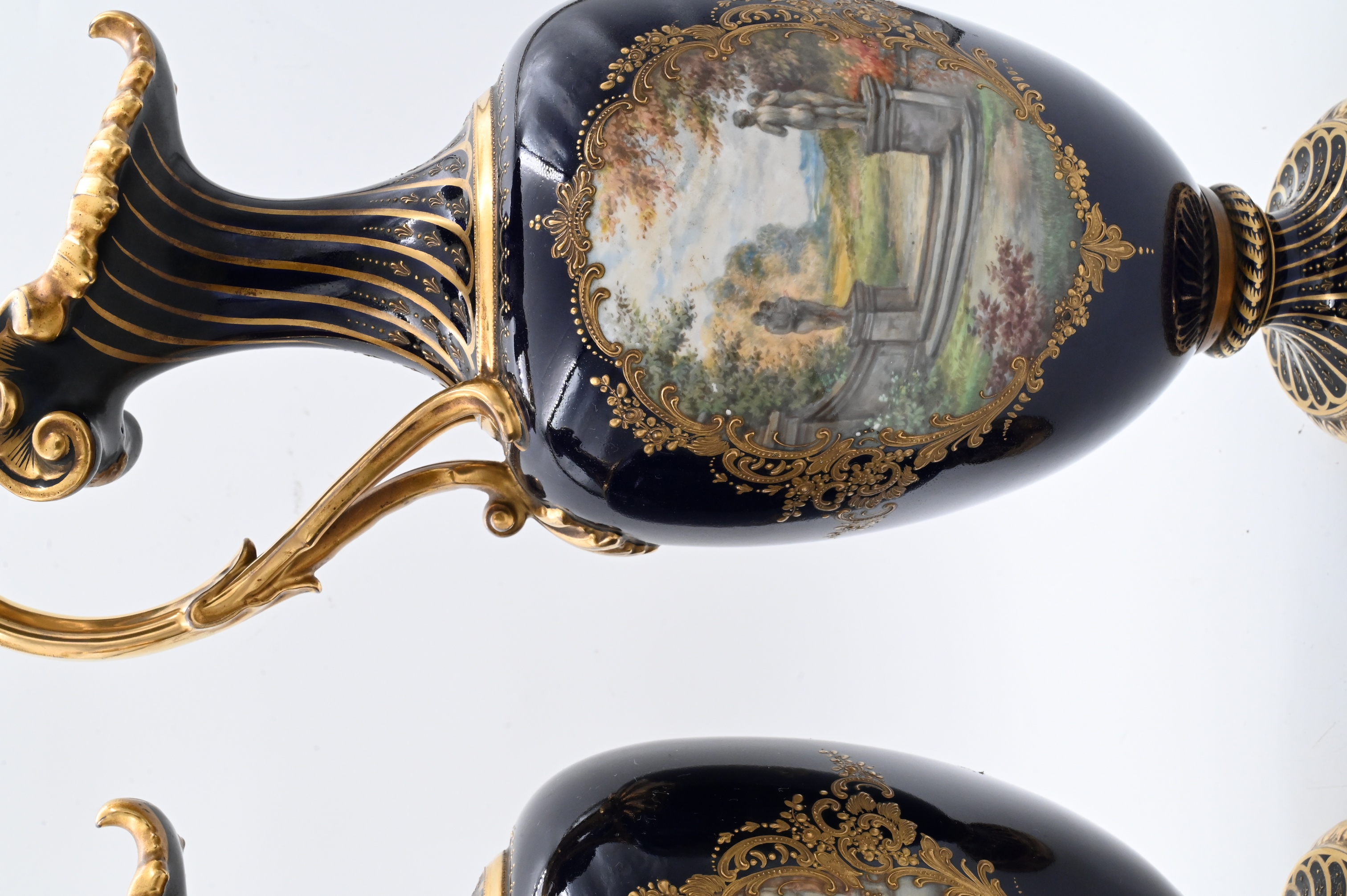 Pair of Berlin Porcelain Cobalt Blue Urns