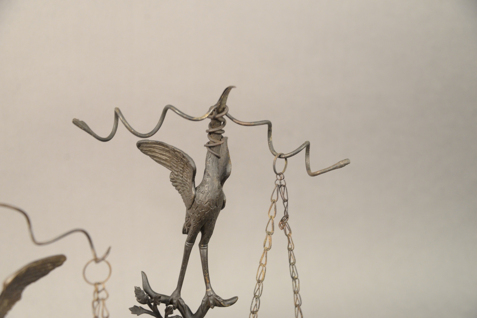 Lot 579: Group of Five Grand Tour Oil Lamps all having bird motif, four ending in hoof feet, one having frog form feet, tallest height 20 inc…