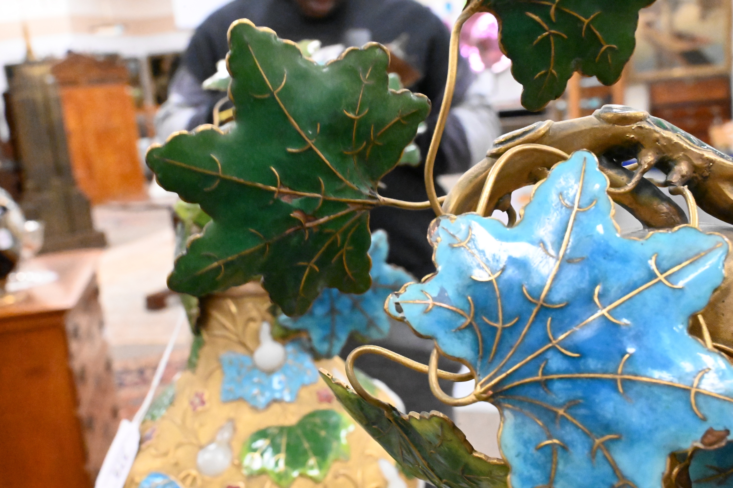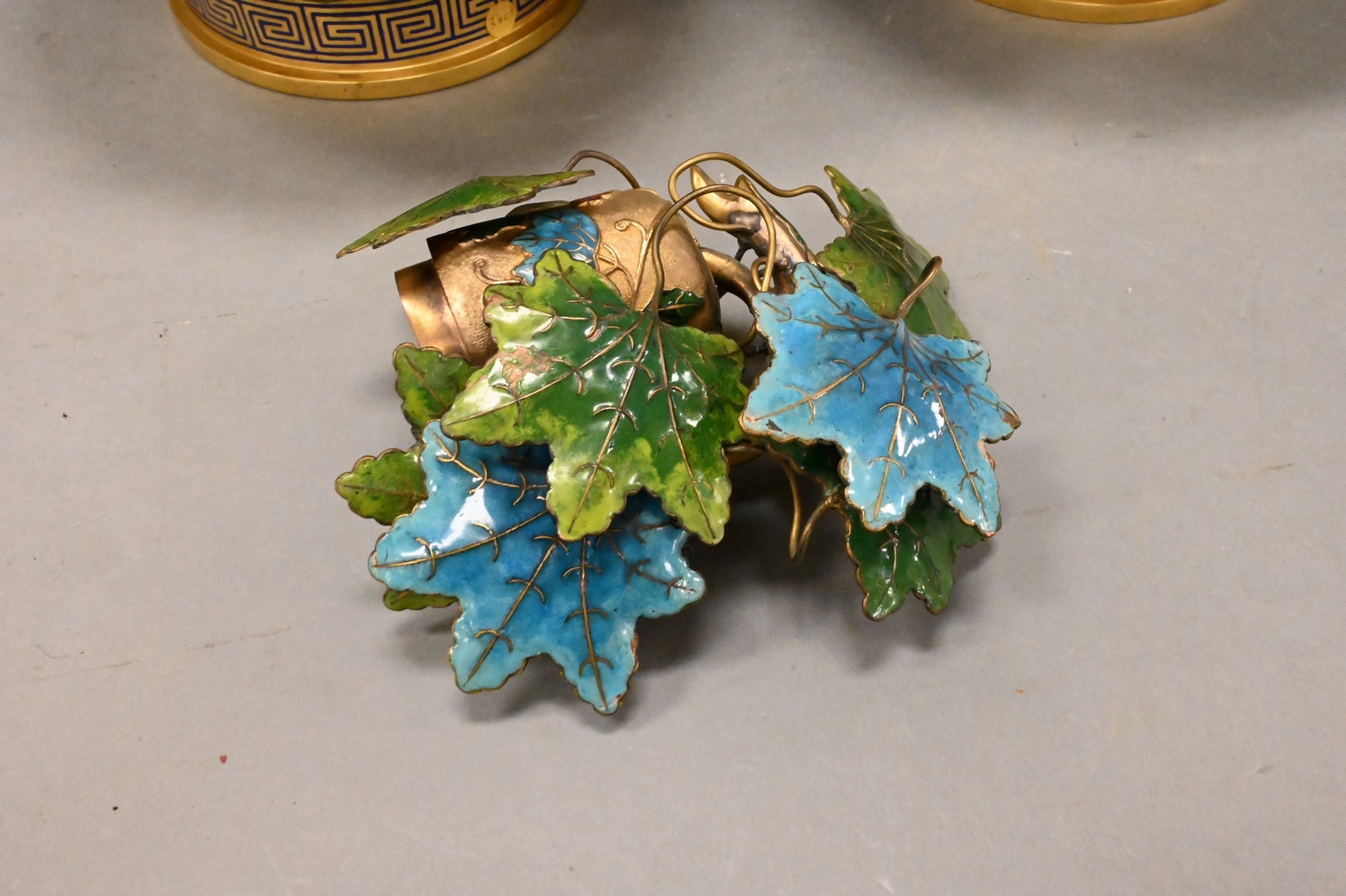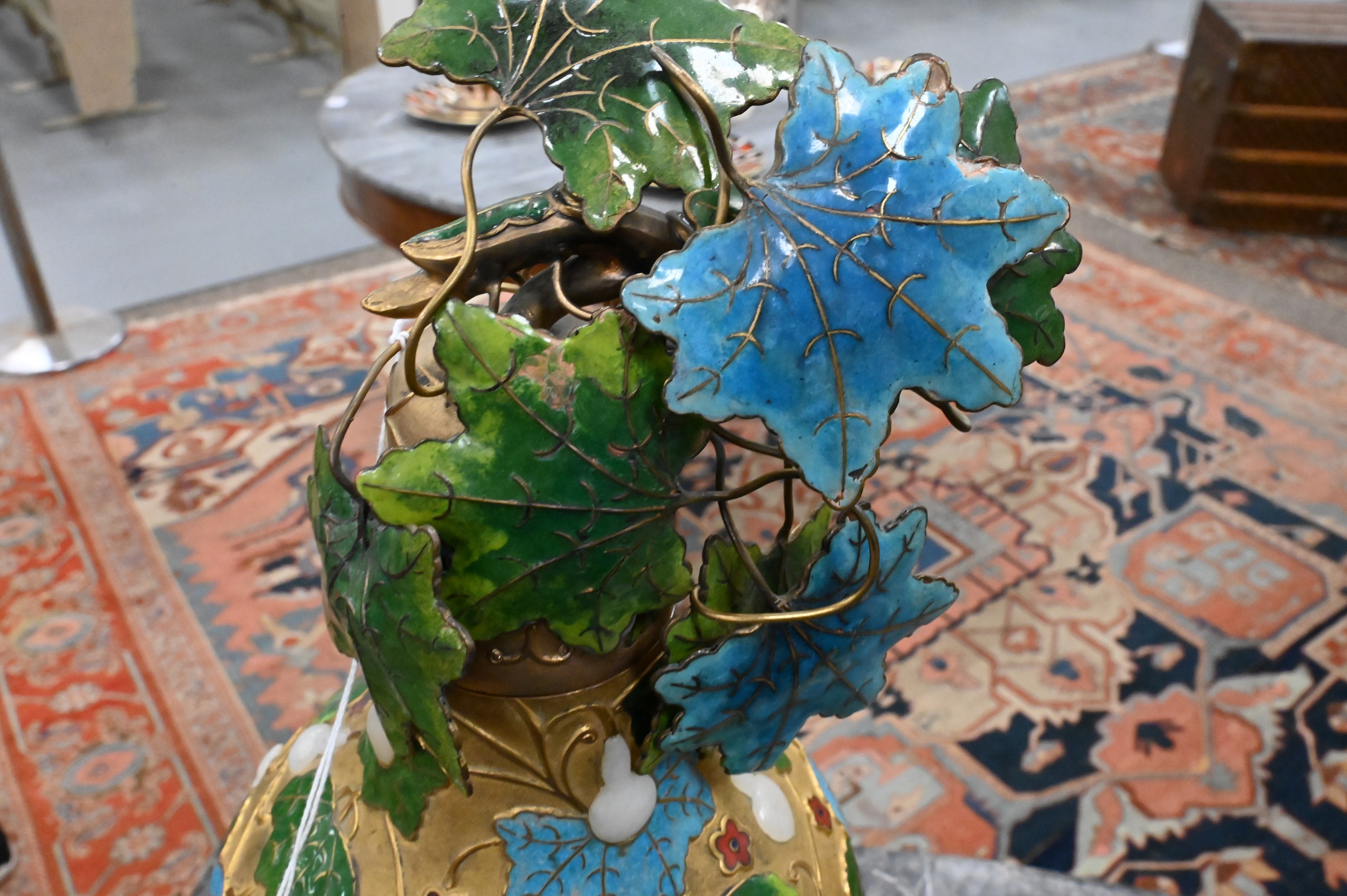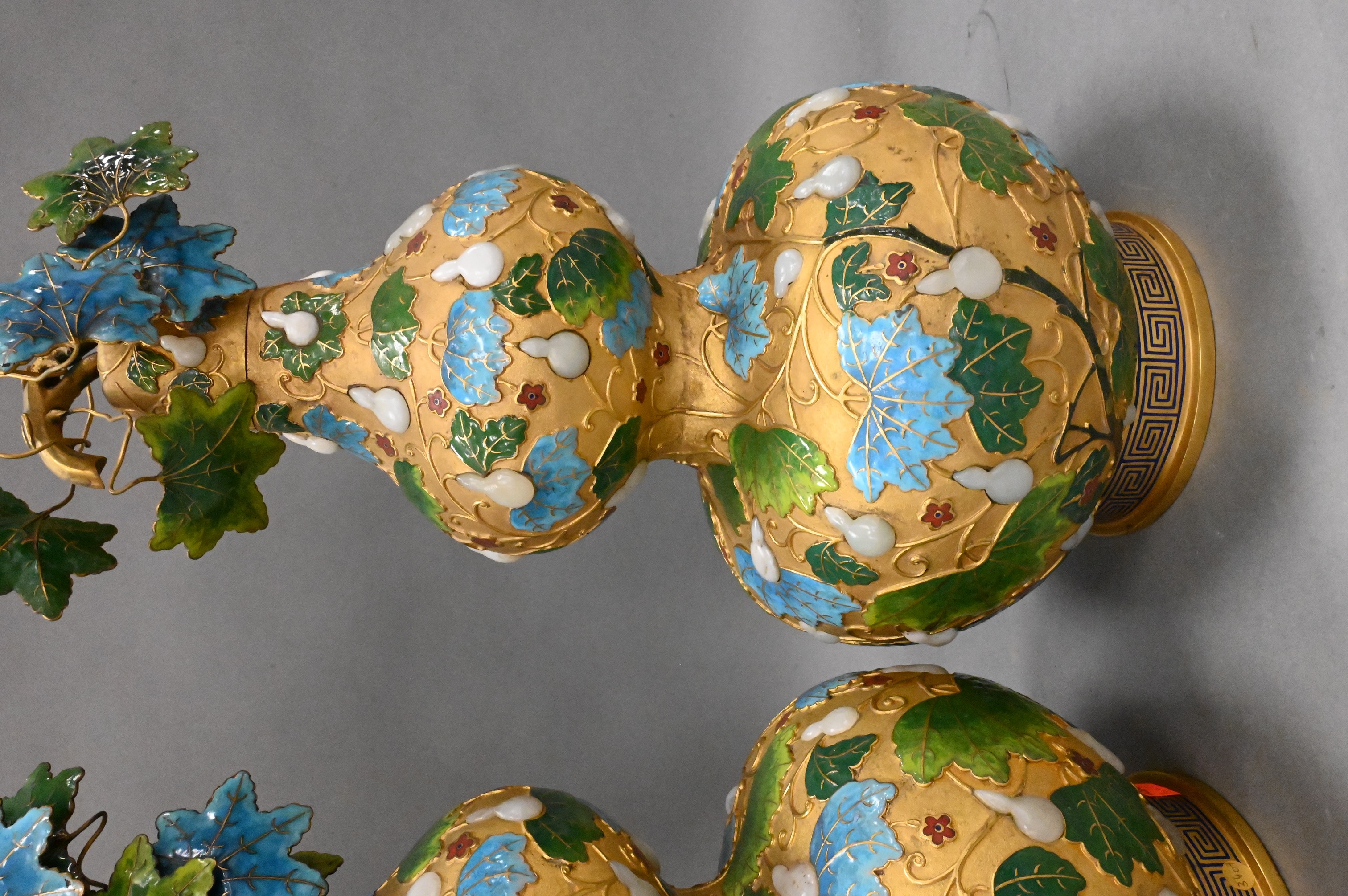 Lot 579: Pair of Champleve Enamel Gilt Metal Double Gourd Vases