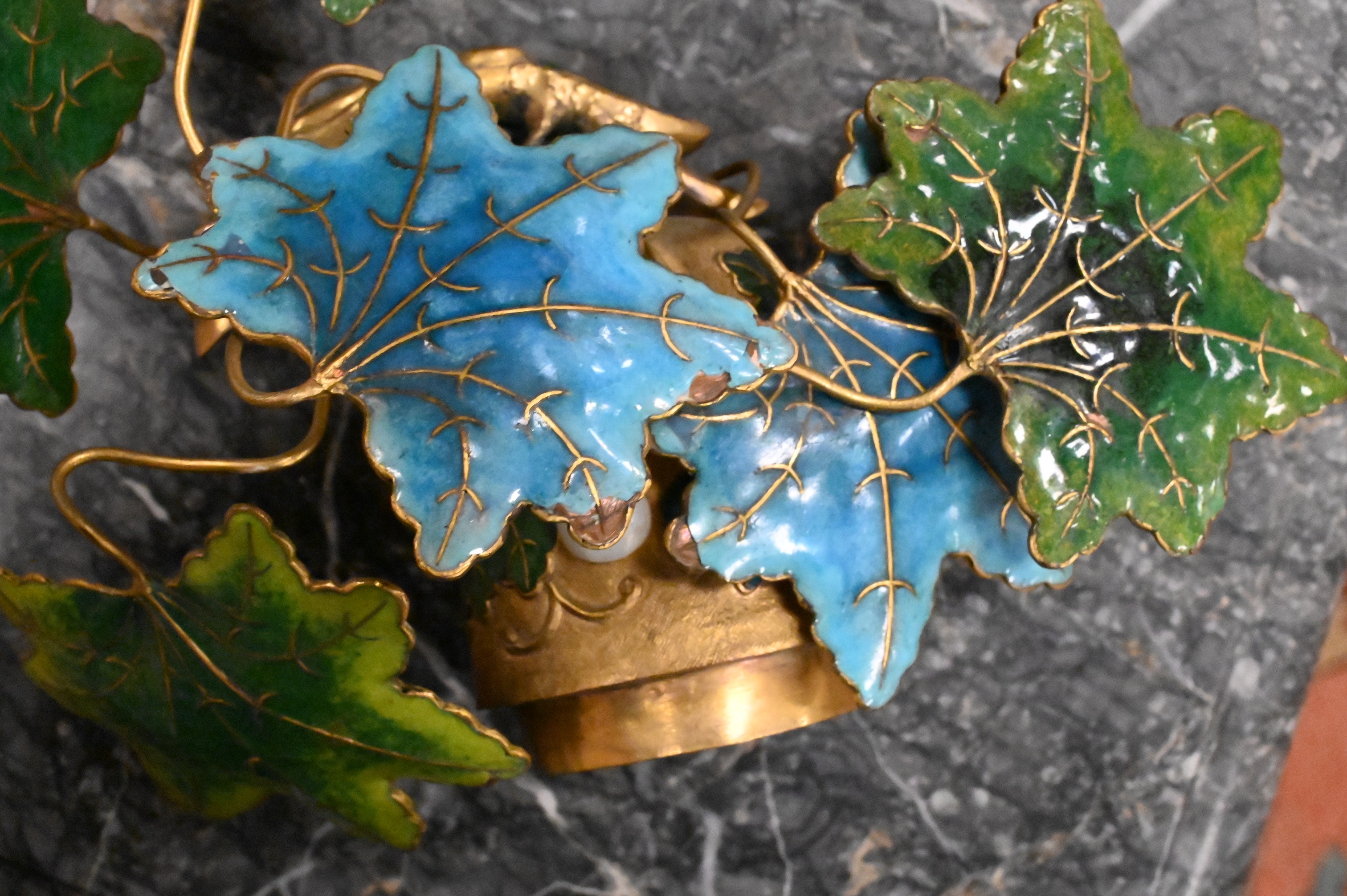 Pair of Champleve Enamel Gilt Metal Double Gourd Vases