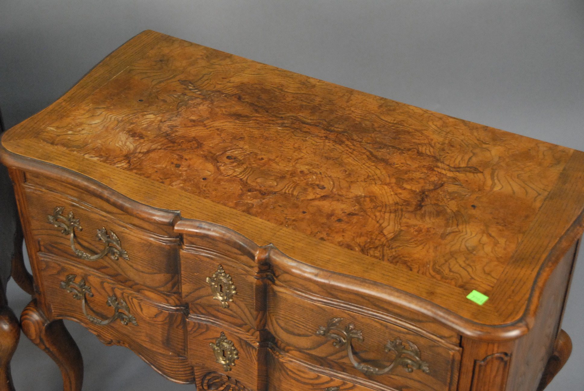 Pair of burl walnut two drawer French style stands.