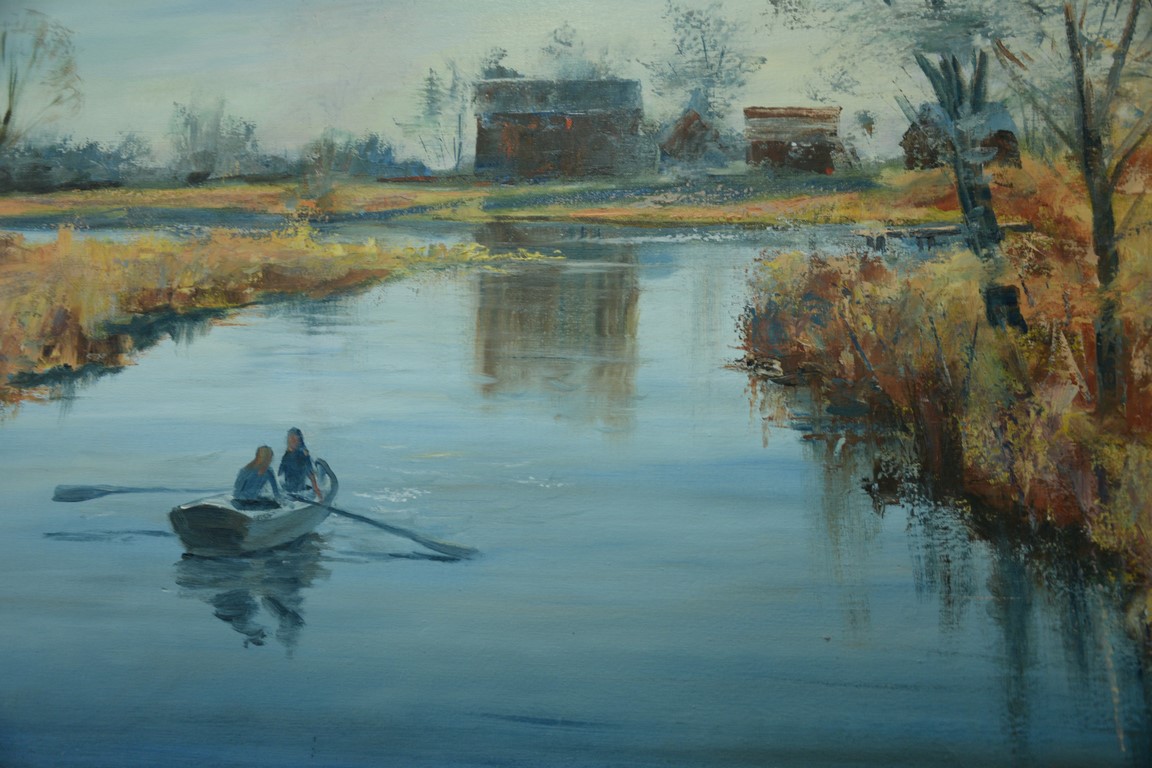 Bill Steeves oil on canvas, rowboat on the pond signed lower right Bill Steeves, 23 1/2 x 35 1/2.