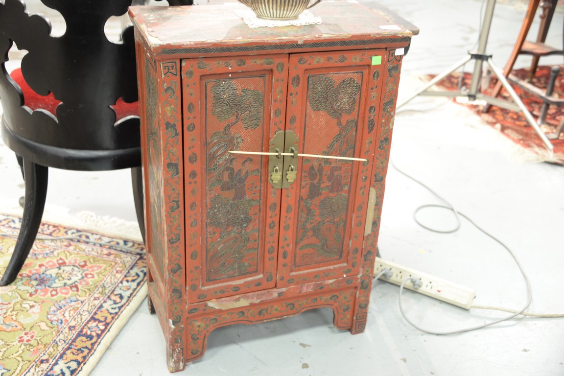 Chinese cabinet. ht. 30 in. wd. 19 1/2 in. dp. 10 in.