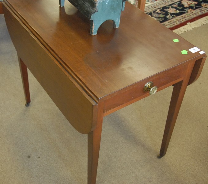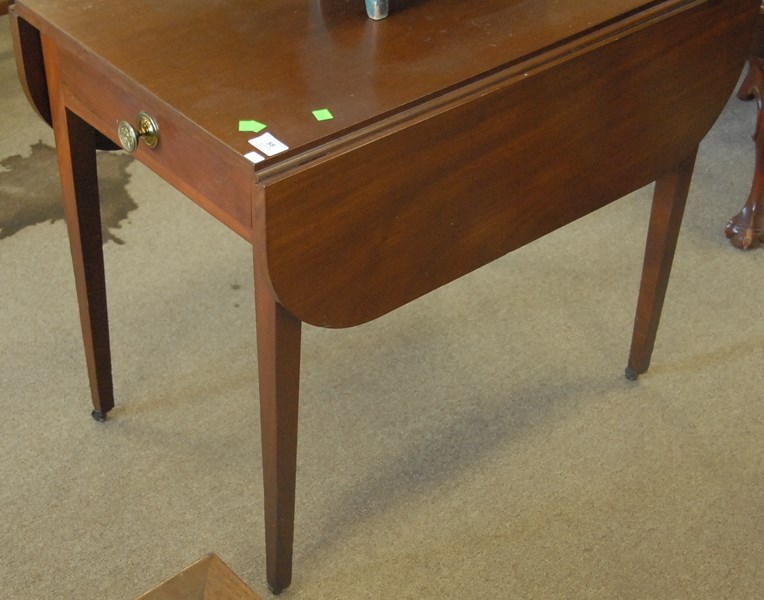 Federal mahogany Pembroke drop leaf table with drawer, circa 1790-1810.