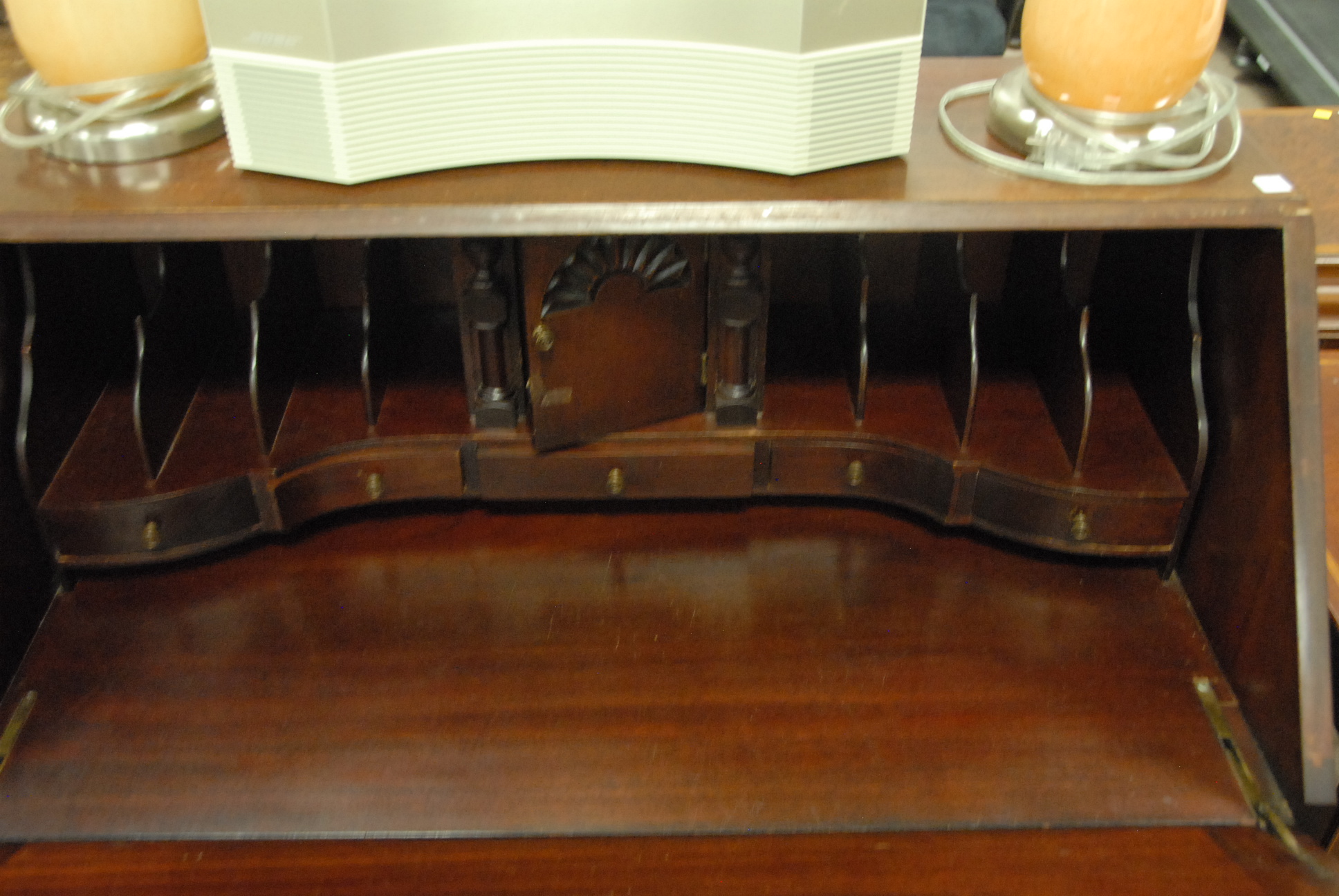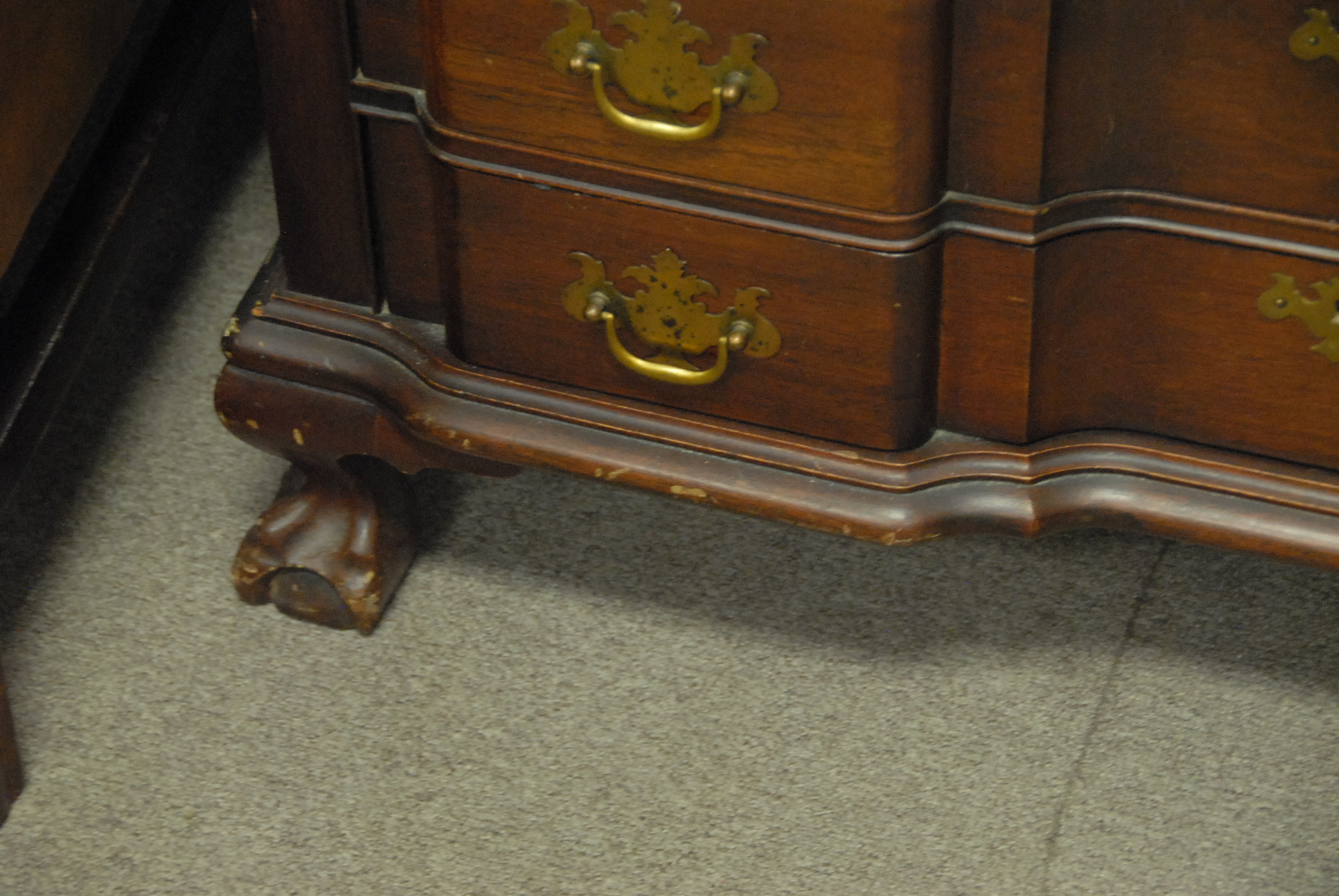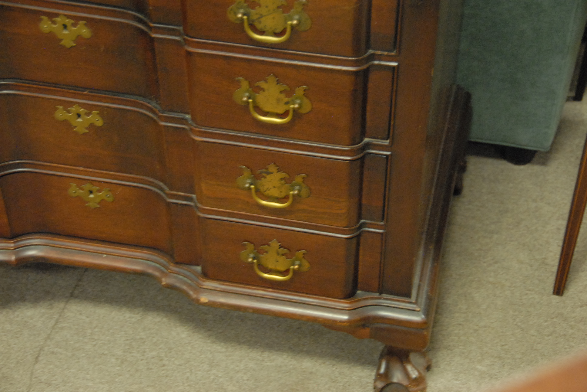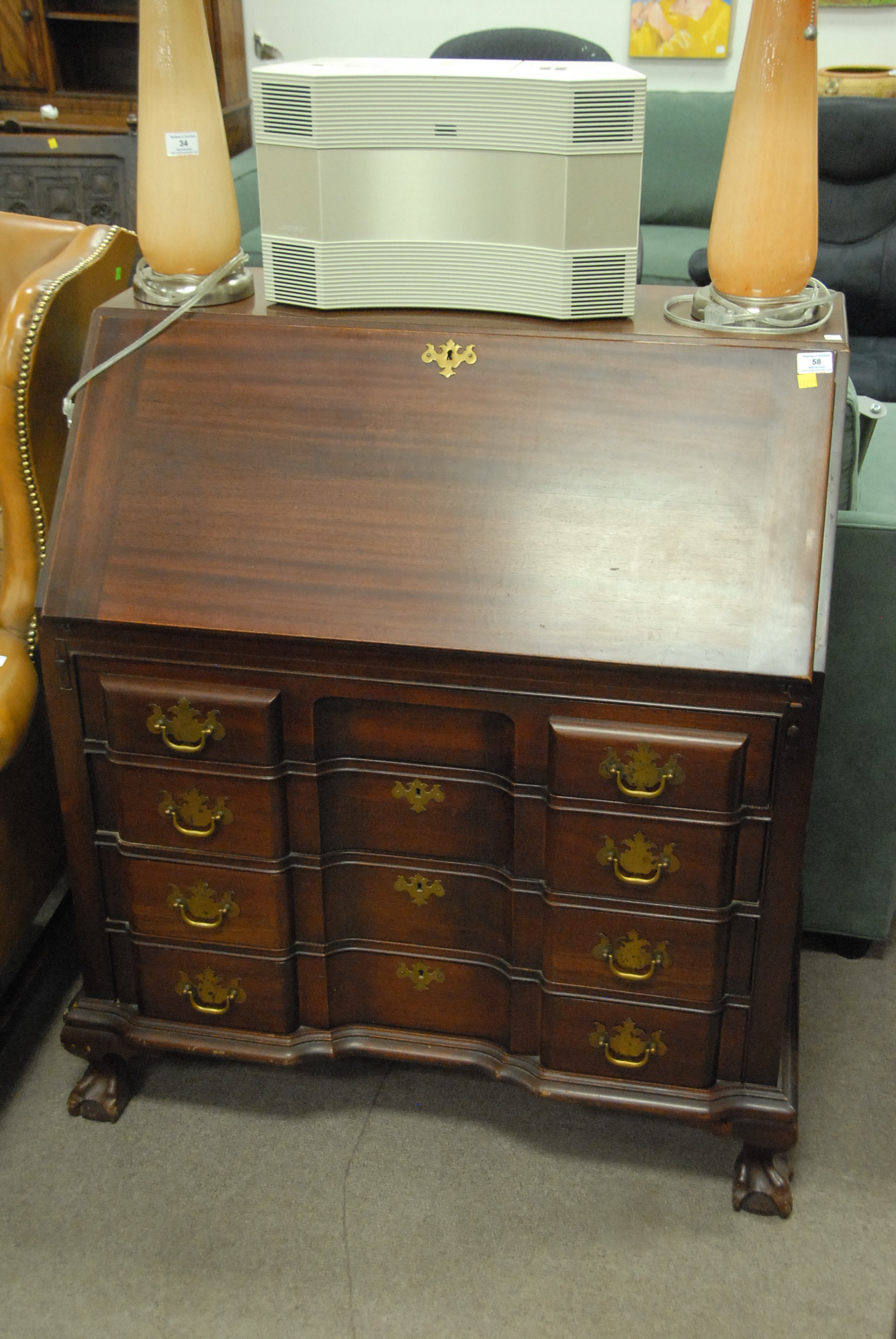 Mahogany block front Governor Winthrop style desk, ht. 41 1/2in. wd. 36in.