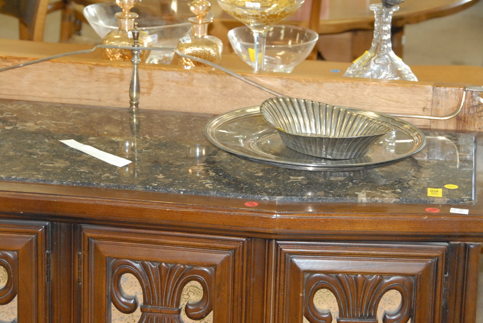 Marble top server with fitted drawers & 4 doors – by Fancher Furniture Co.