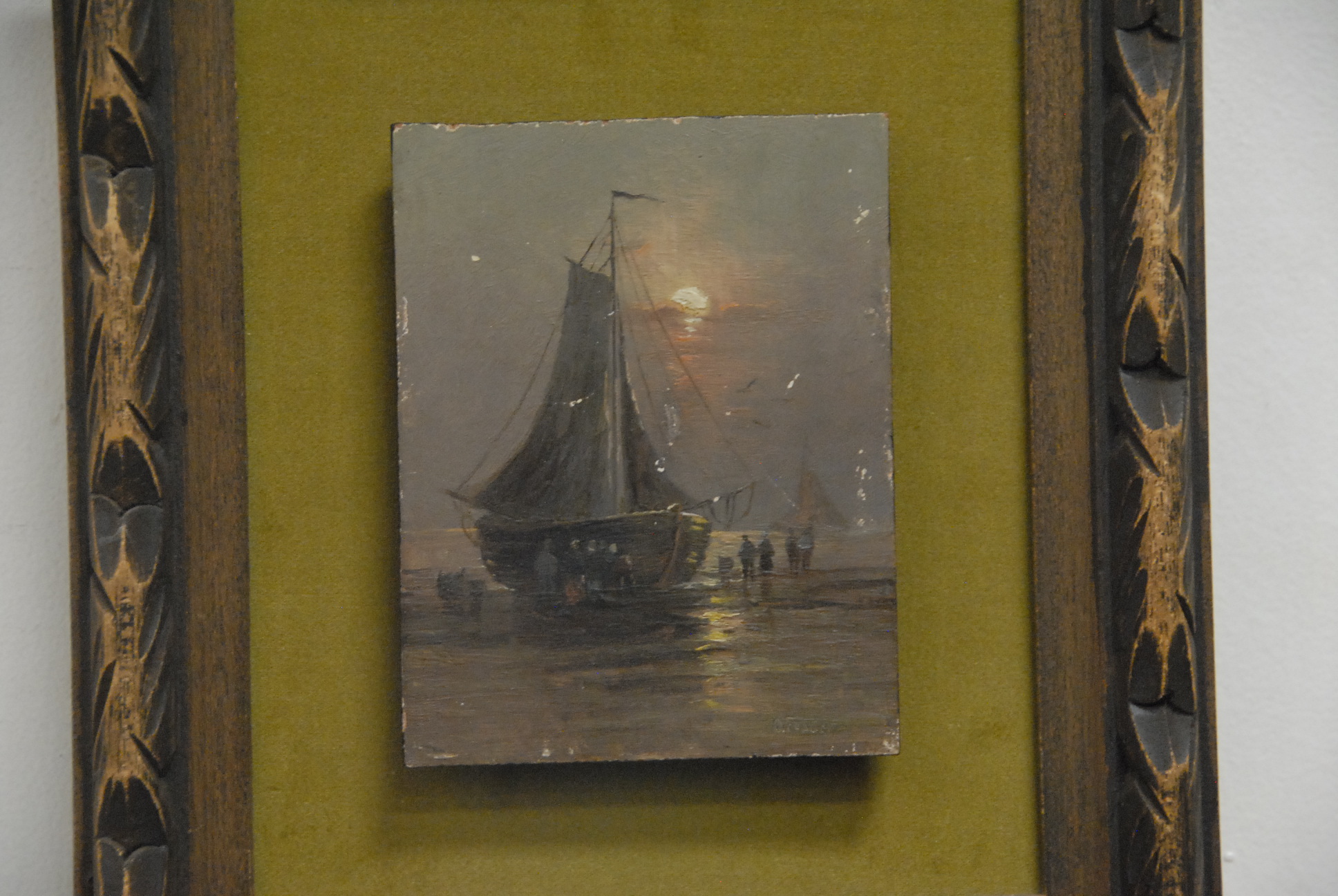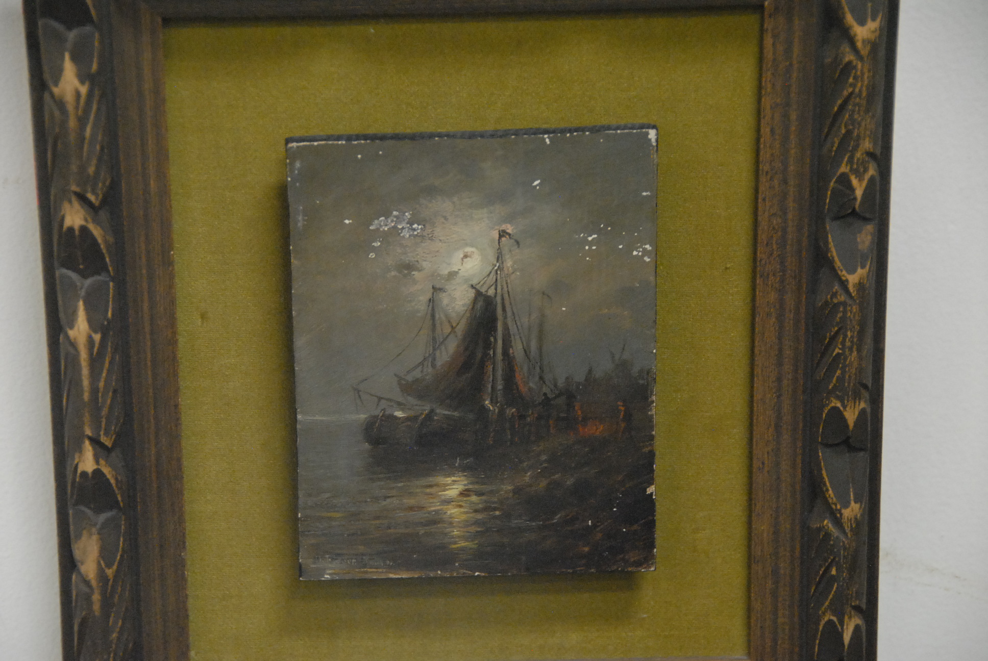 Otto Fedder 1873-1919 pair of oil on board paintings of moored ships signed lower left O Fedder Munch 99.