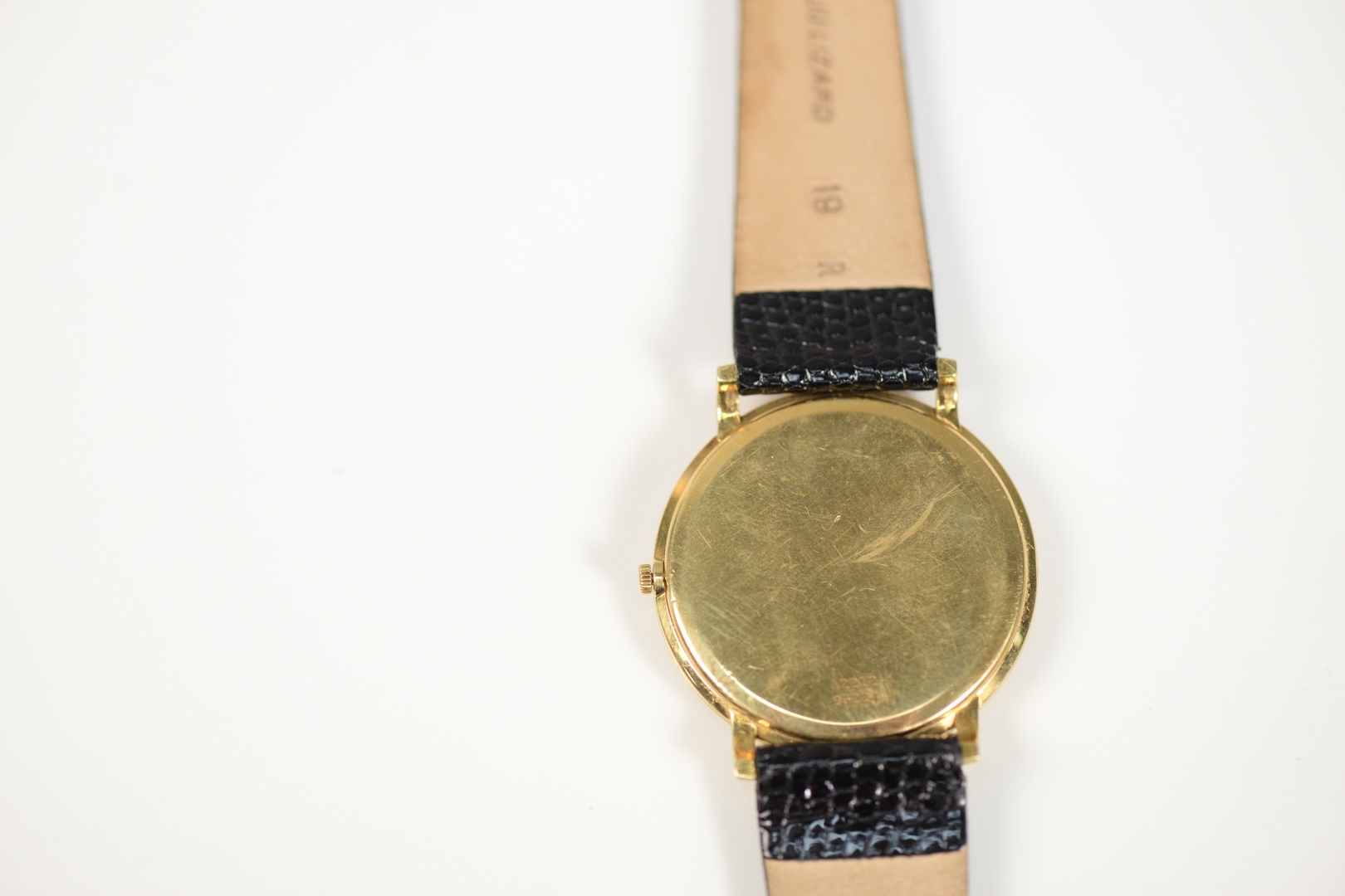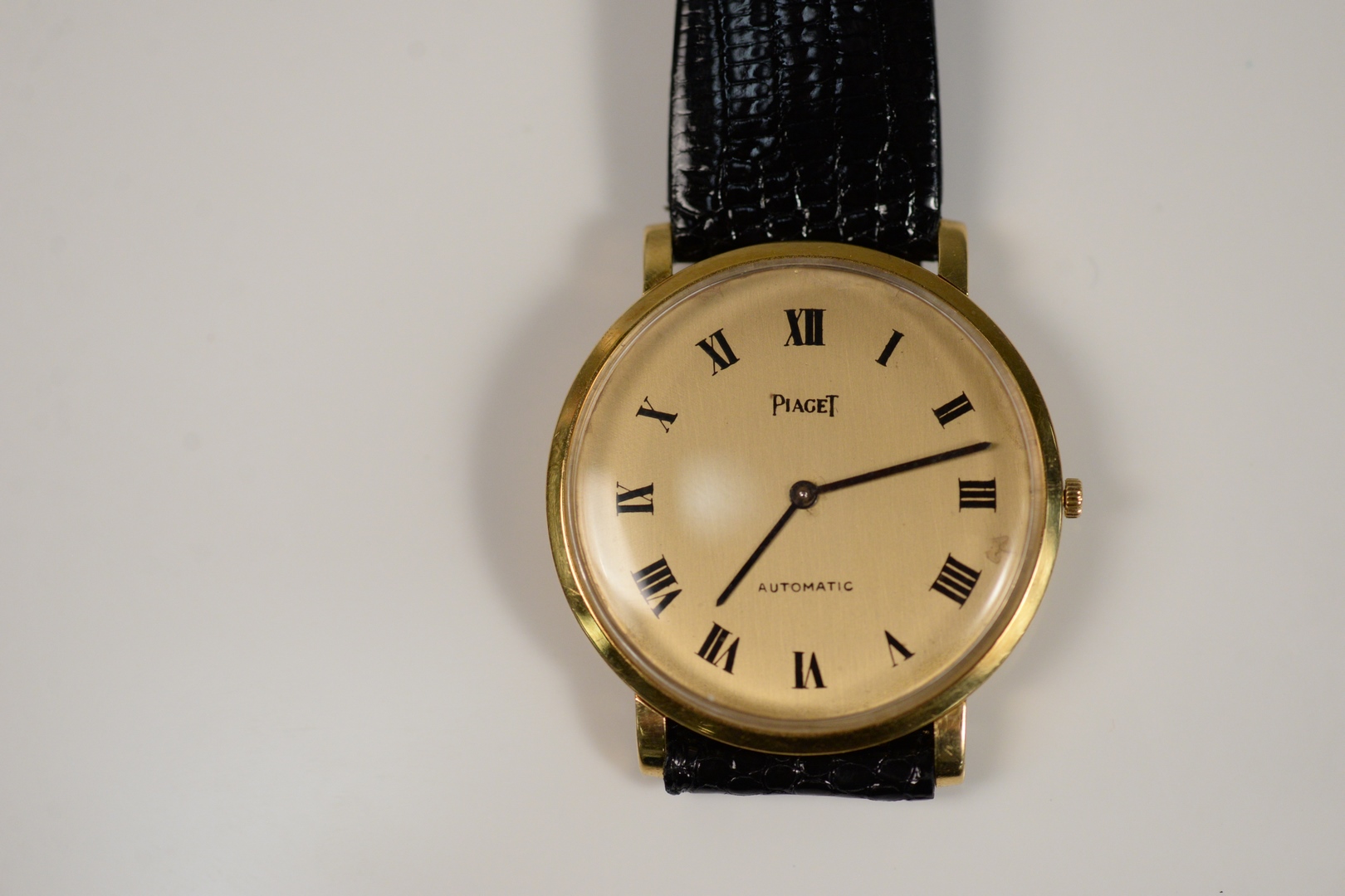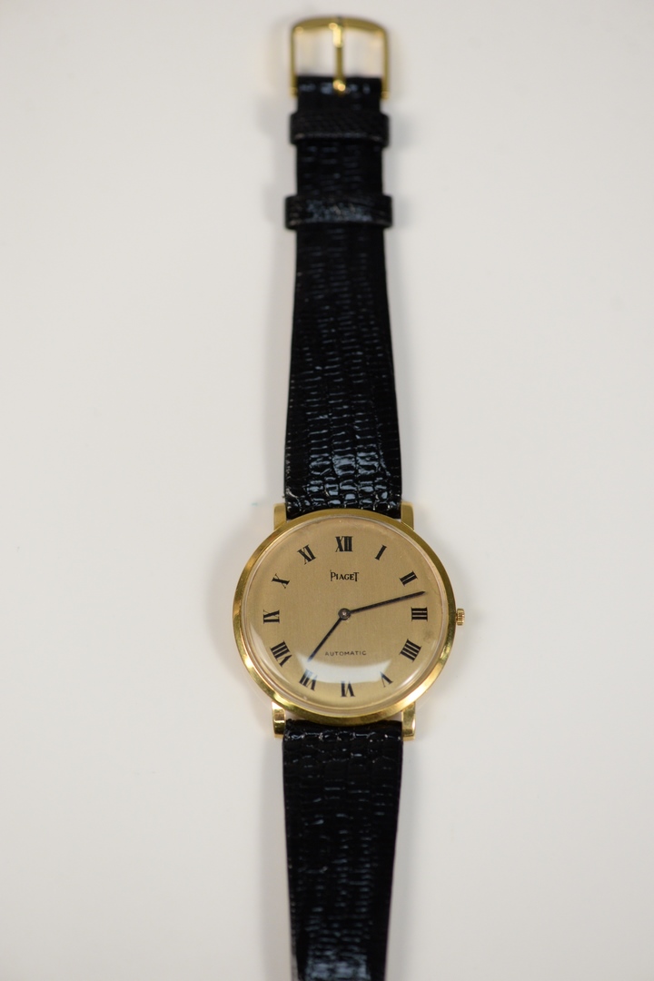 Piaget 18 Karat Gold Men’s Wristwatch thirty jewel, with leather band 34 millimeters