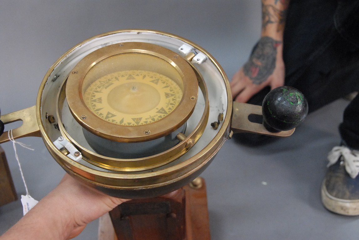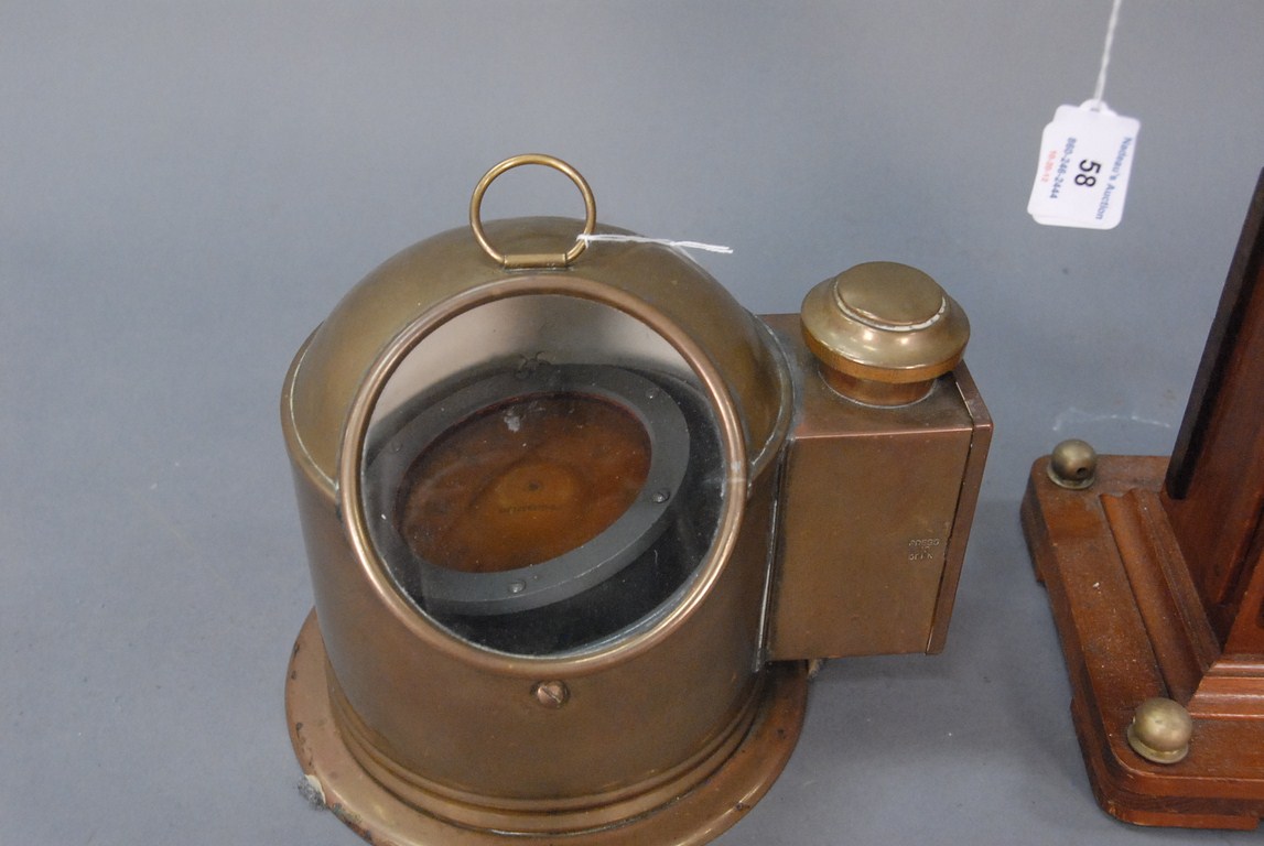 Lot 58: Two brass Sestre Binnades with compass on the inside, one having one side light other with two side lights and the compass marked Be…