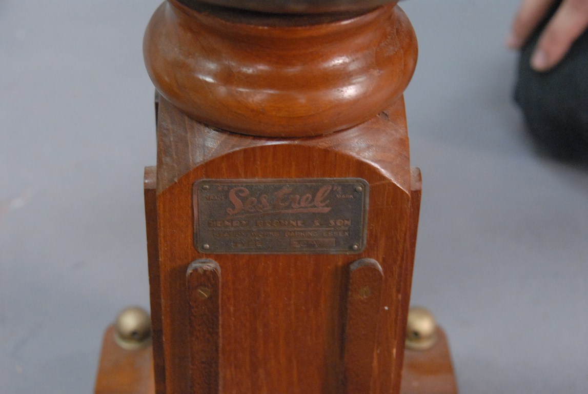 Two brass Sestre Binnades with compass on the inside, one having one side light other with two side lights and the compass marked Bergen Nautik on wood base. hts. 21in. & 10in.