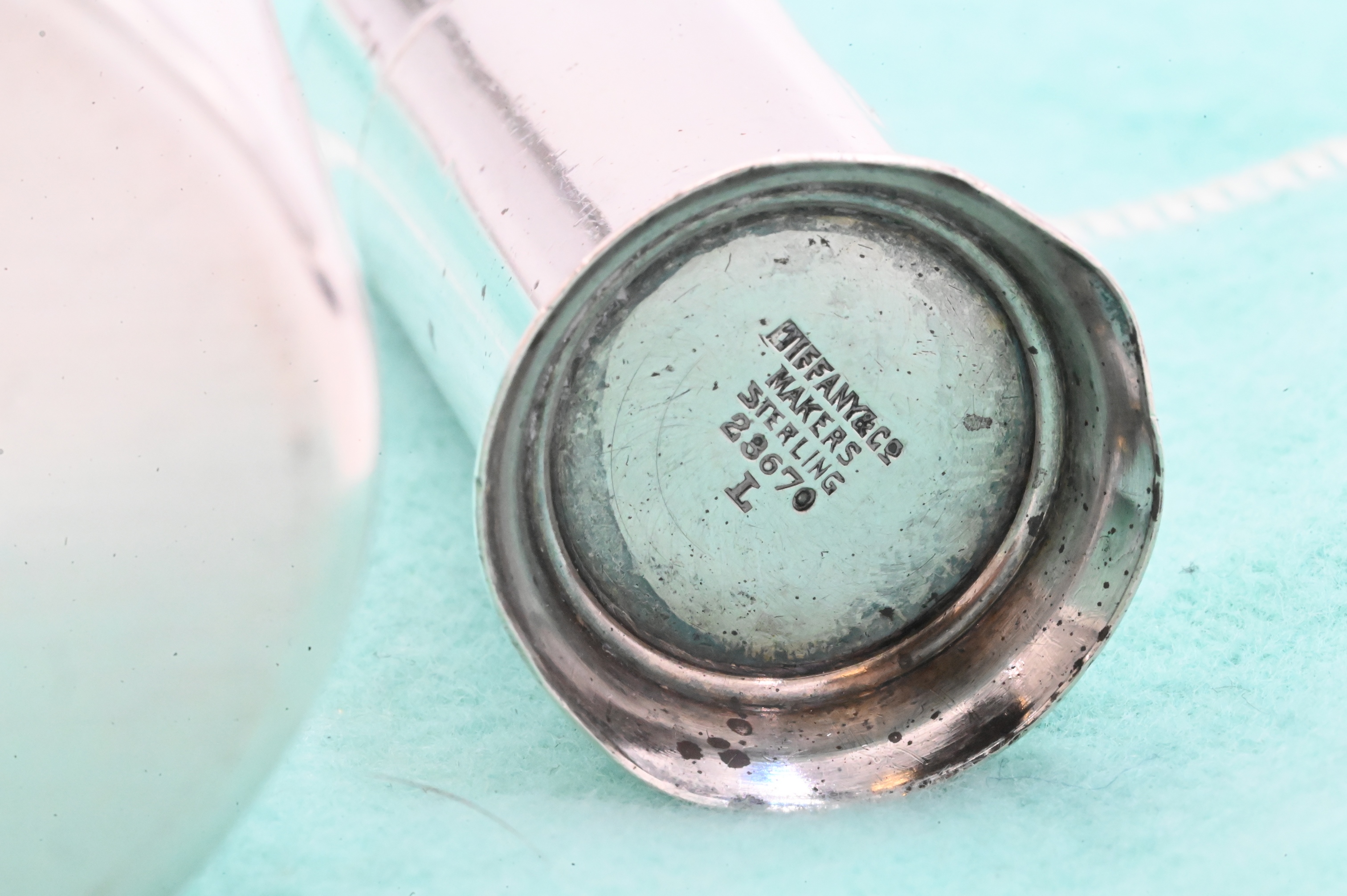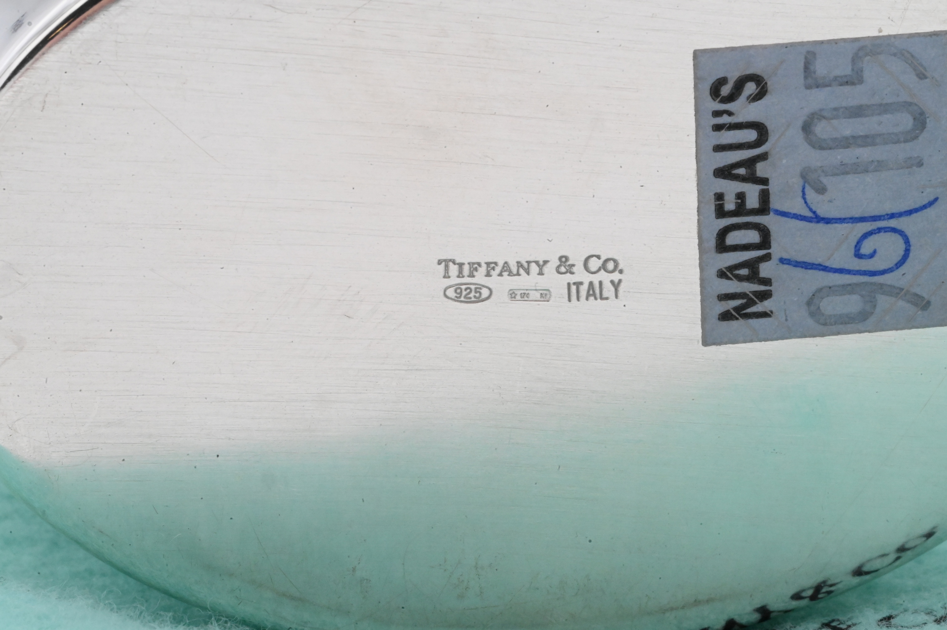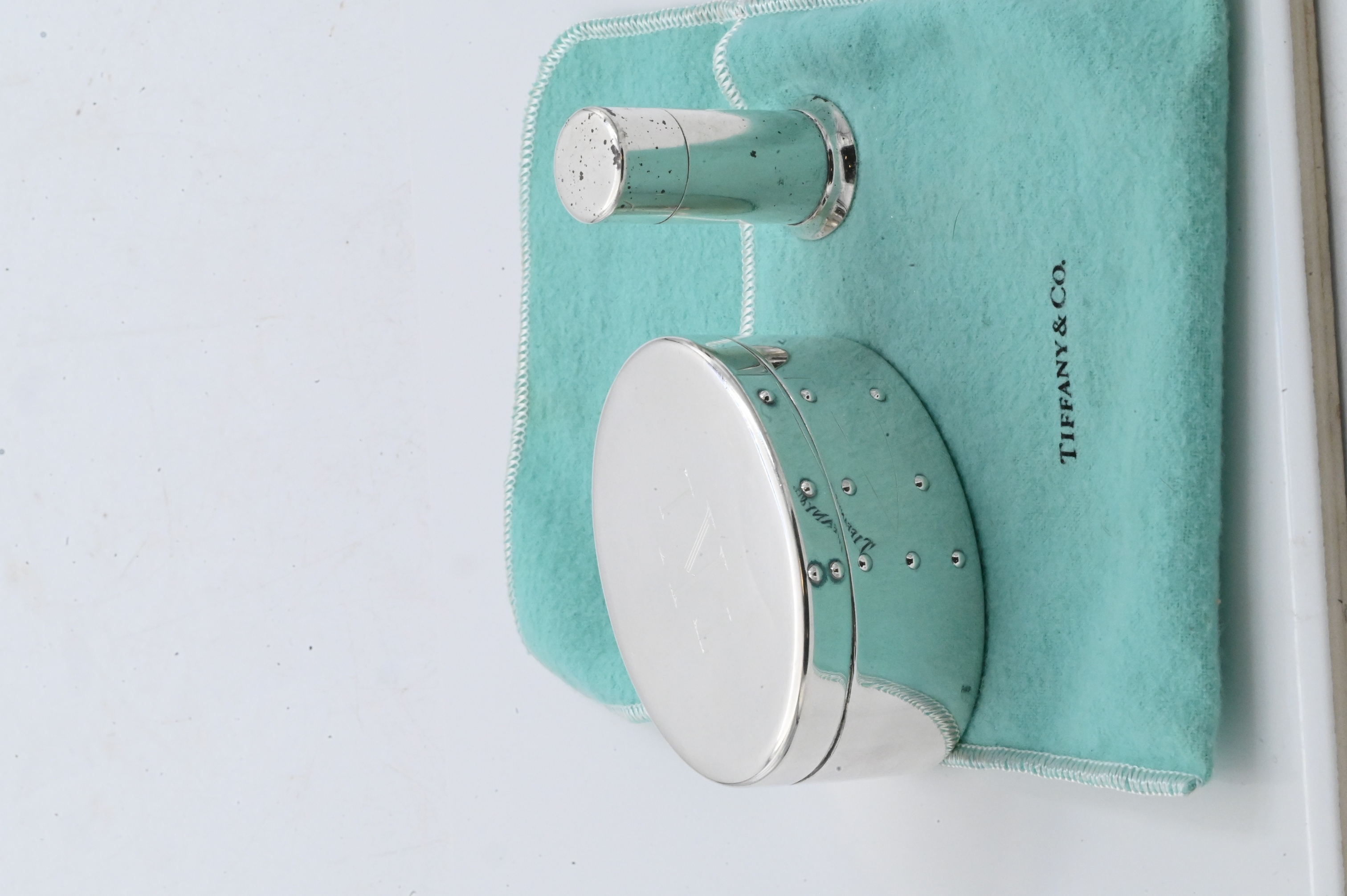 Sterling silver oval box in the form of a Shaker box with applied rivet decoration and velvet-lined interior, marked Tiffany & Co., .925 Sterling, Italy; together with a cylindrical Tiffany & Co. sterling silver lipstick holder, marked Tiffany & Co. Makers Sterling 23670.