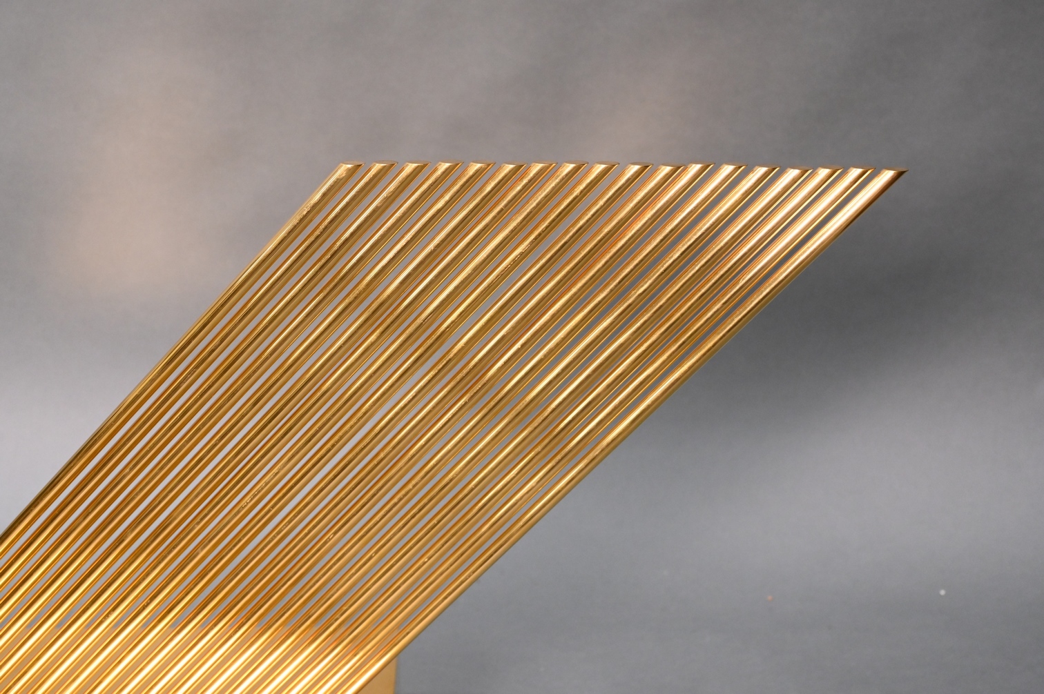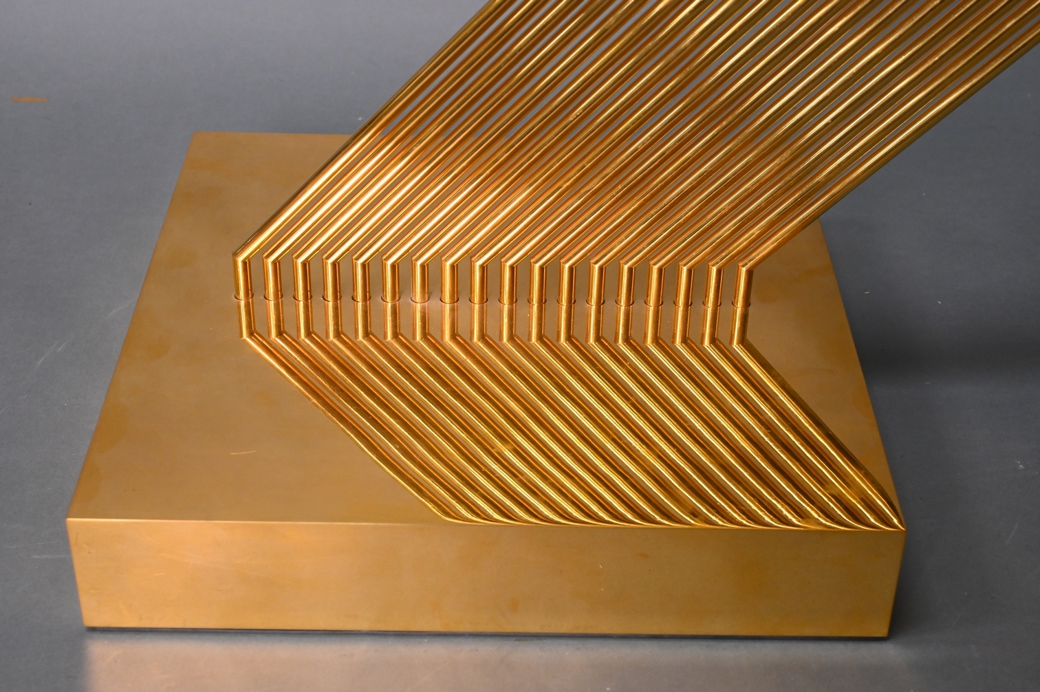 Brass with gold plating kinetic sculpture with multiple views, having 18 rods