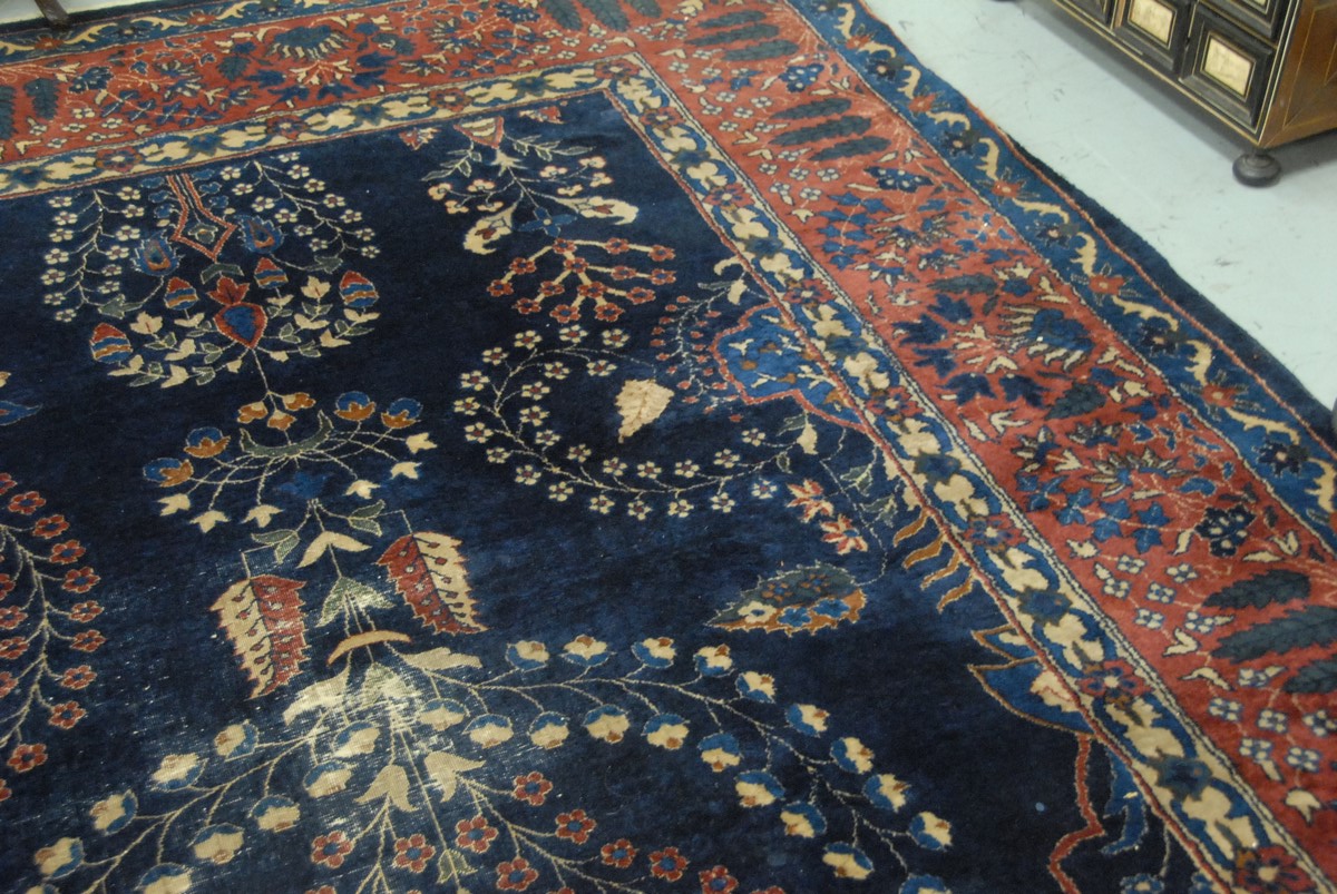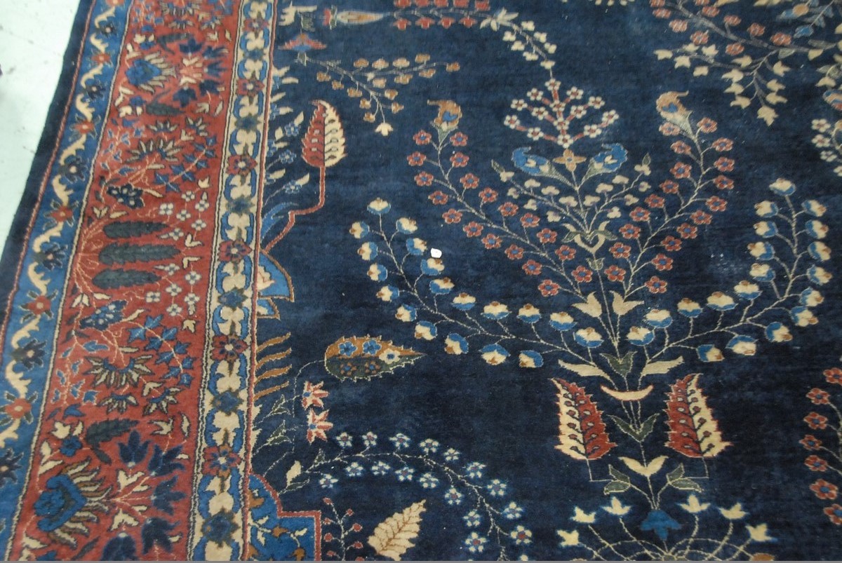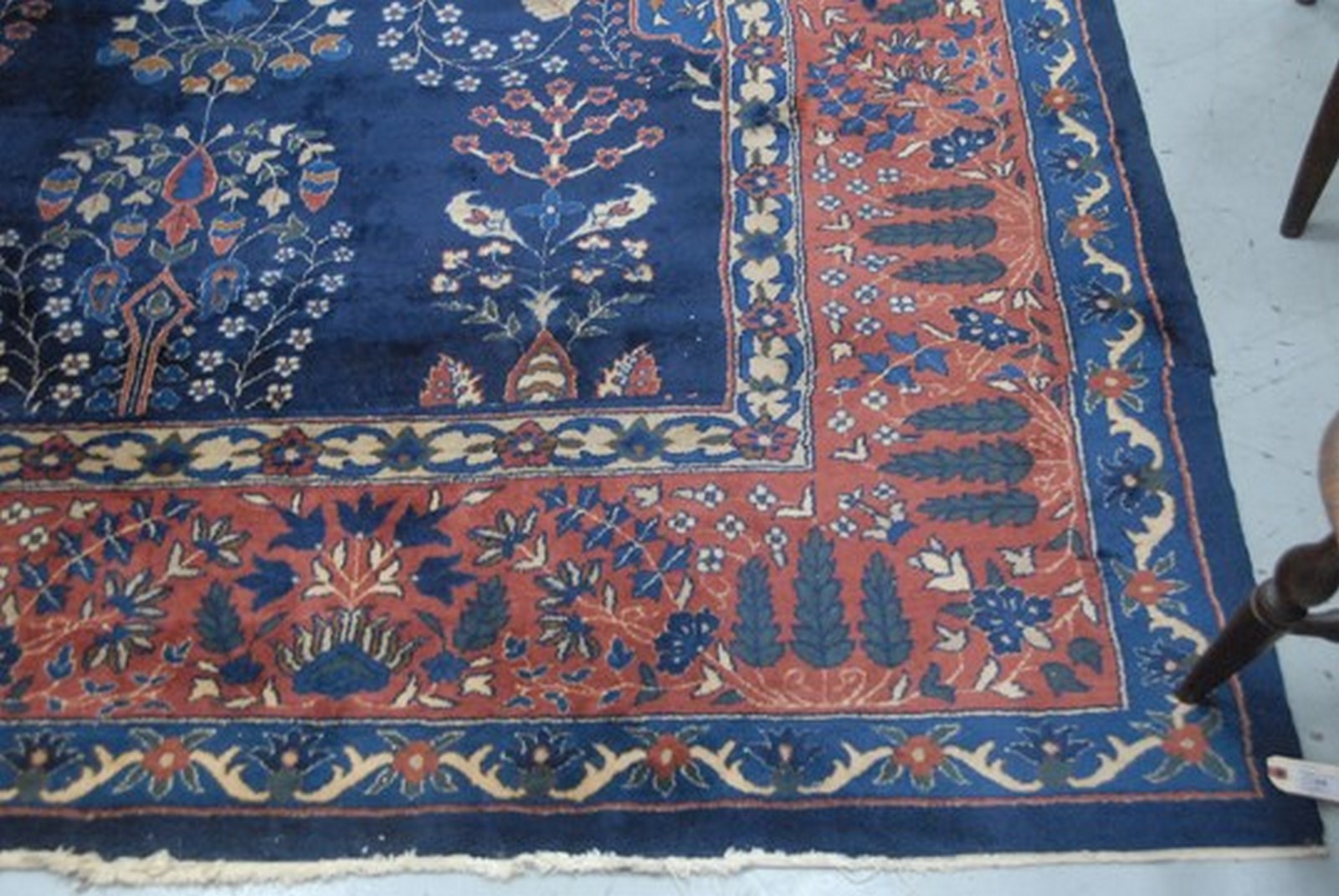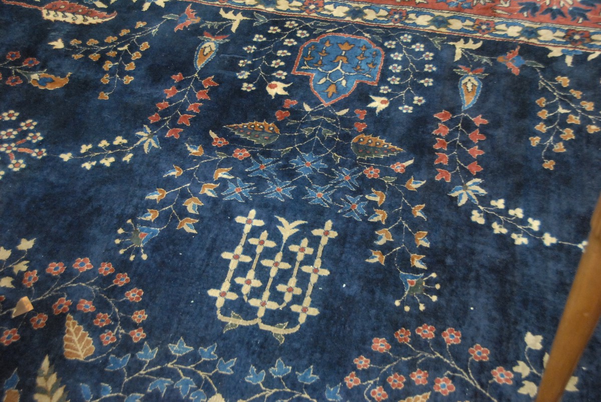 Lot 581: Indo Kashan Oriental carpet reduced in size slight wear. 12′ x 22’3