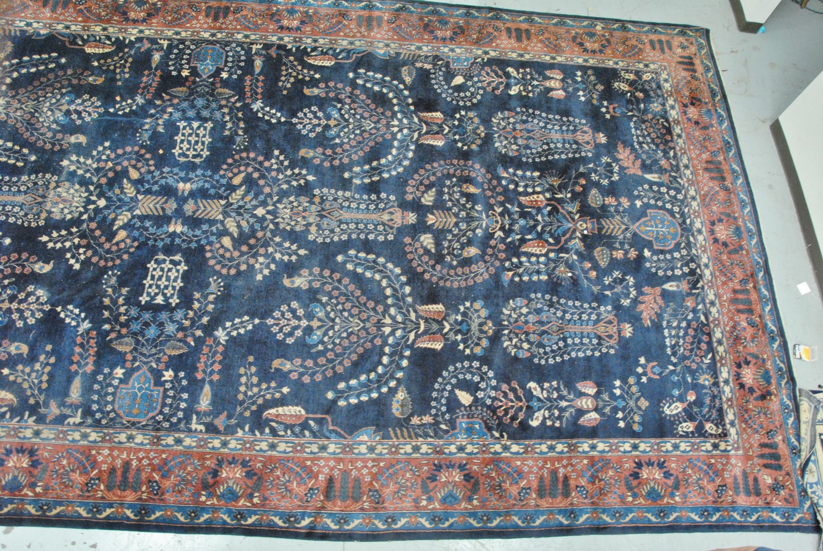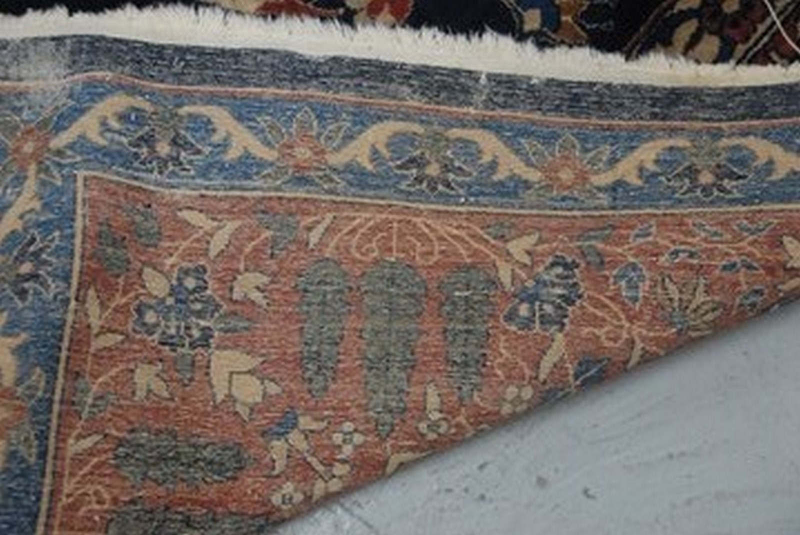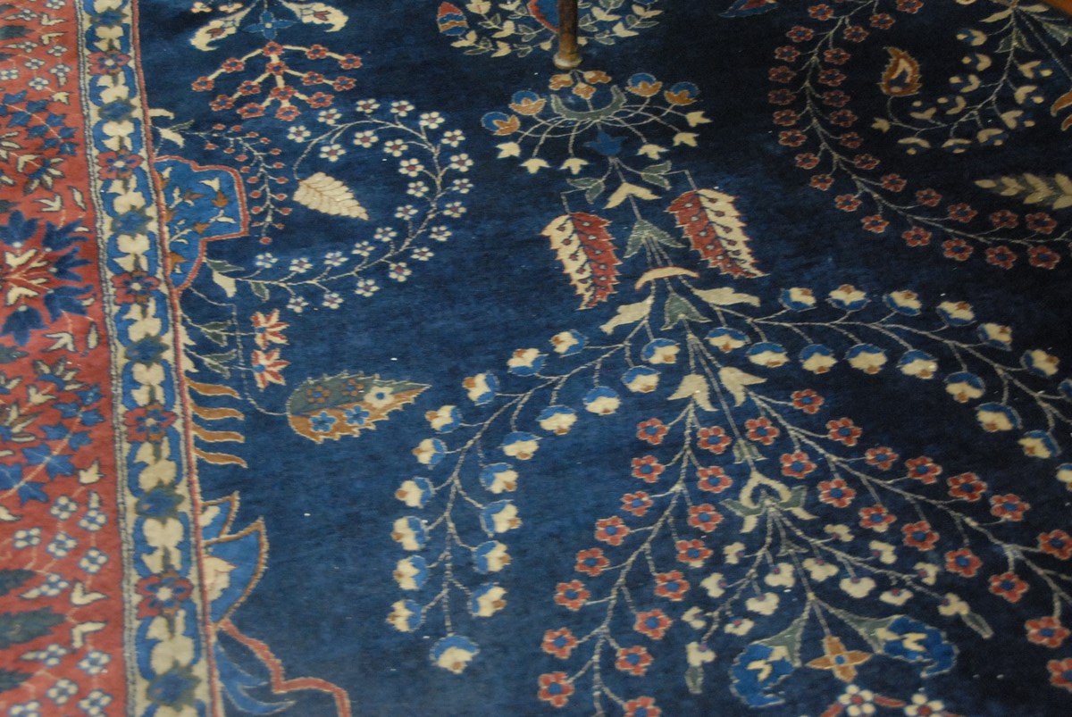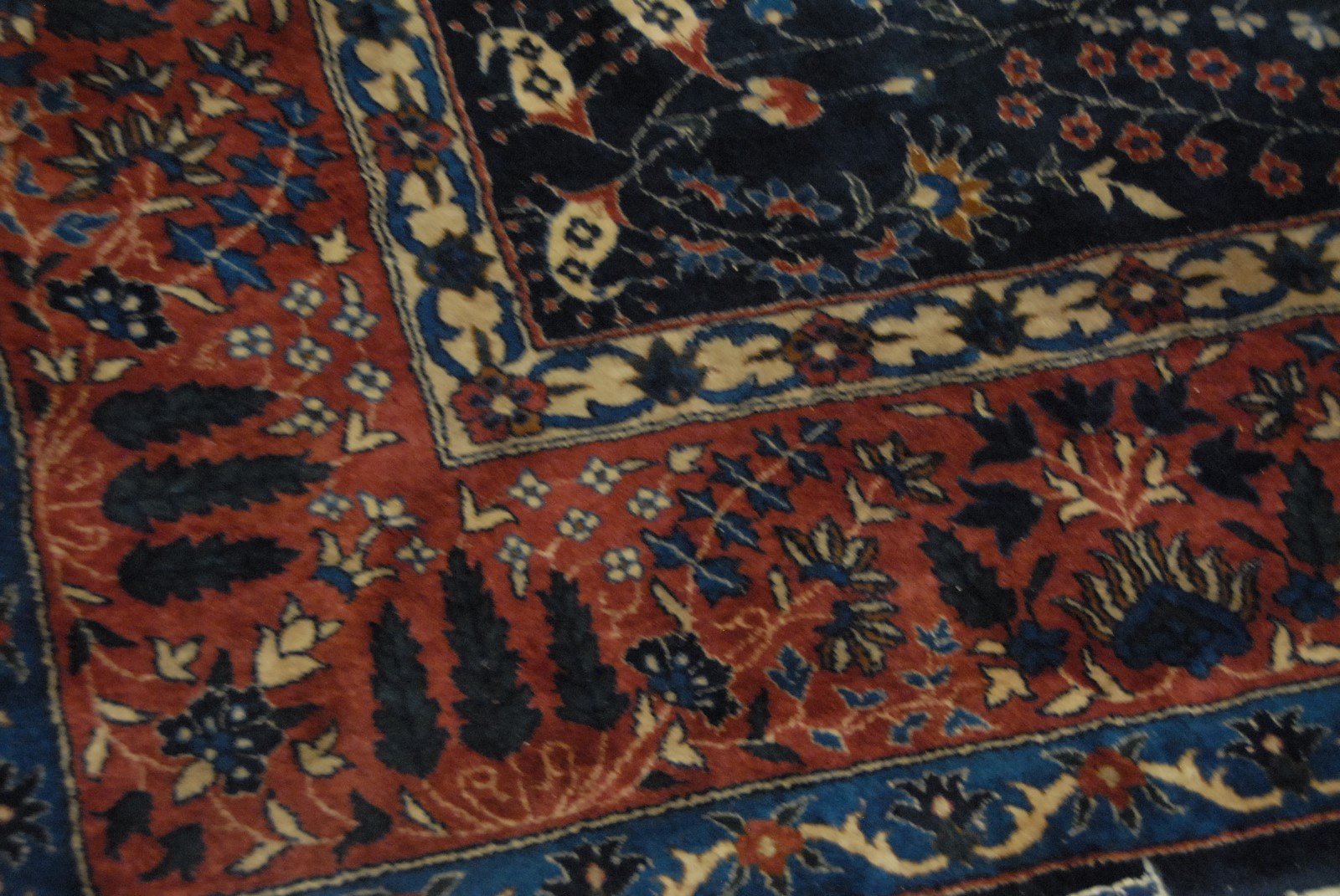 Indo Kashan Oriental carpet reduced in size slight wear. 12′ x 22’3