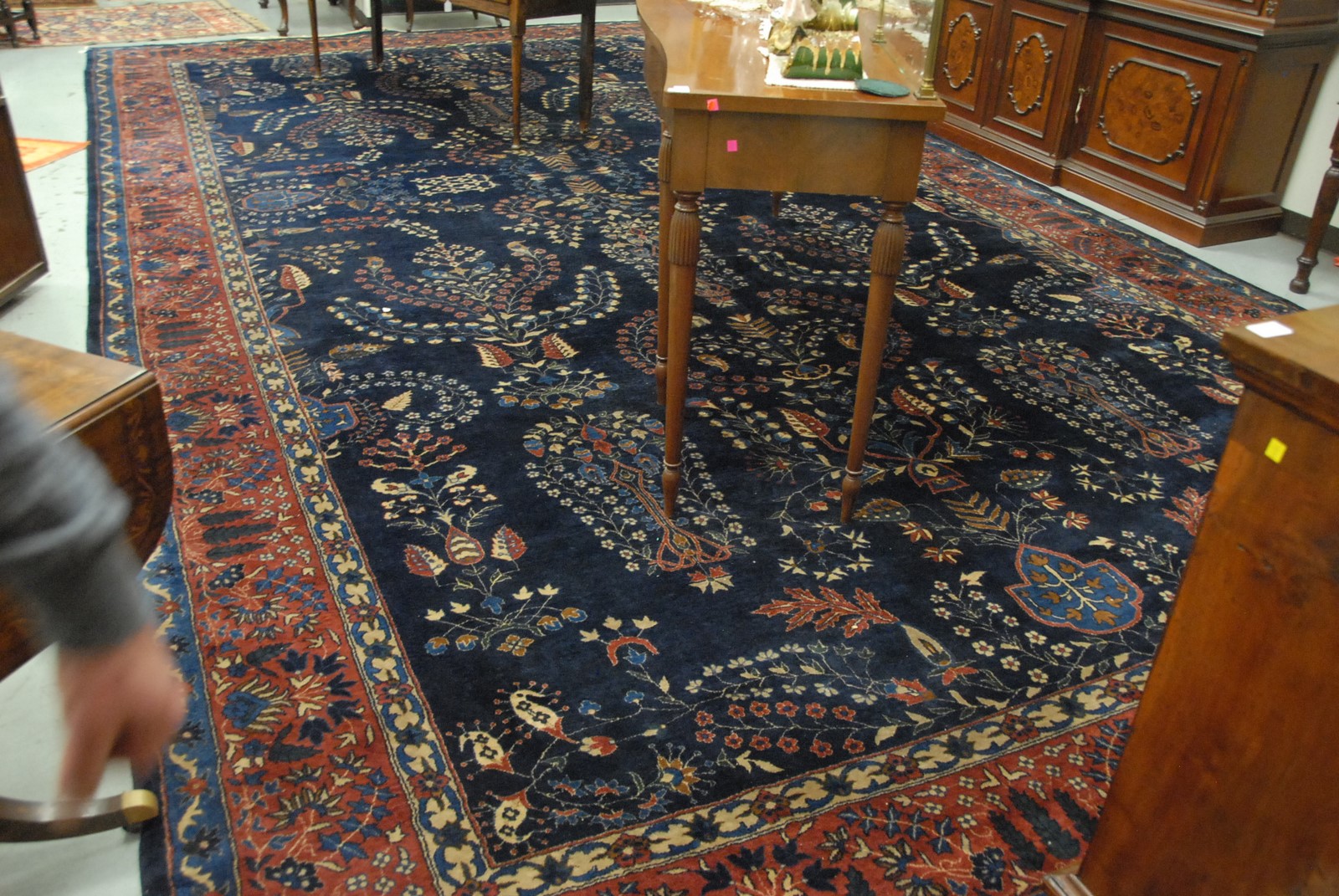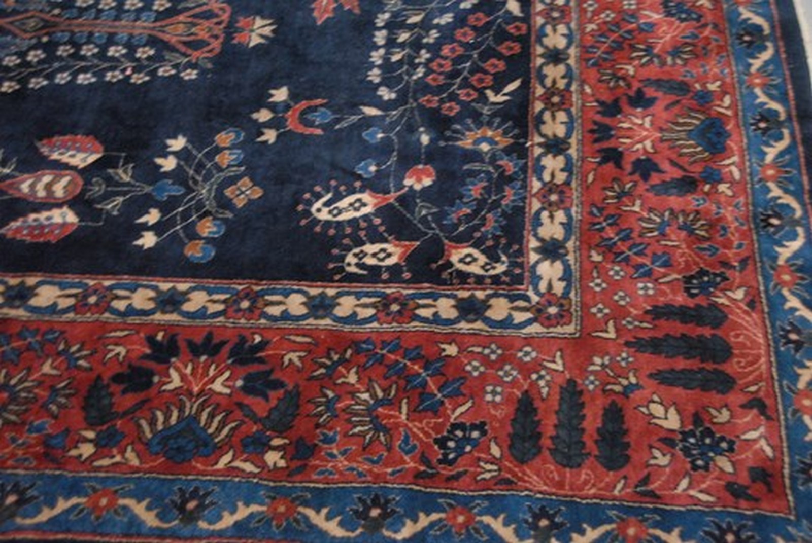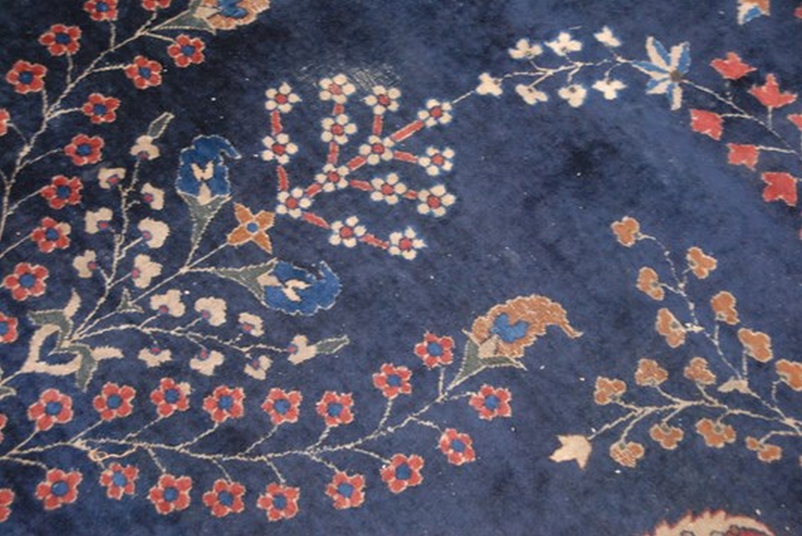 Indo Kashan Oriental carpet reduced in size slight wear. 12′ x 22’3