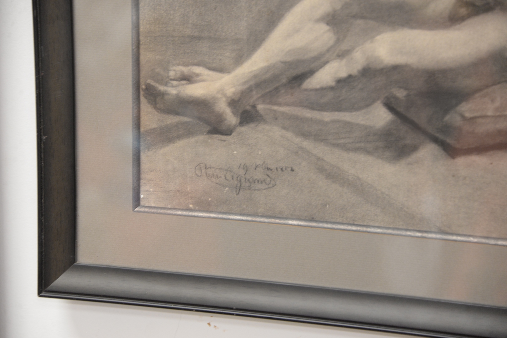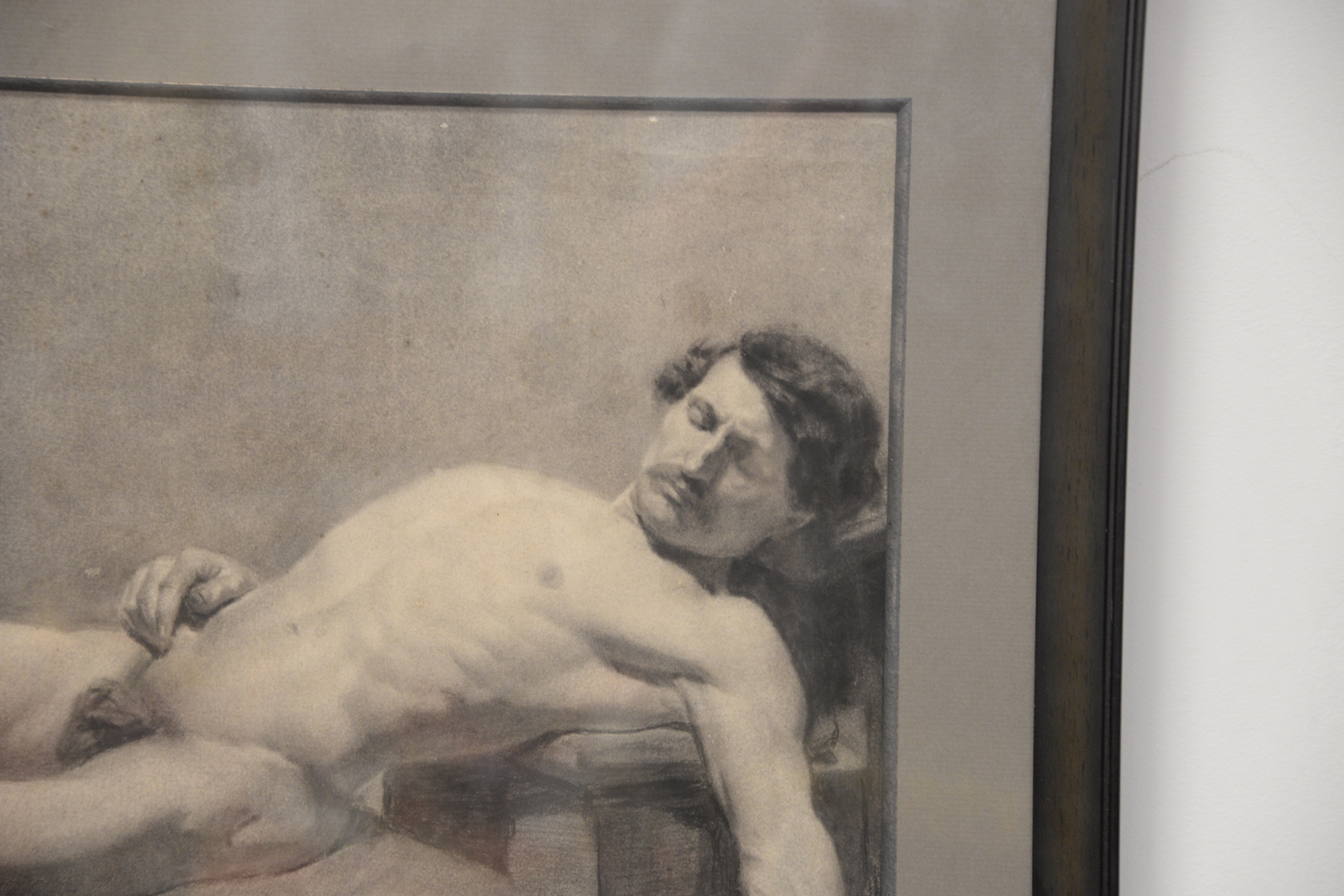 Lot 582: Continental School 19th century, Reclining Male Nude, pastel and charcoal on paper, signed and dated indistinctly lower left, sigh…