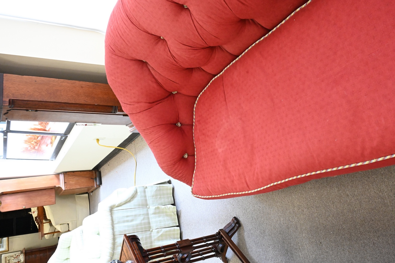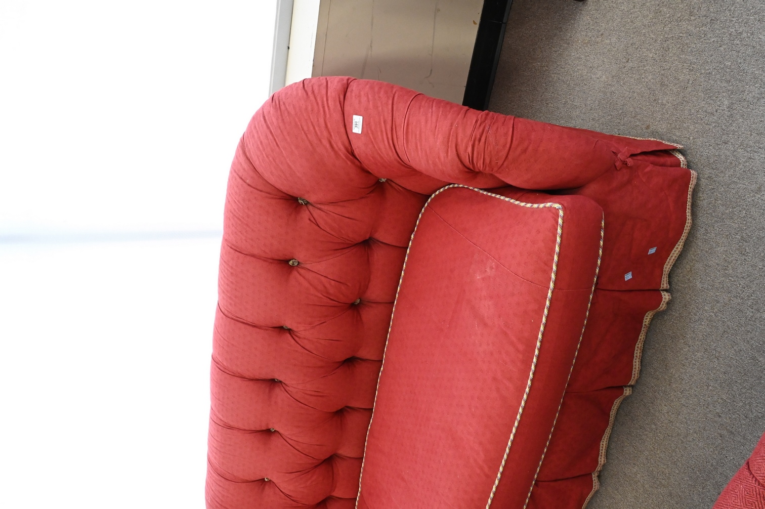 Lot 582: Custom Upholstered Loveseat having Tufted Back