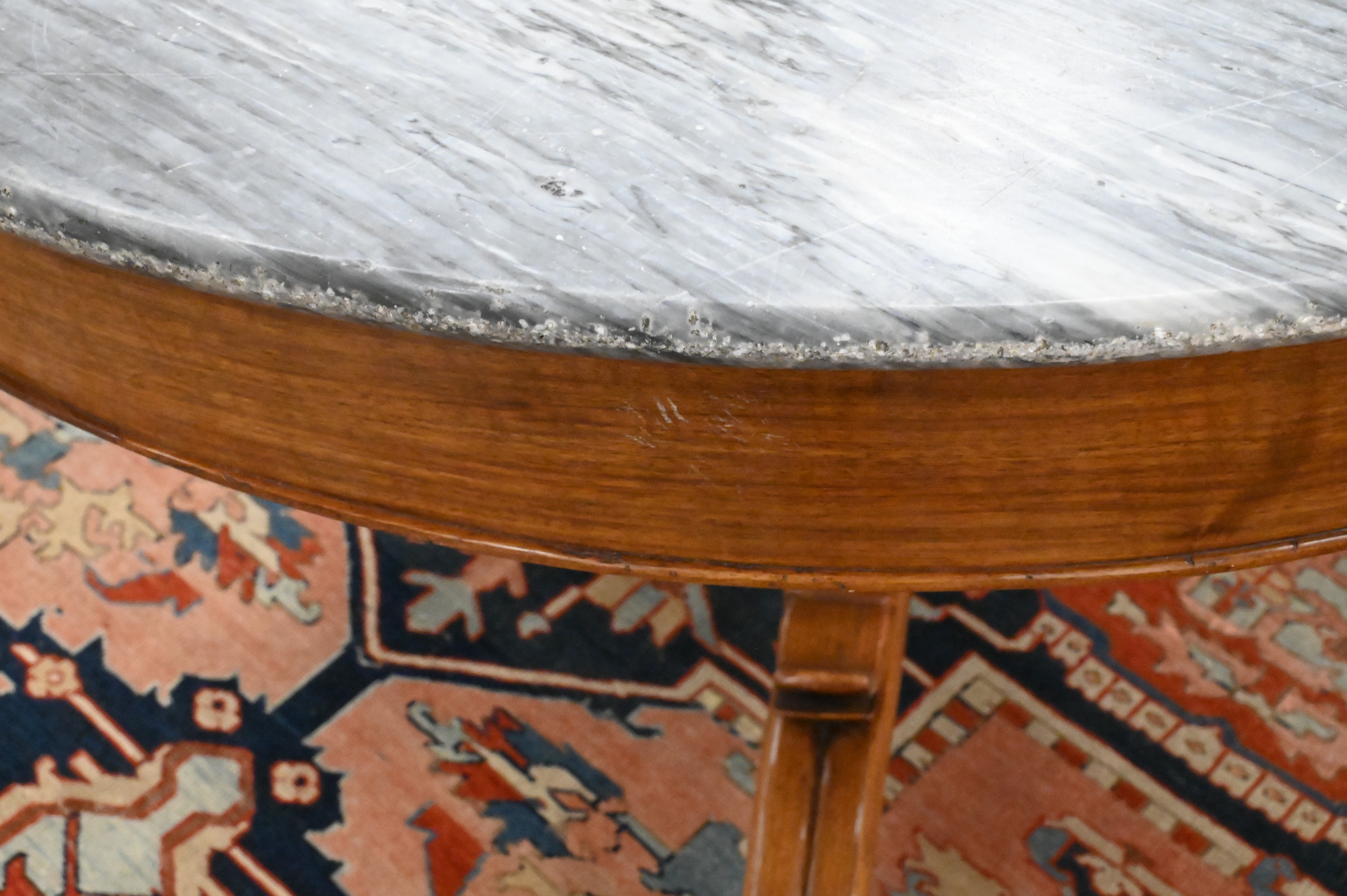 Condition: Presents well, scratching to top and edge, base with scuffs, pedestal center and leg repair