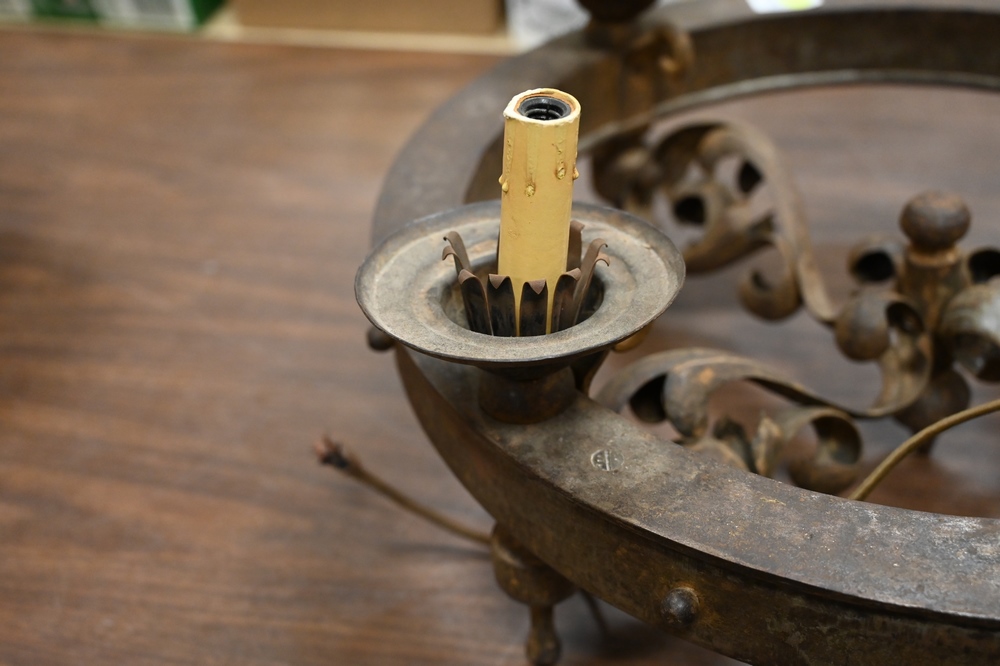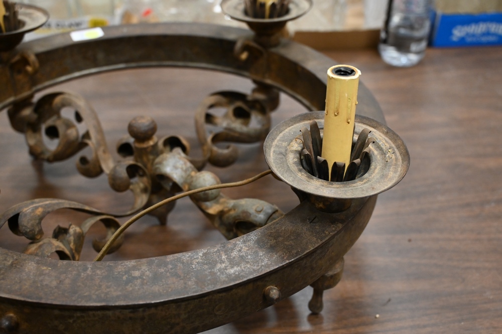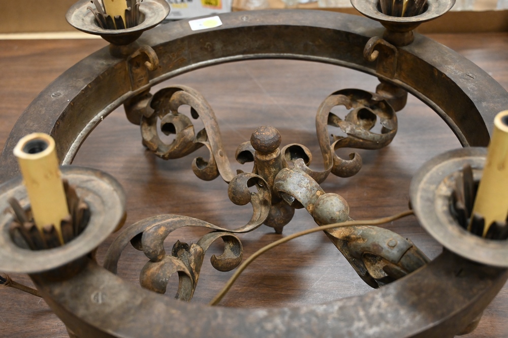 Lot 582: Heavy Iron Hanging Light with Four Lights, diameter 19 1/2 inches.